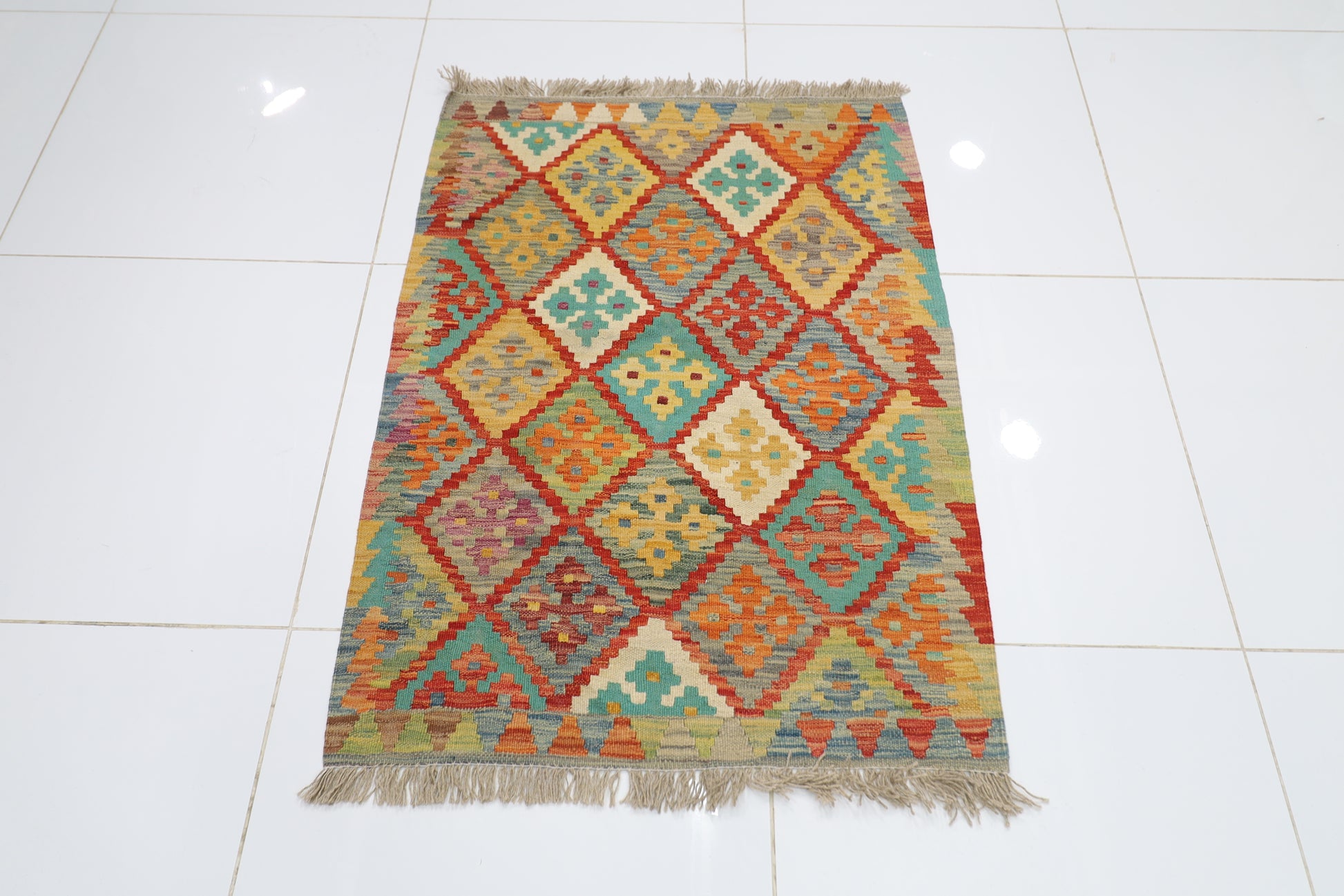 85 x 116 cm | Multicolor Wool Kilim Accent Traditional Hand Woven Oriental Carpet