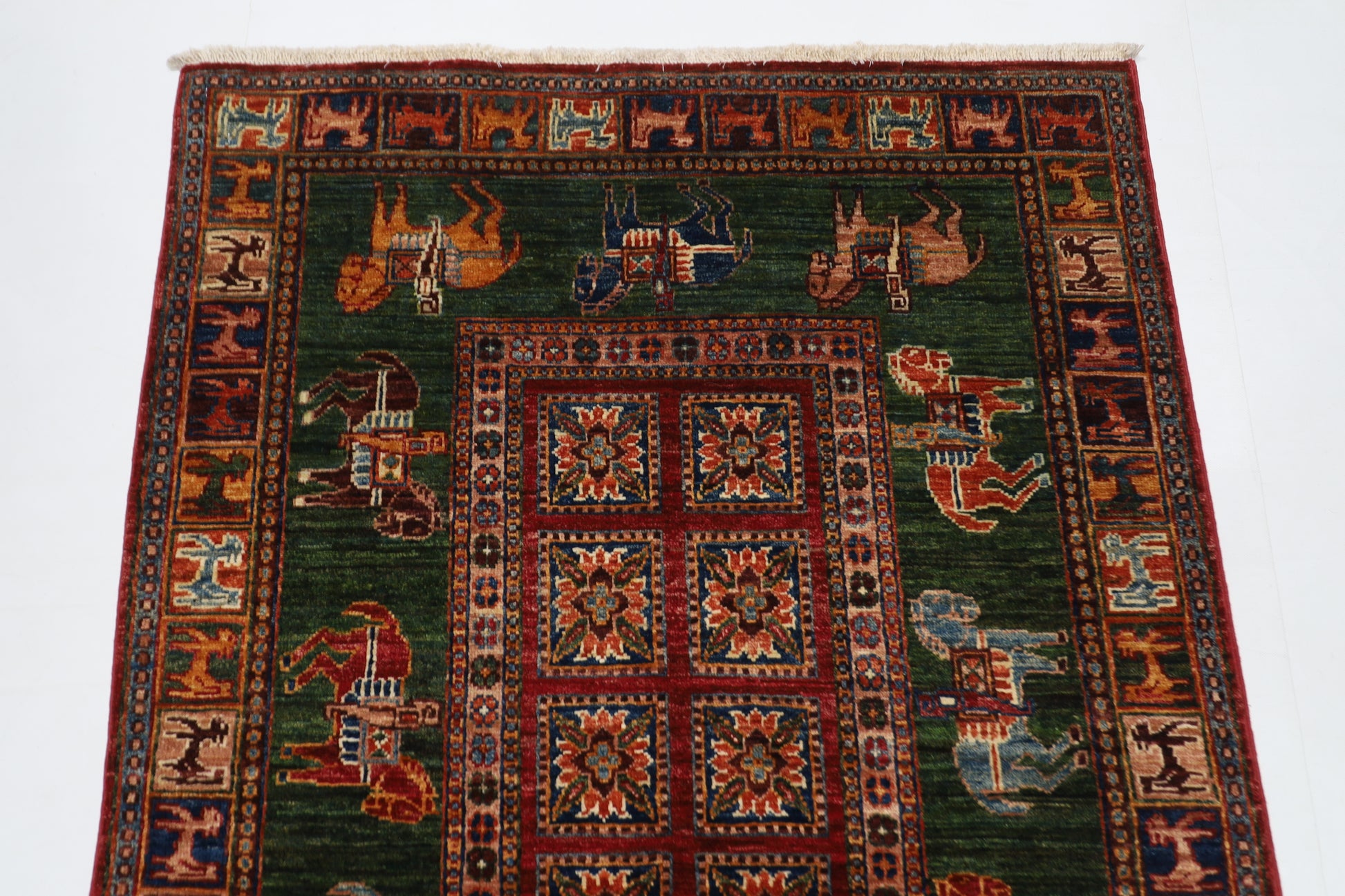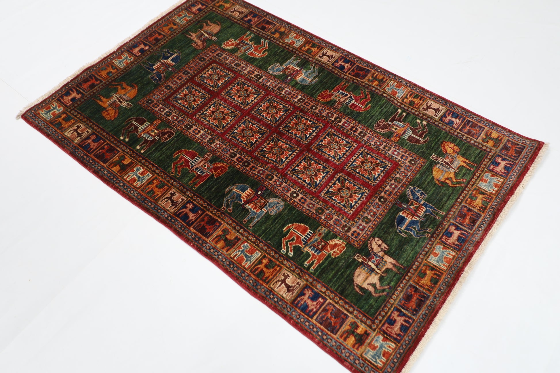 100 x 152 cm | Green Animal Area Rug Afghan Hand Knotted veg Dye Wool carpet