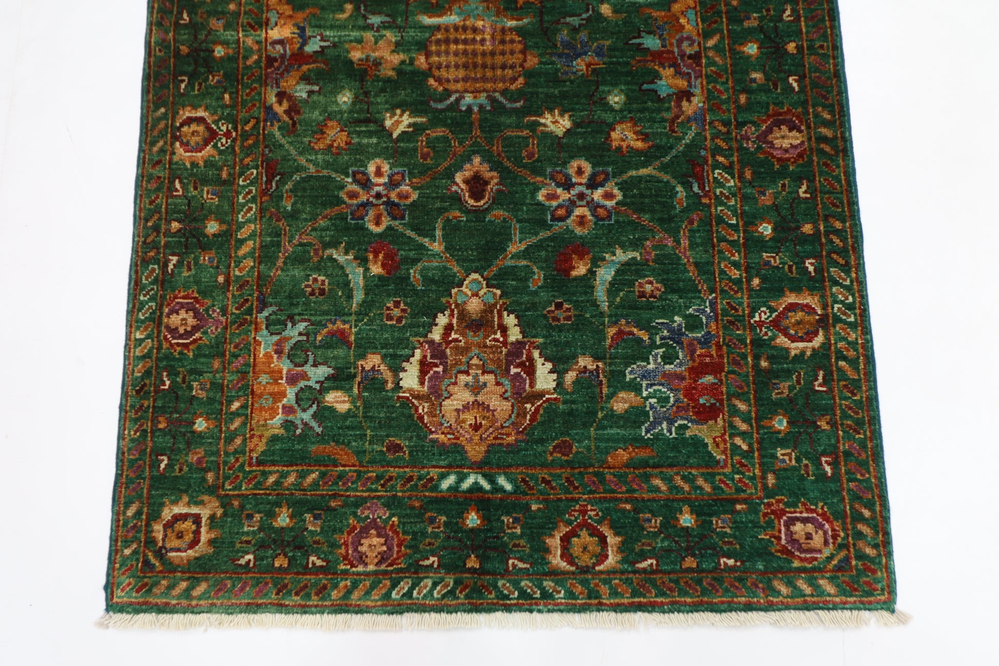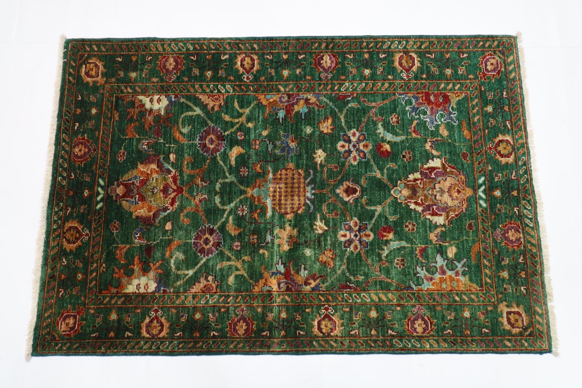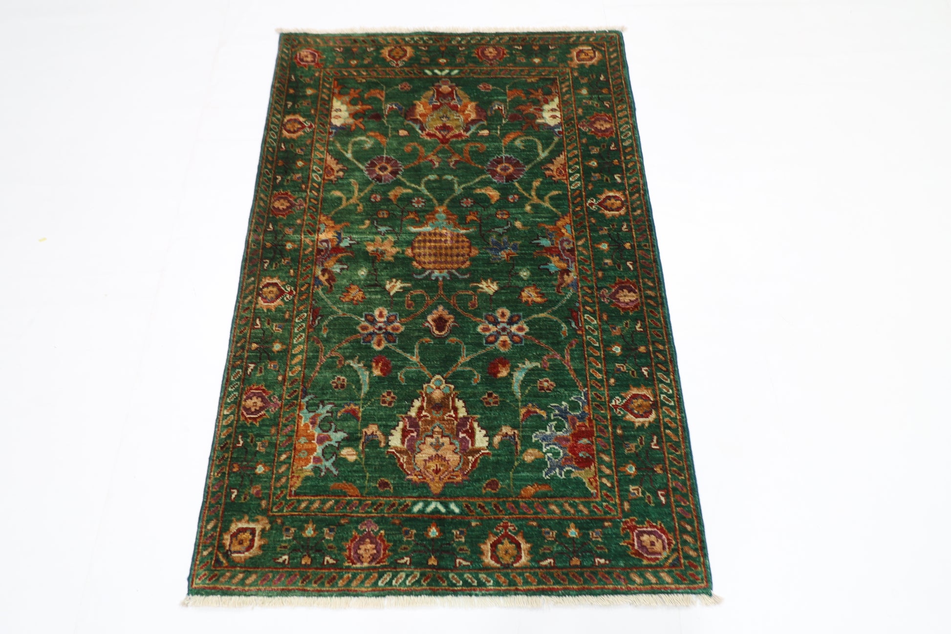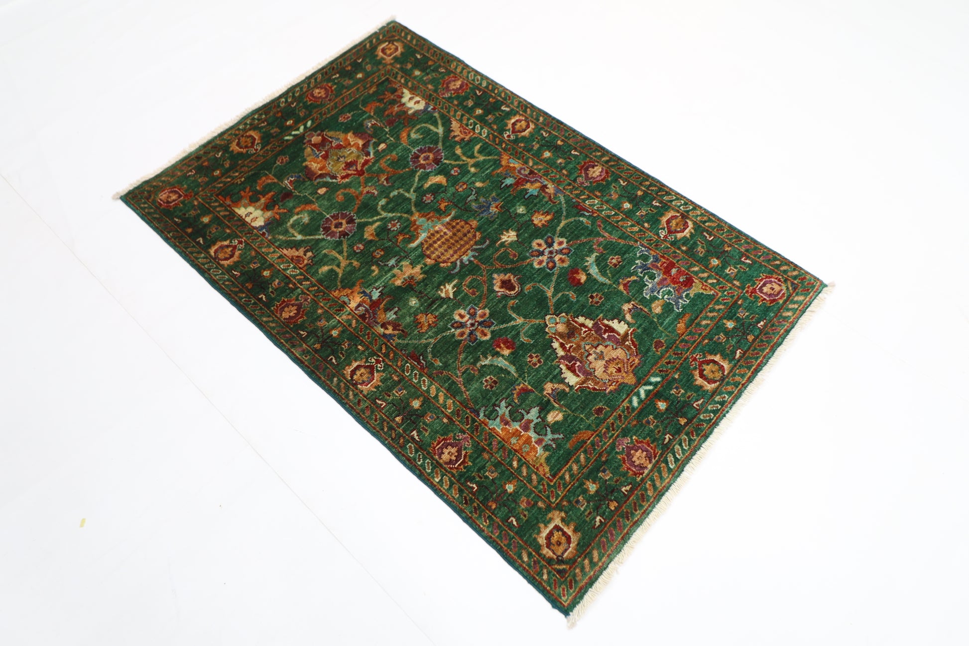 88 x 132 cm | Sultani Green Afghan Hand Knotted Carpet