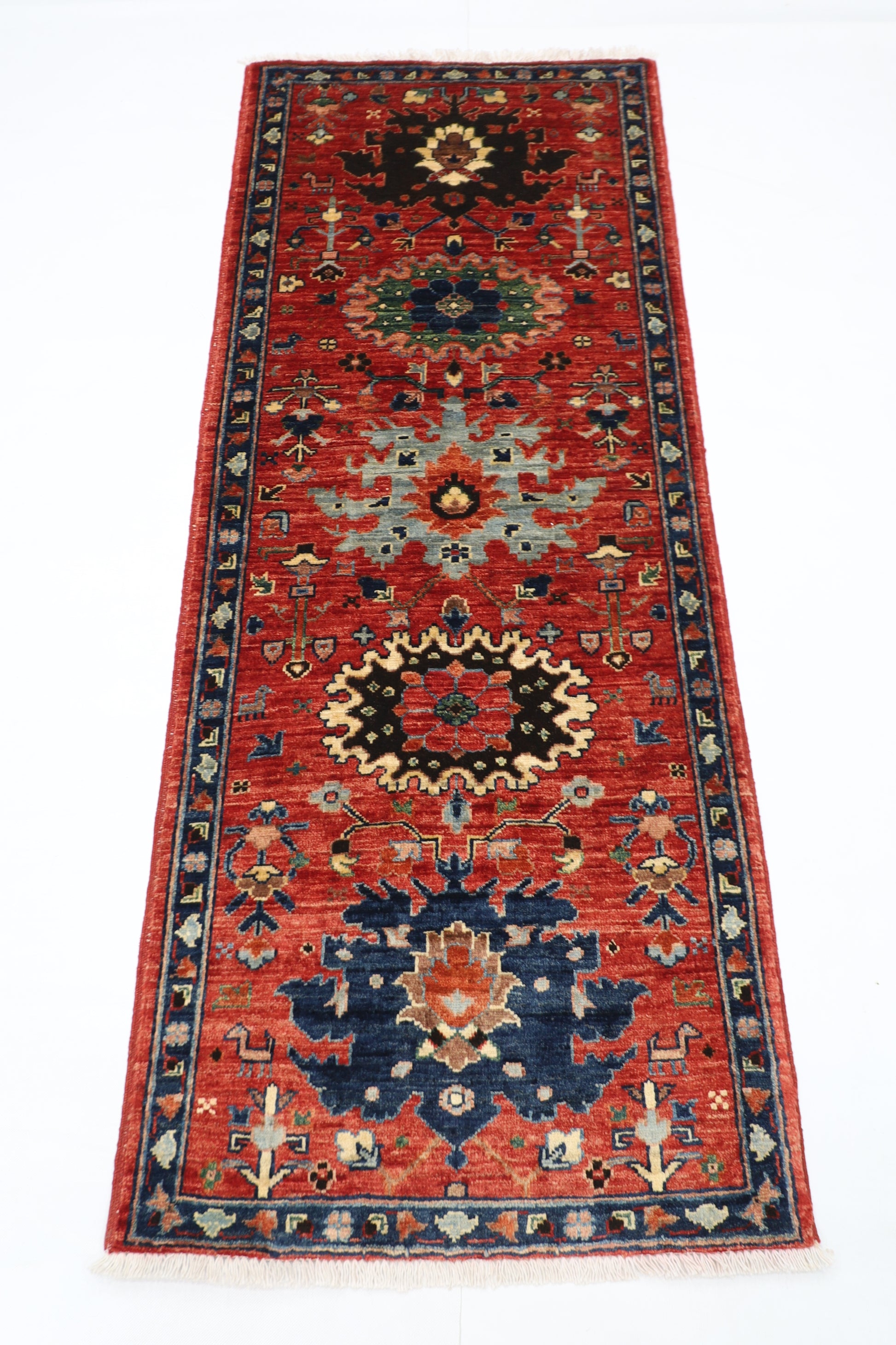 67 x 167 cm | Red Afghan Tribal Hand Knotted Veg Dye Wool Carpet