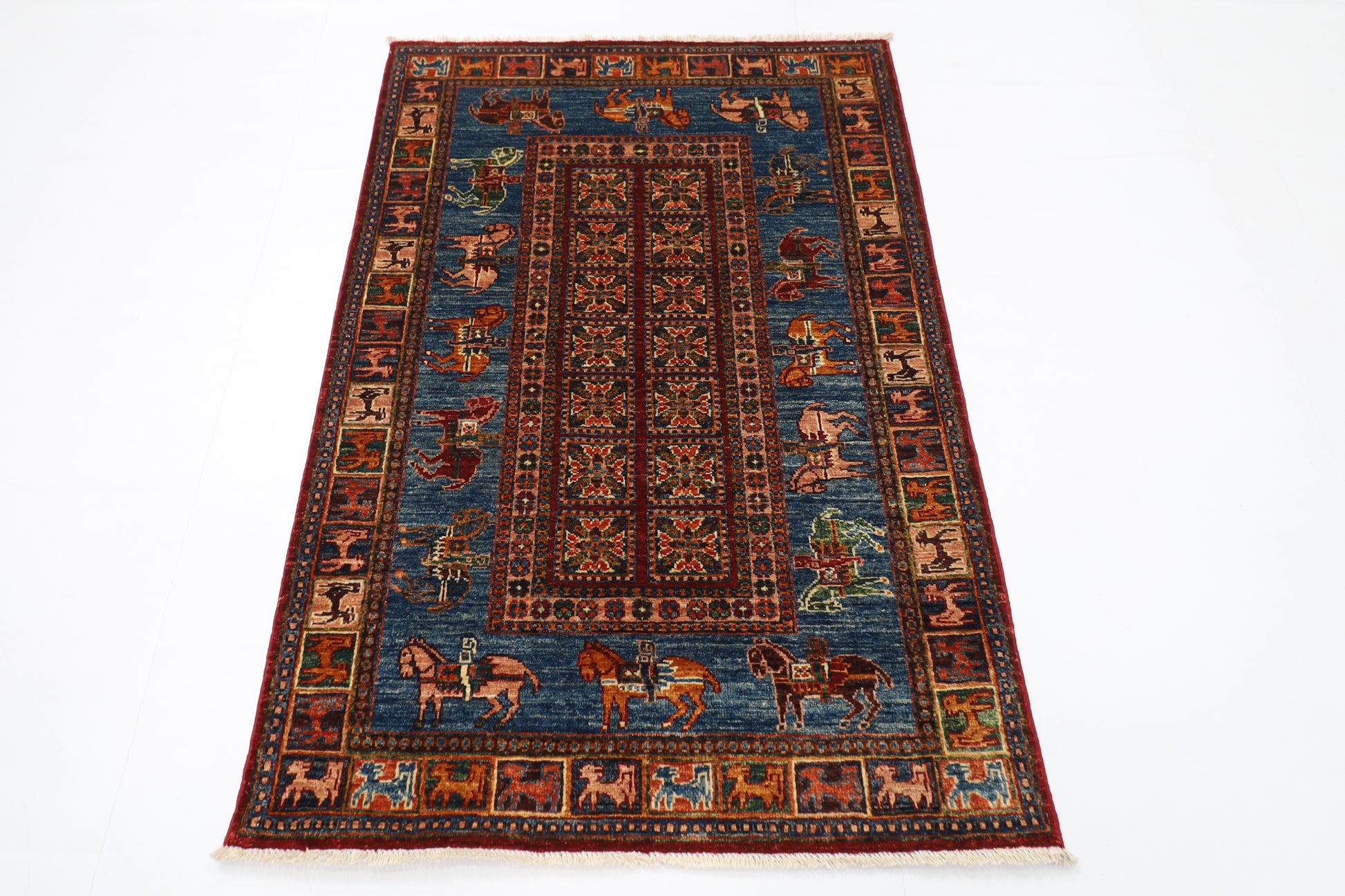 103 x 151 cm | Tribal Animal Area Rug Afghan Hand Knotted veg Dye Wool carpet