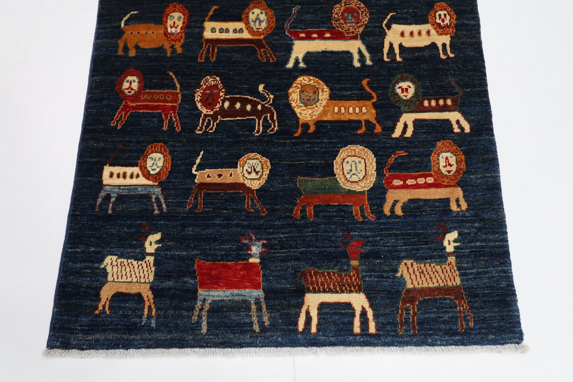 100 x 151 cm | Tribal Lion Blue Area Rug Afghan Hand Knotted veg Dye Wool carpet