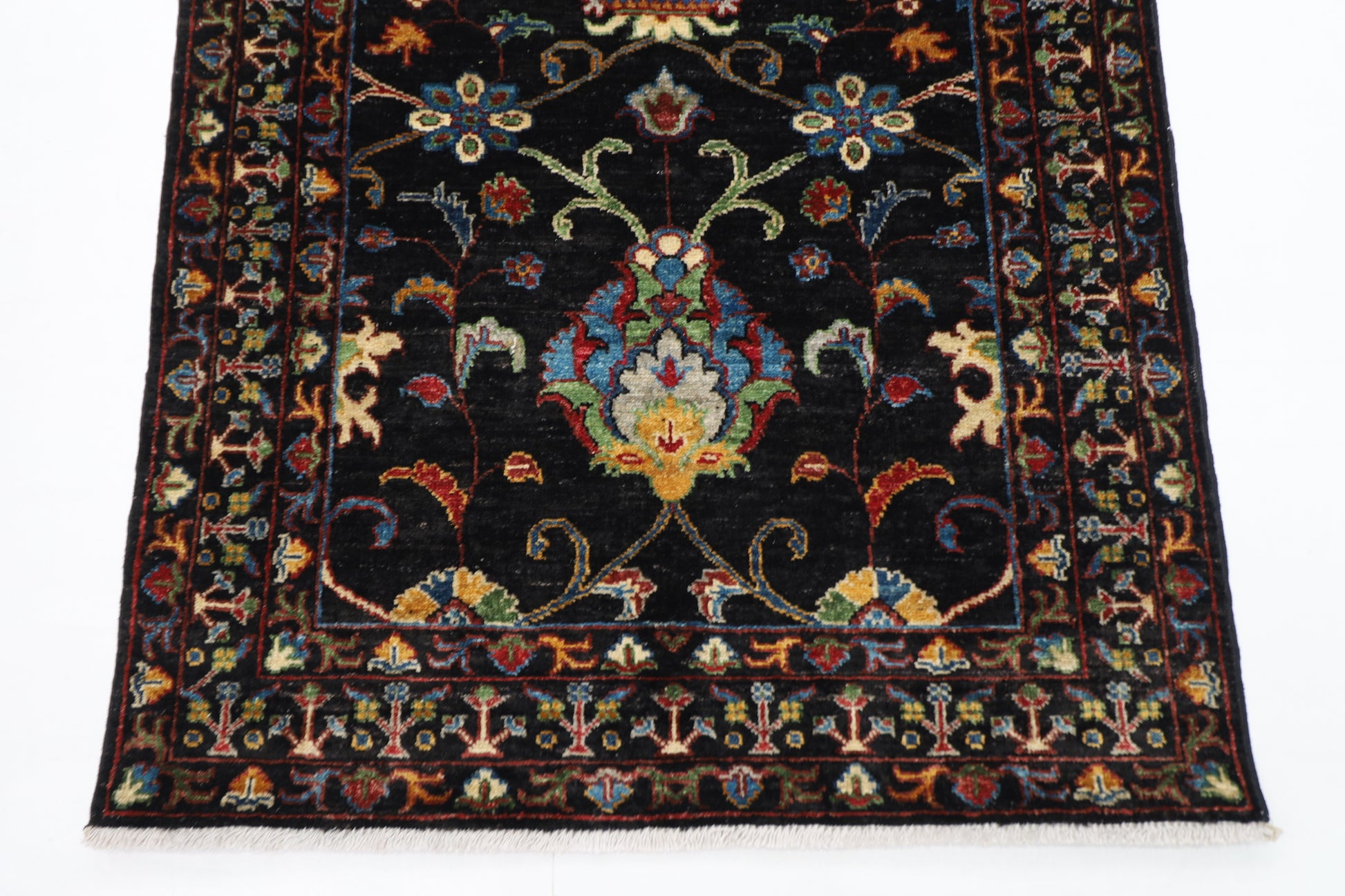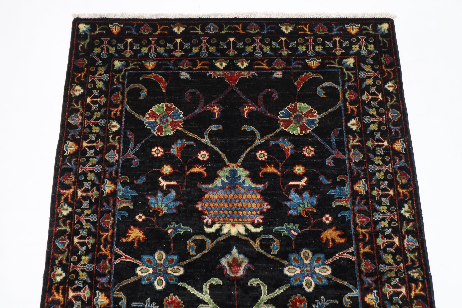 103 x 146 cm | Sultani Black Afghan Tribal Hand Knotted Veg Dye Wool Carpet