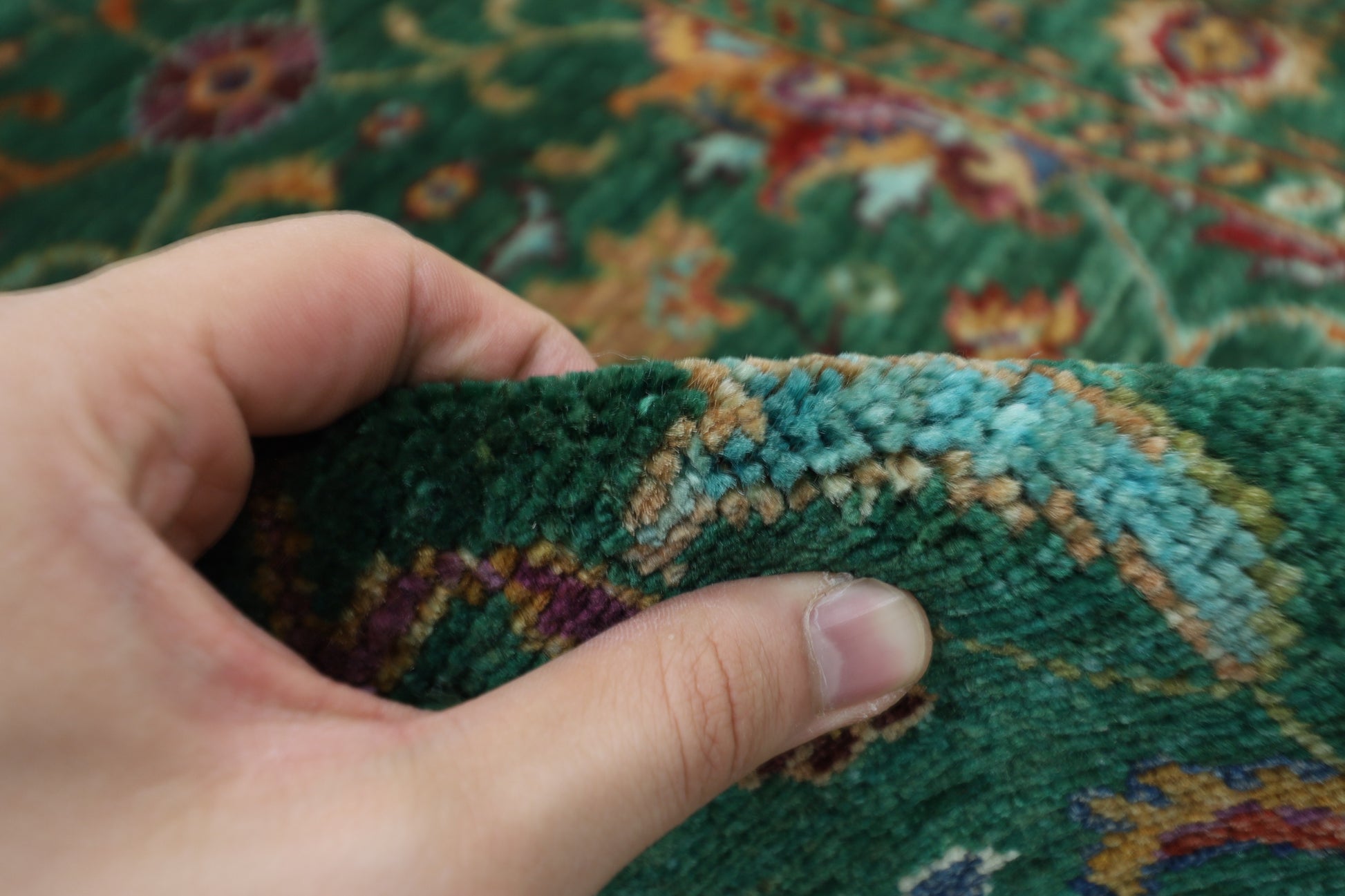 The photographs presented are captured indoor room lights without editing to show the beauty and vibrancy of the rug and also to give you the better idea that how the rug will look in your room and office, the colors in the rug will be perceived differently depending on the angle you view it from.