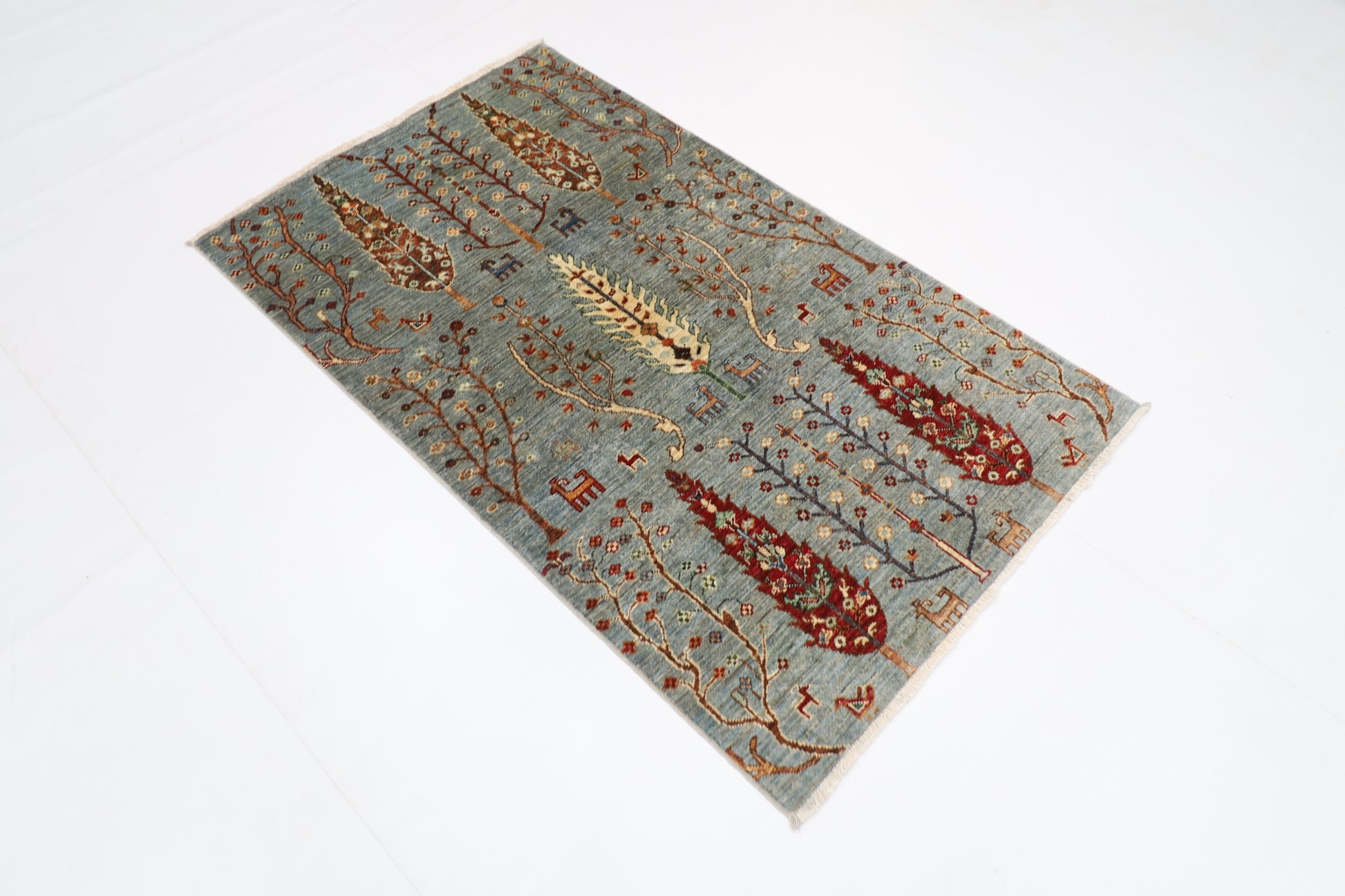 90 x 150 cm | Trees Afghan Tribal Hand Knotted Carpet
