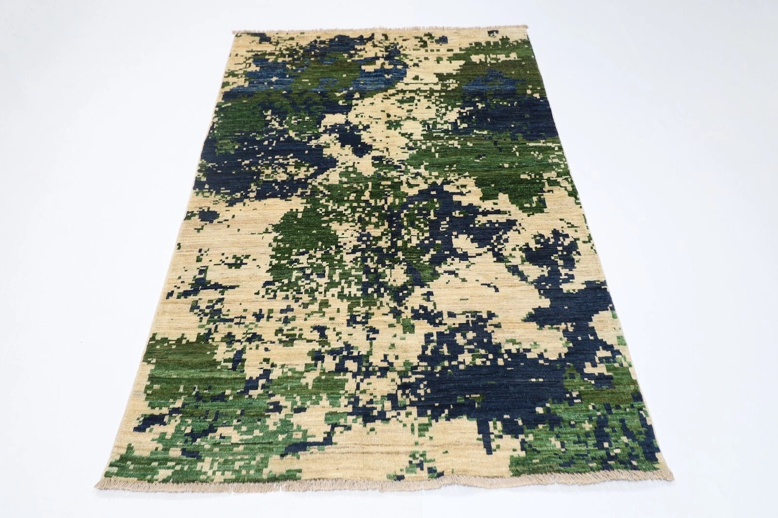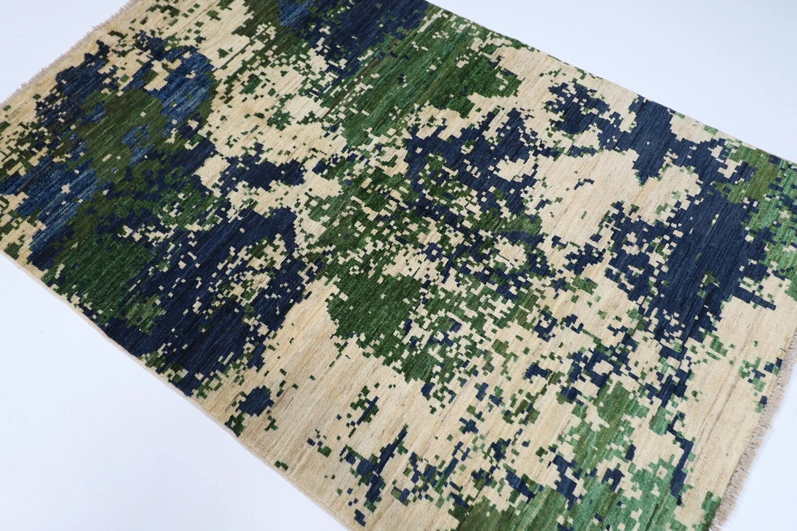 118 x 179 cm | Abstract Afghan Tribal Hand Knotted Veg Dye Wool carpet