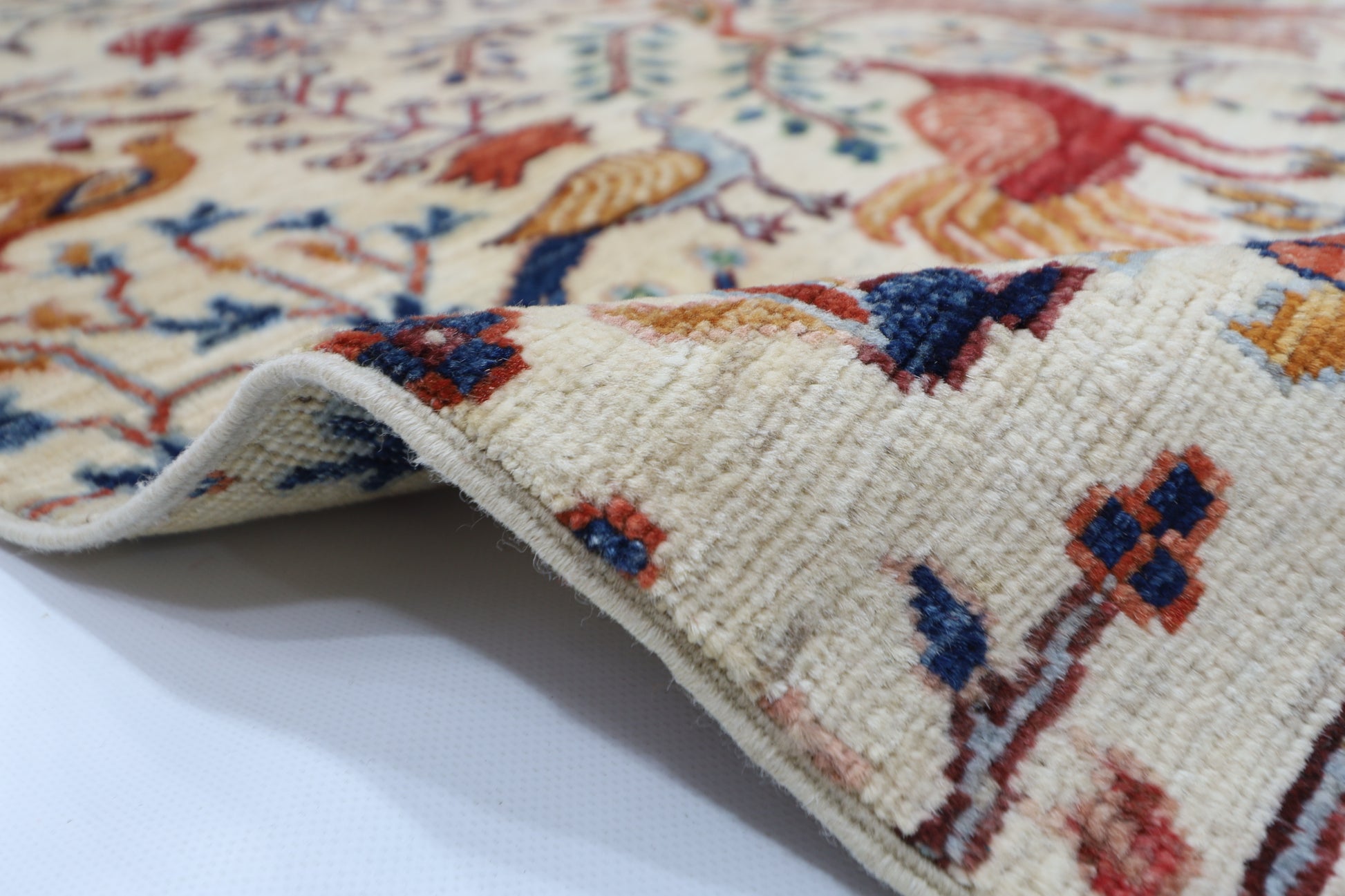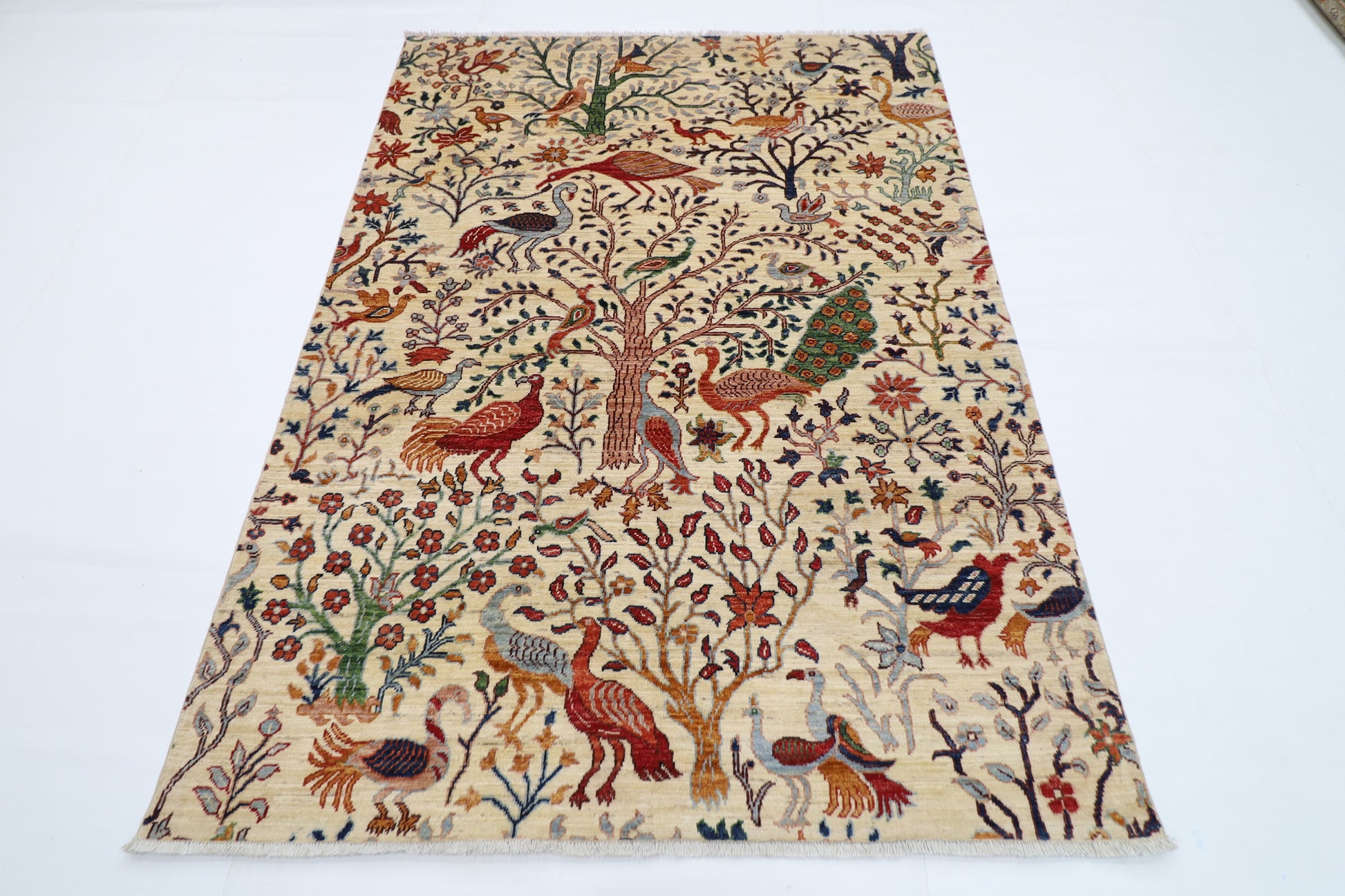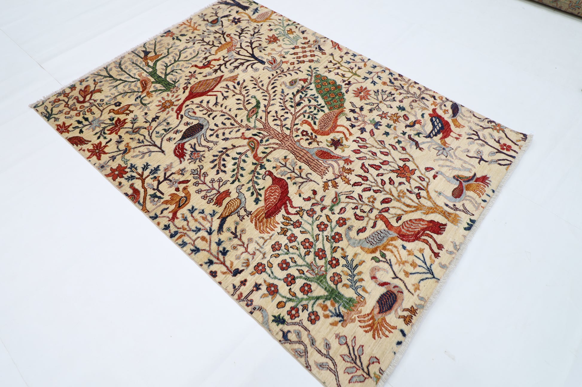 148 x 202 cm | Birds Beige Afghan Hand Knotted Carpet