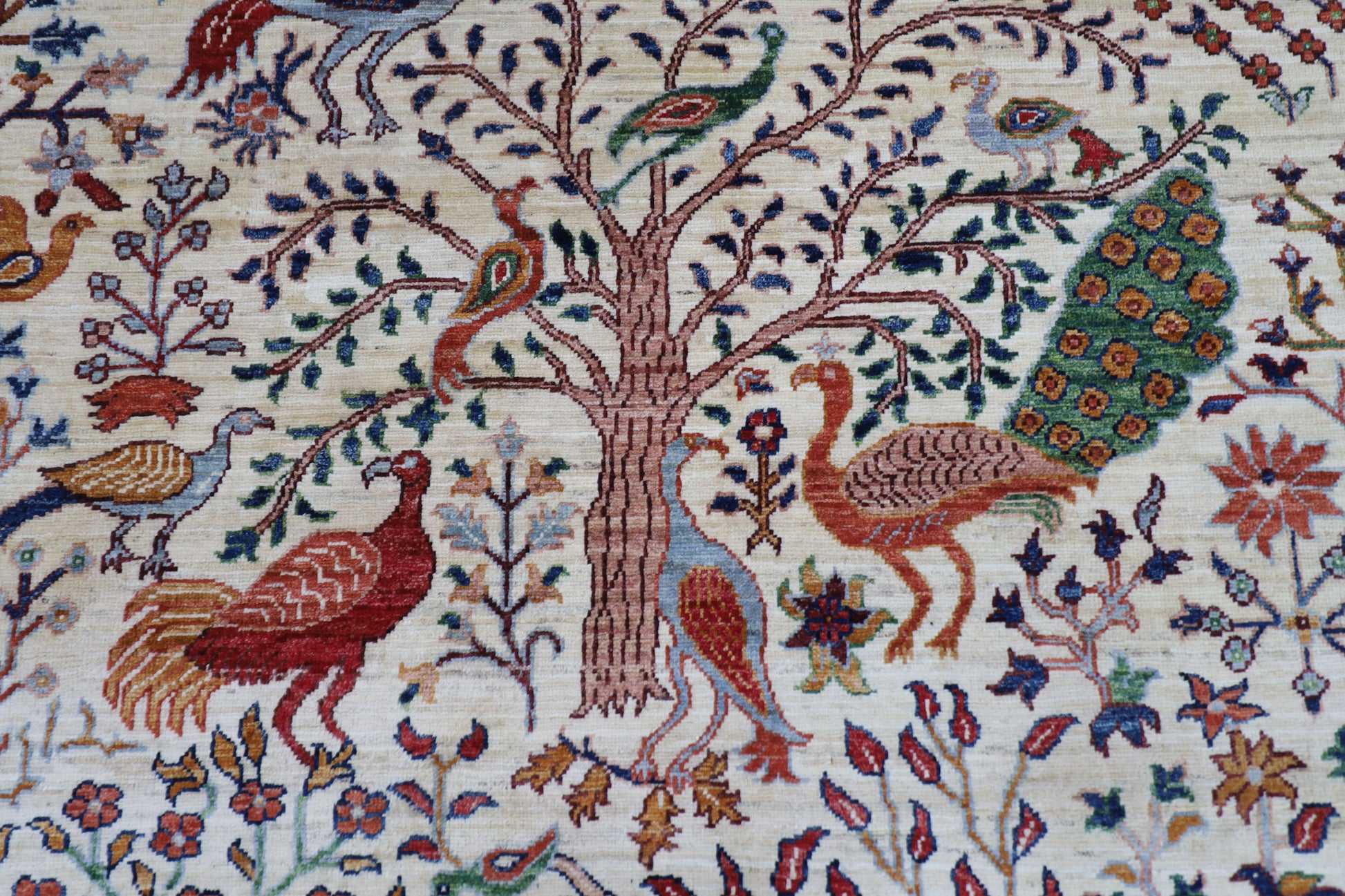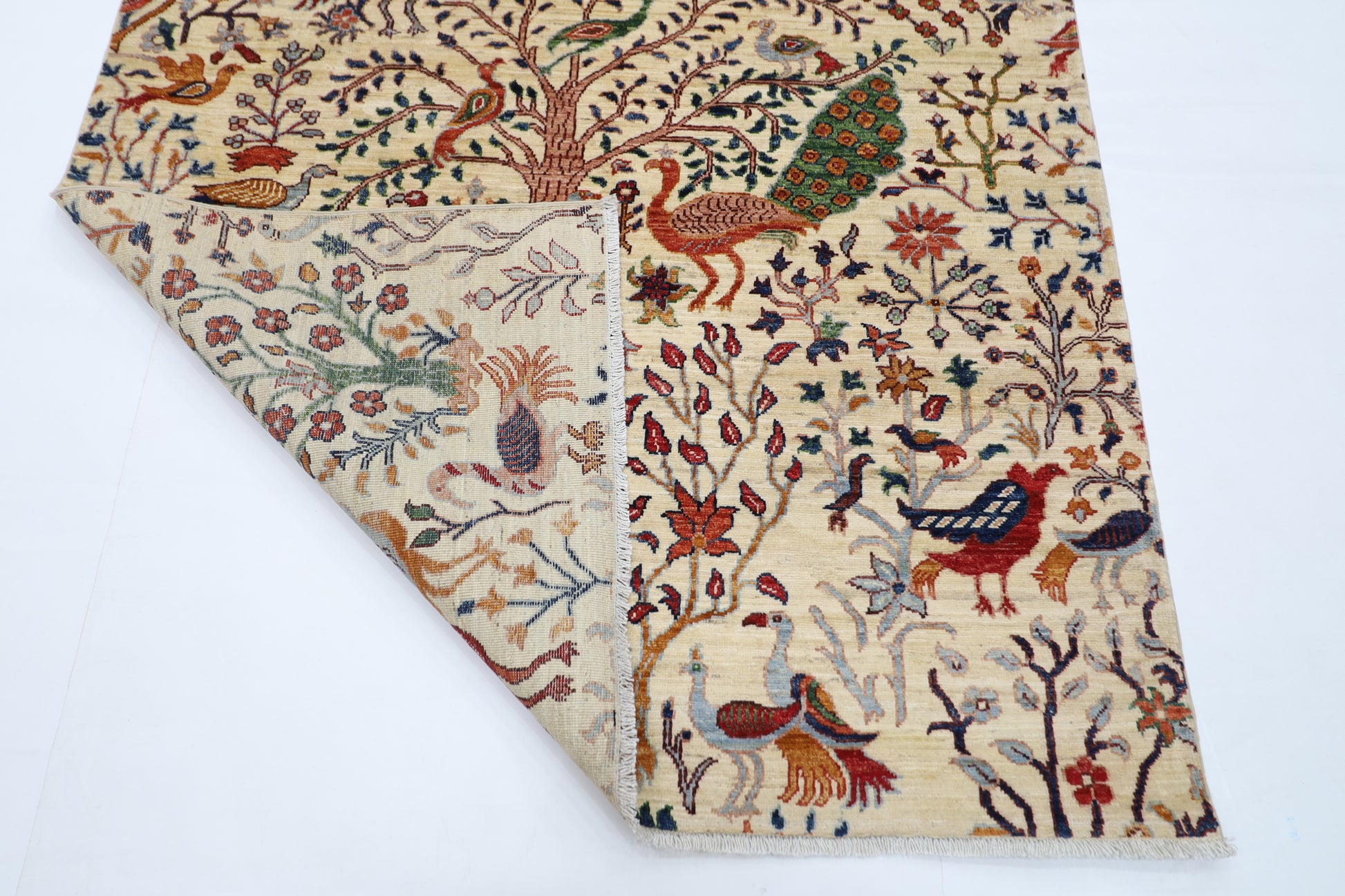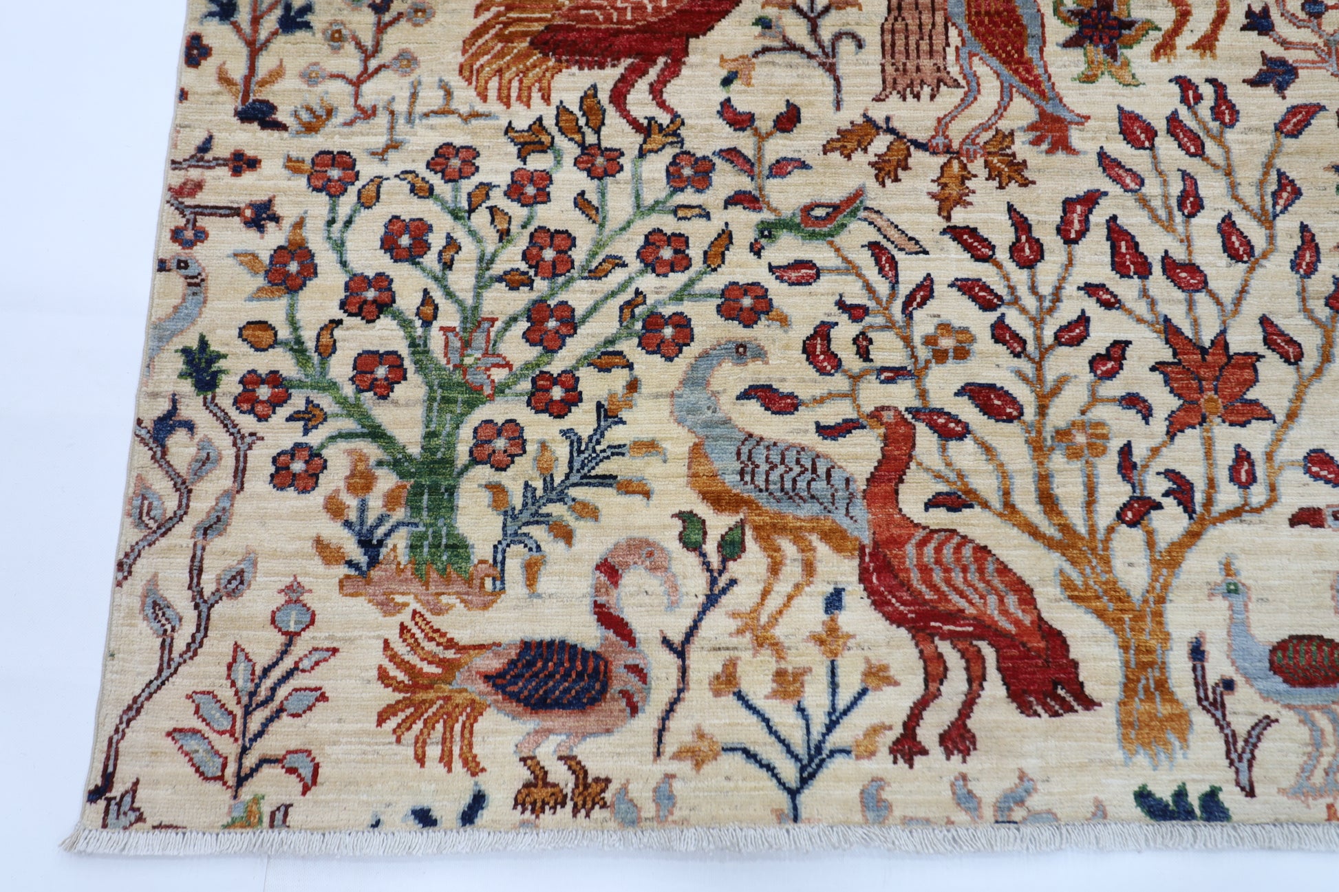 148 x 202 cm | Birds Beige Afghan Hand Knotted Carpet