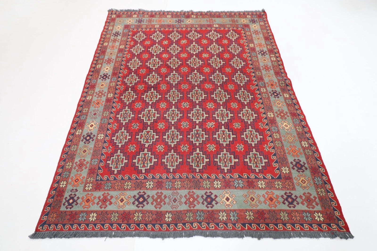 149 x 202 cm | Sumak Tribal Hand Knotted Veg Dye Wool Kilim