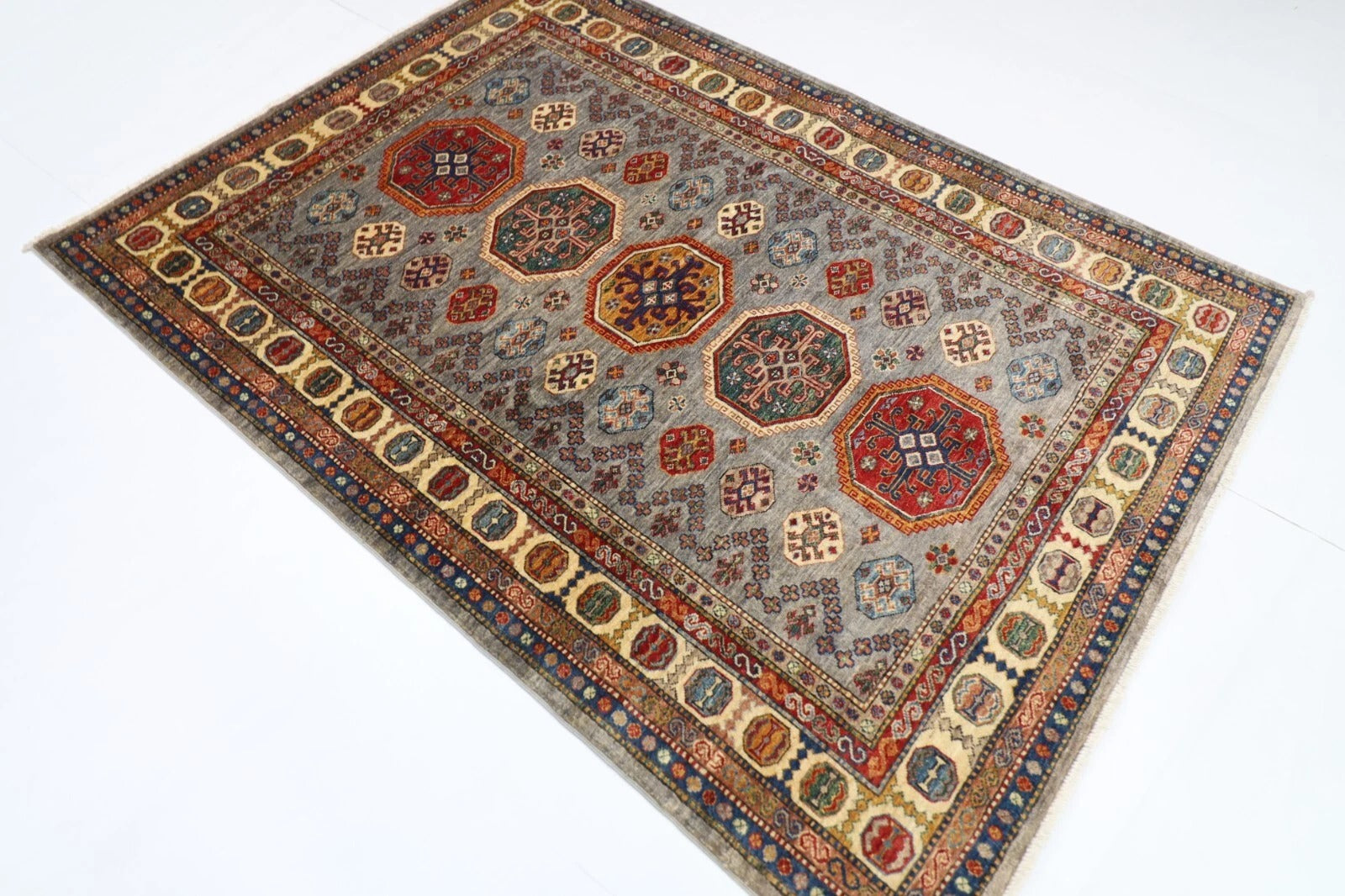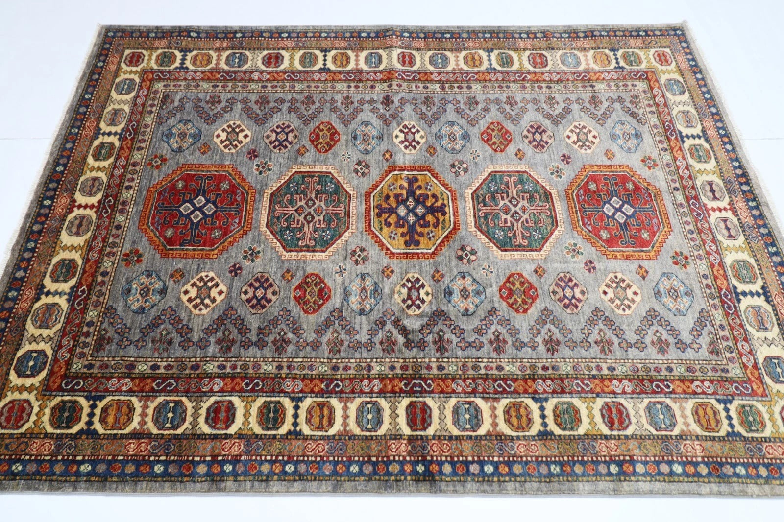 150 x 208 cm | Kazak Afghan Tribal Hand Knotted Veg Dye Wool carpet