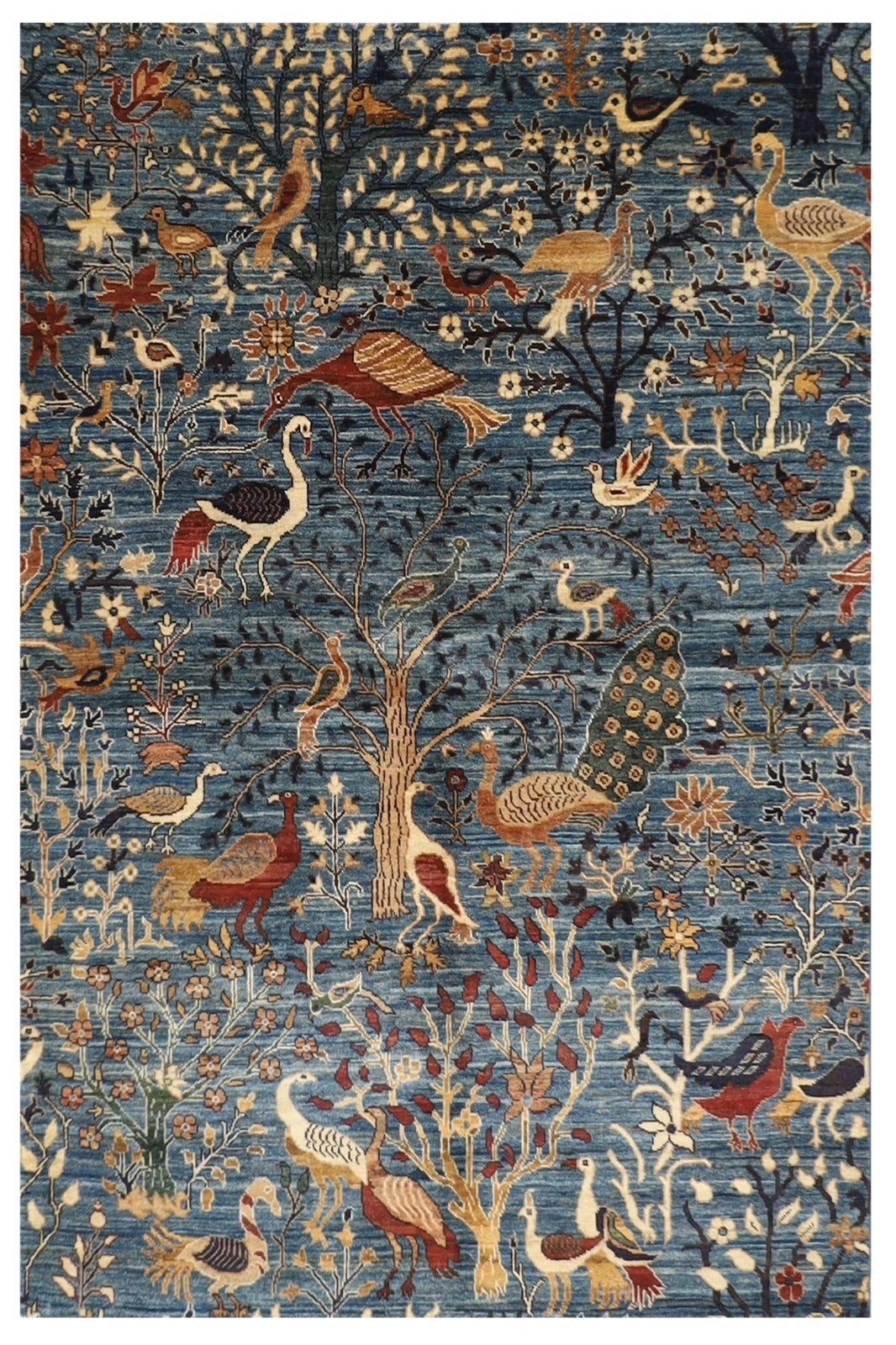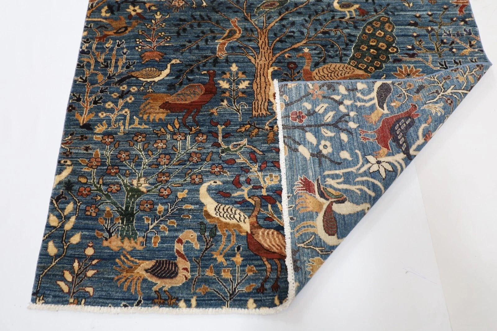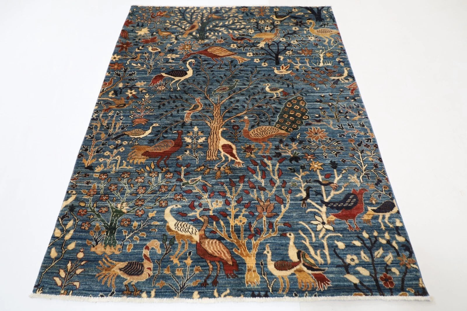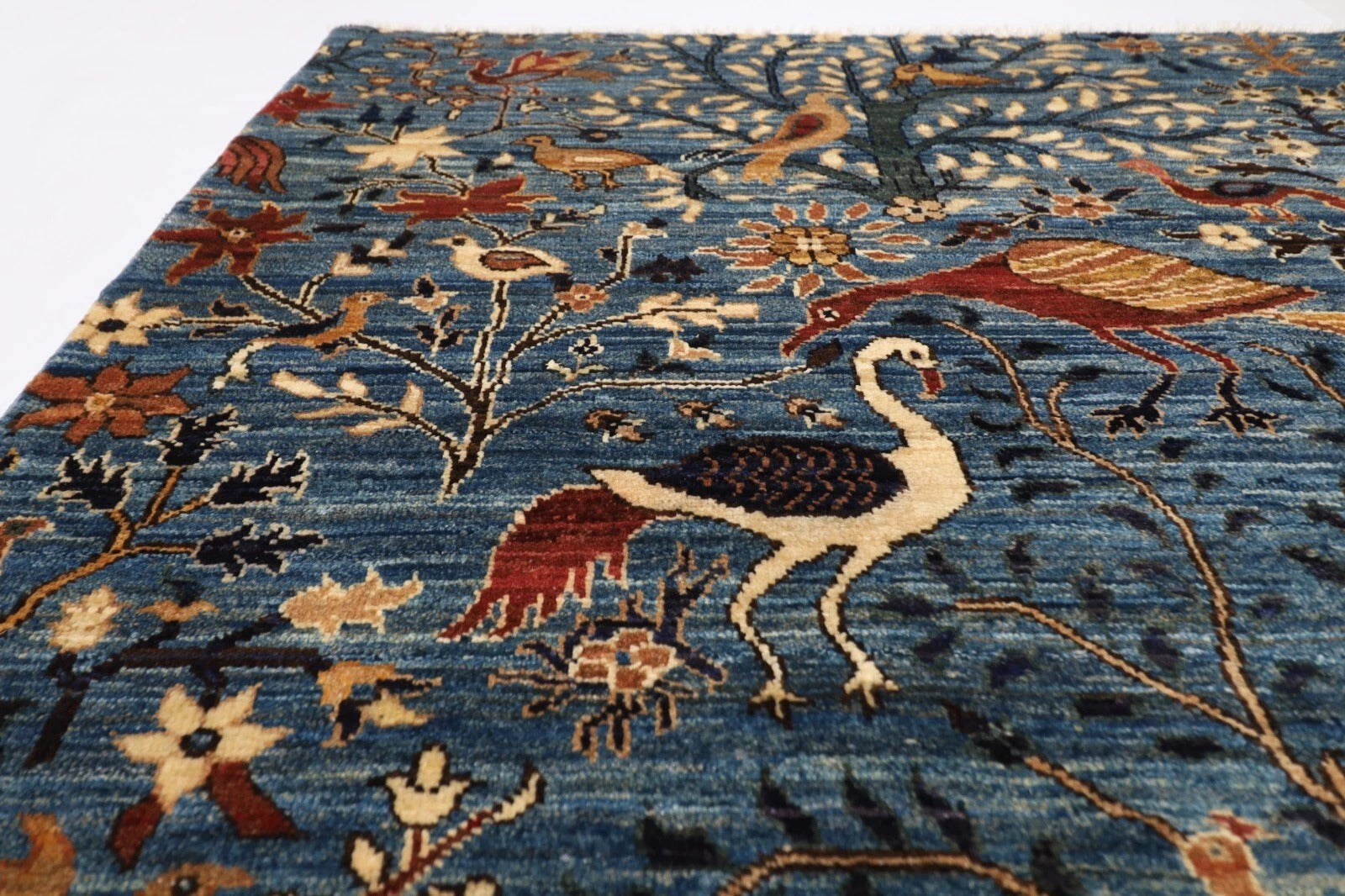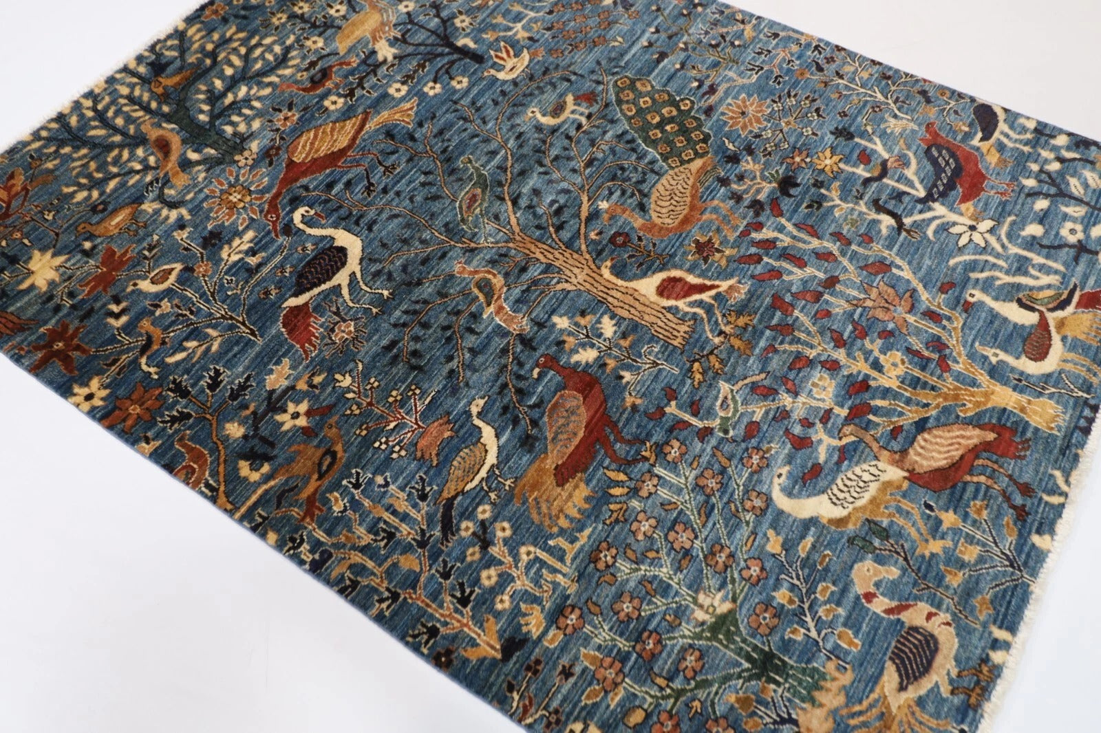 153 x 200 cm | Birds Afghan Tribal Hand Knotted Veg Dye Wool Carpet