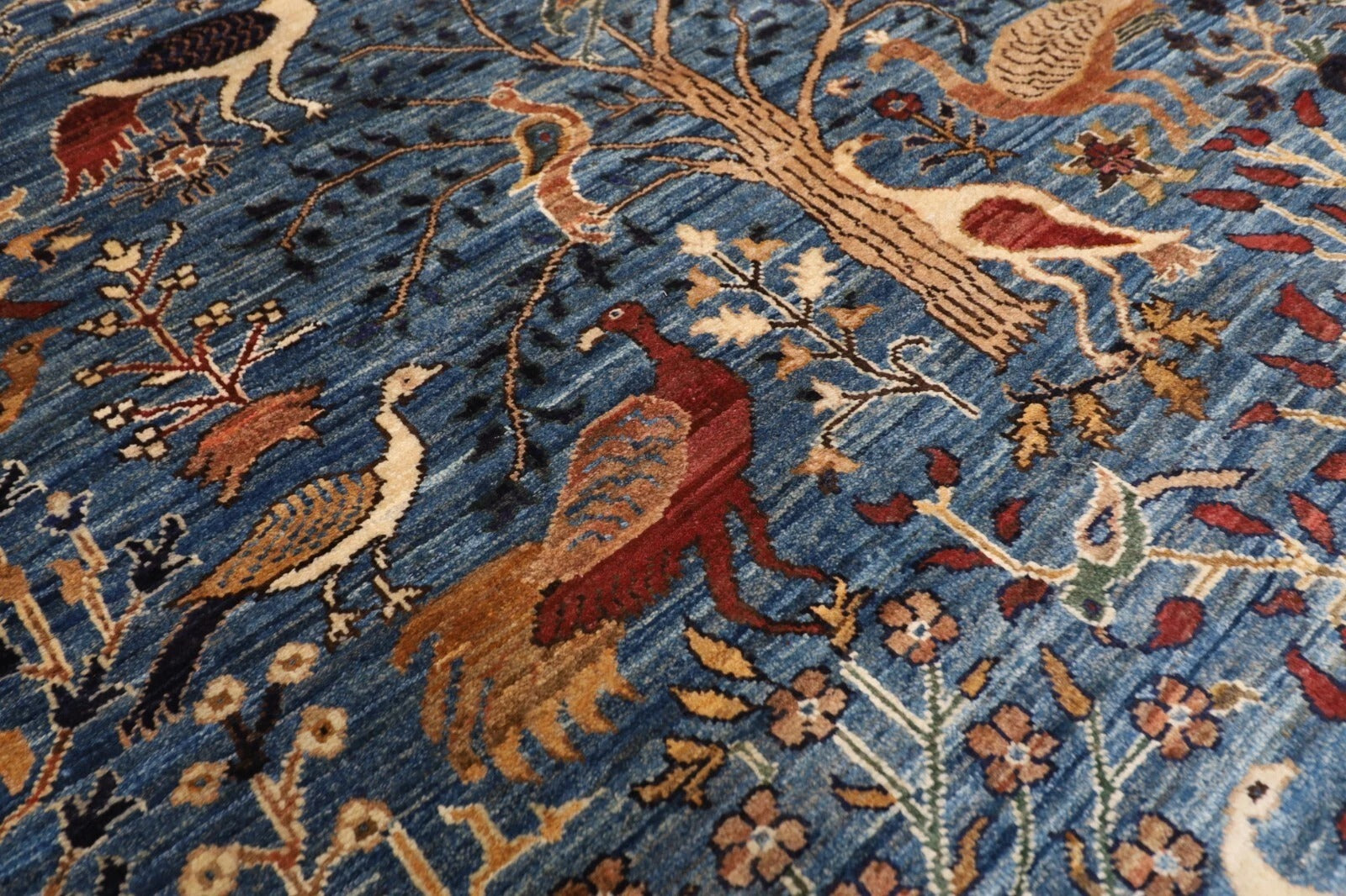 The photographs presented are captured indoor room lights without editing to show the beauty and vibrancy of the rug and also to give you the better idea that how the rug will look in your room and office, the colors in the rug will be perceived differently depending on the angle you view it from.