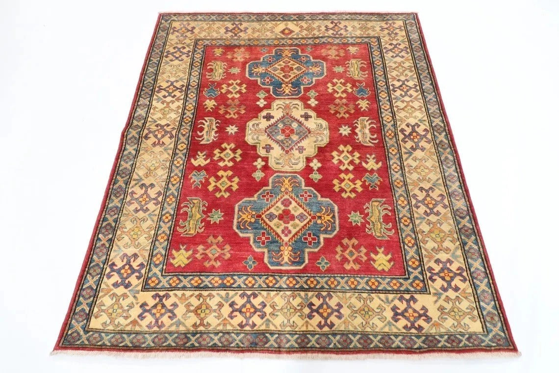 153 x 183 cm | Kazak Tribal Hand Knotted Veg Dye Wool Carpet