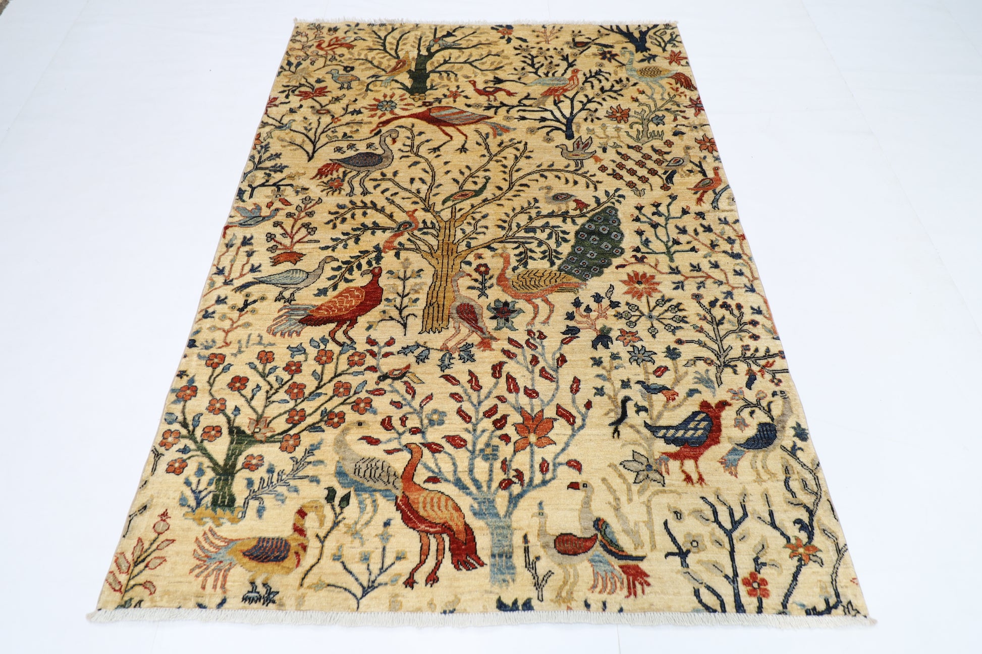 148 x 202 cm | Birds Afghan Tribal Hand Knotted Veg Dye Wool Runner