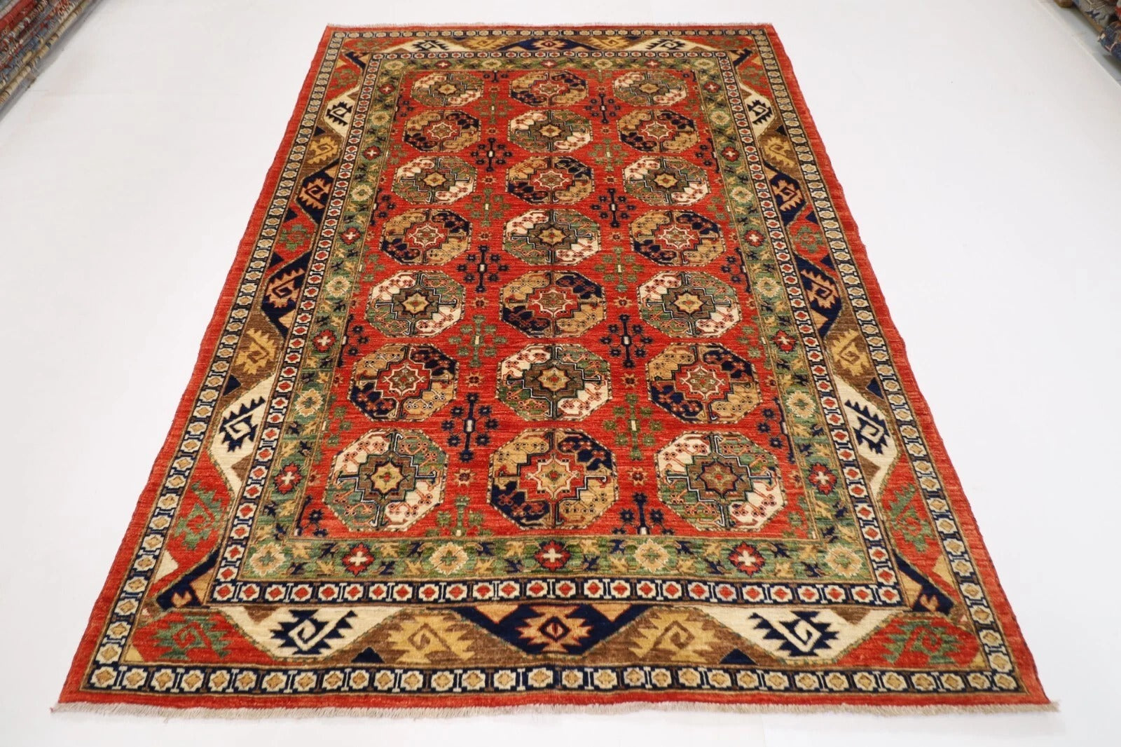 184 x 240 cm | Ersari Afghan Tribal Hand Knotted Veg Dye Wool Carpet