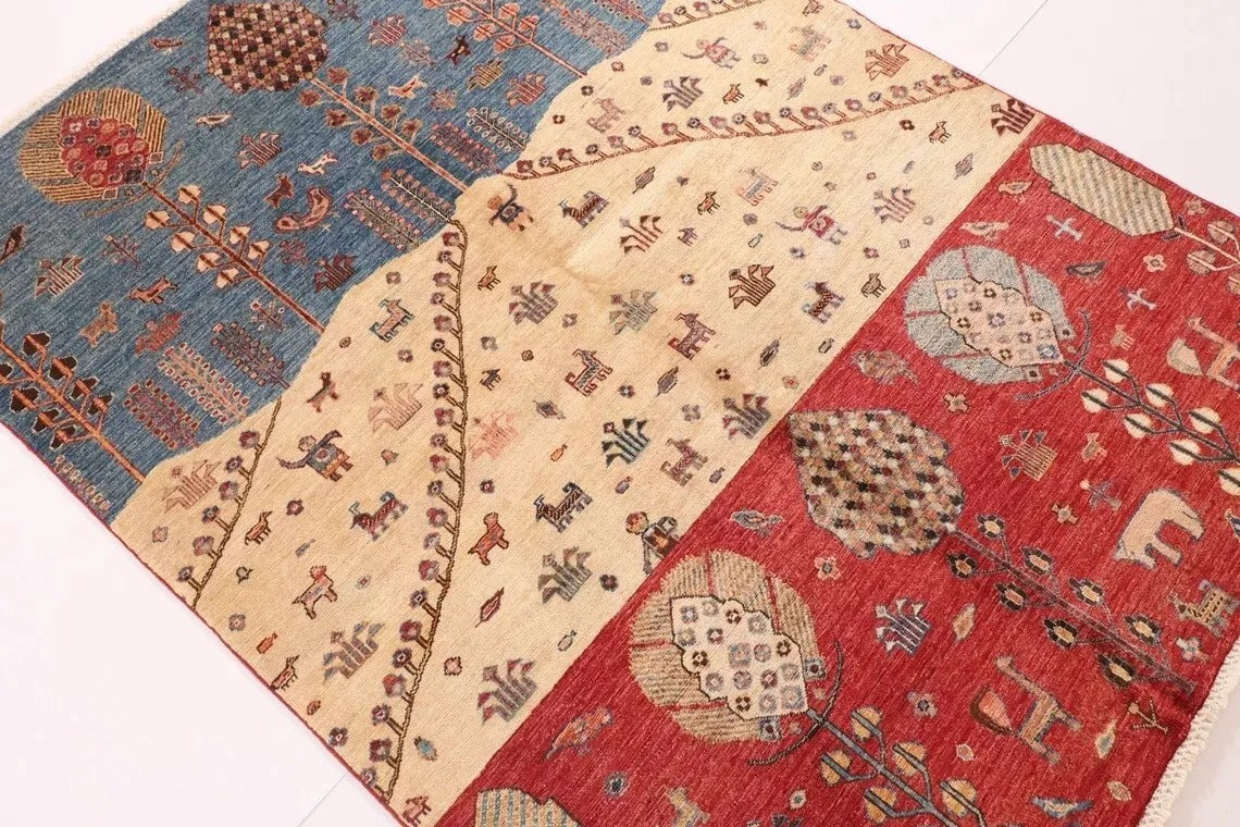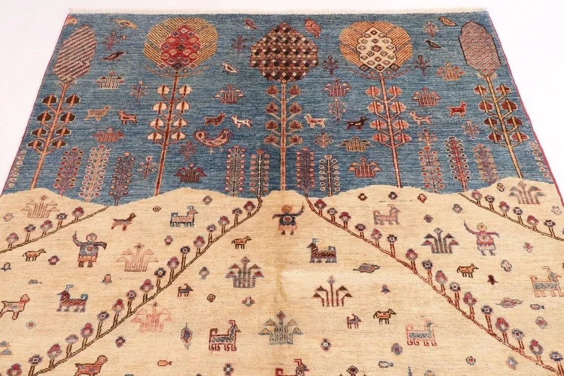 143 x 195 cm | Landscape Afghan Tribal Hand Knotted Veg Dye Wool carpet