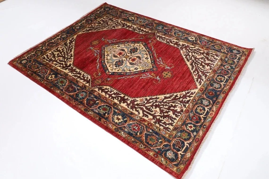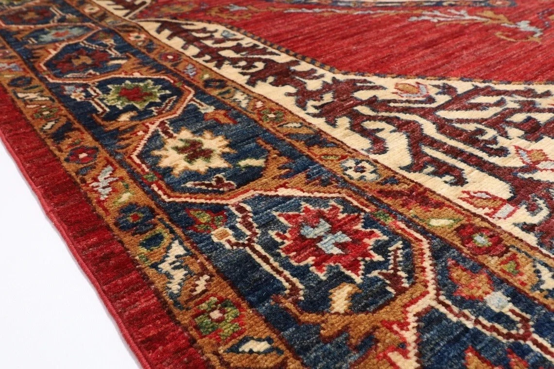 151 x 197 cm | Heriz Afghan Tribal Hand Knotted Veg Dye Wool Carpet