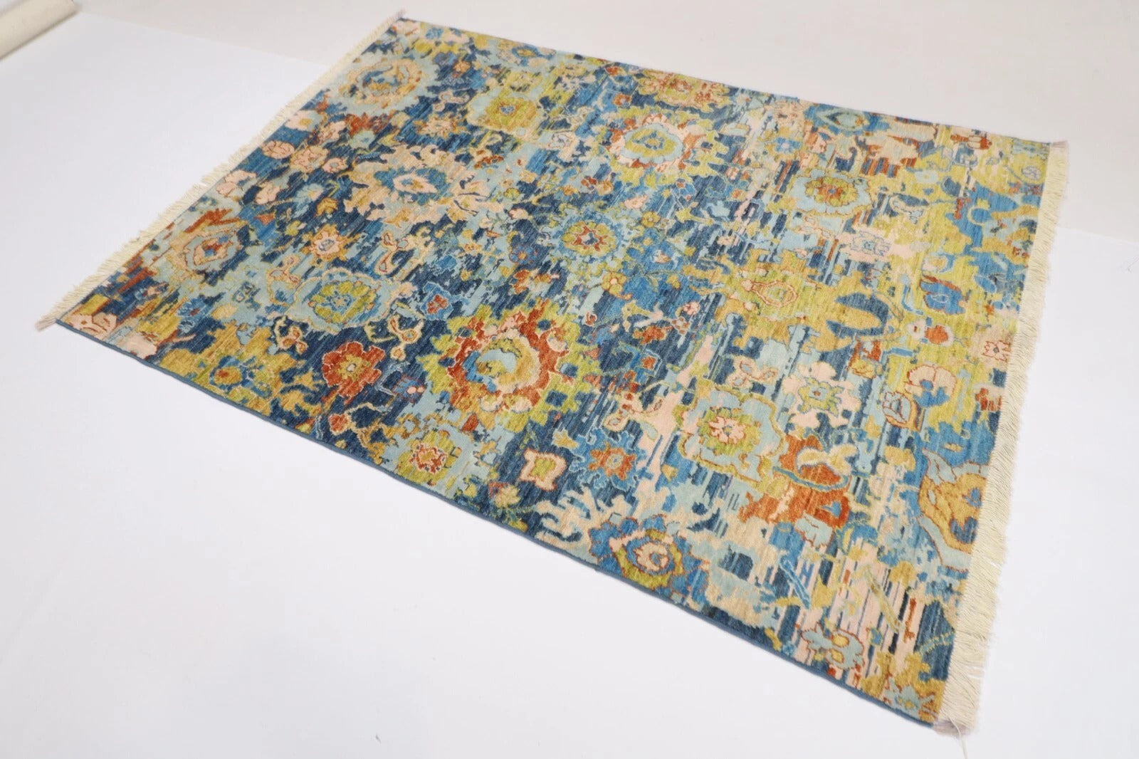 The photographs presented are captured indoor room lights without editing to show the beauty and vibrancy of the rug and also to give you the better idea that how the rug will look in your room and office, the colors in the rug will be perceived differently depending on the angle you view it from.