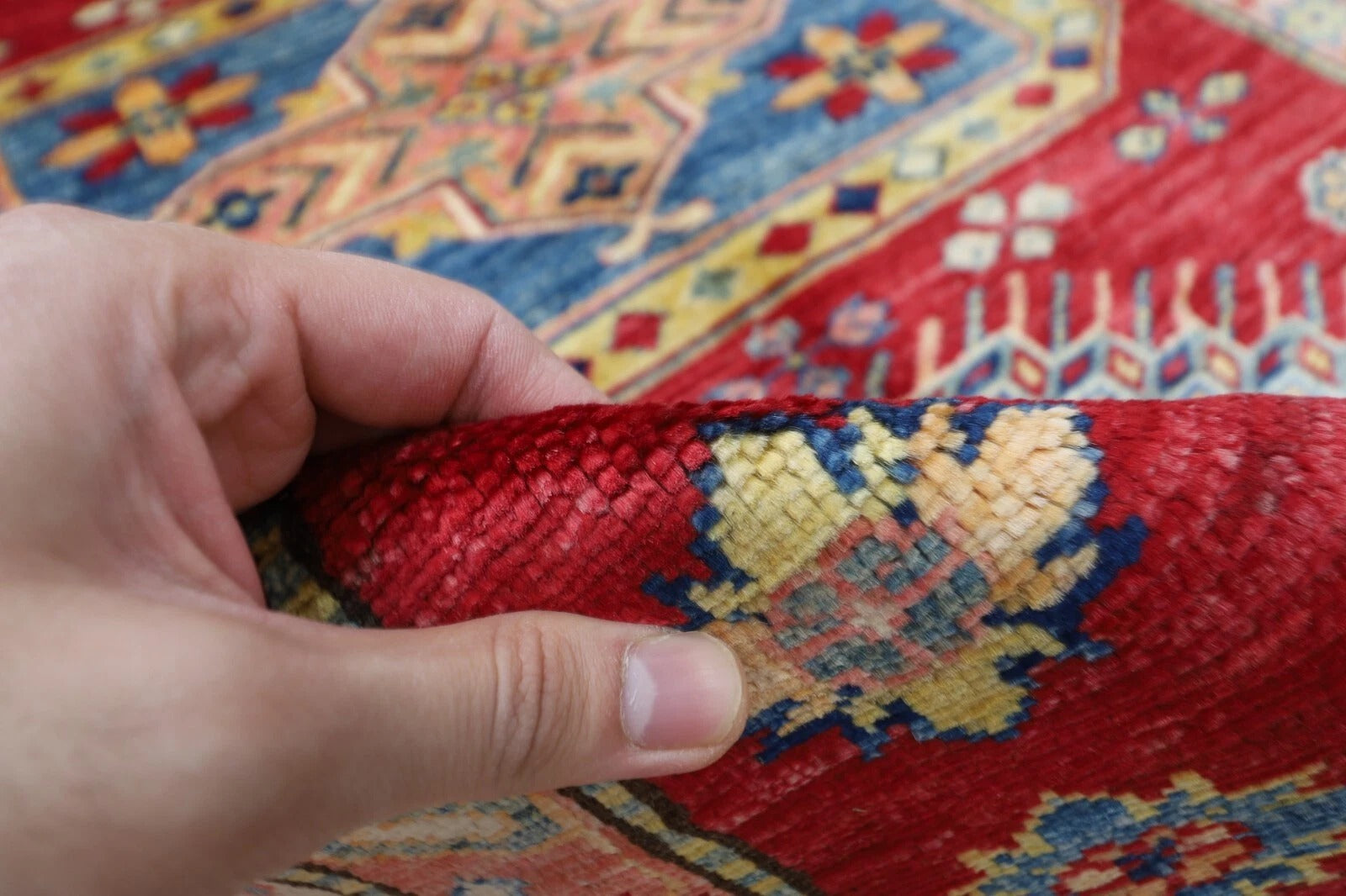 145 x 196 cm | Kazak Afghan Tribal Hand Knotted Veg Dye Wool Carpet