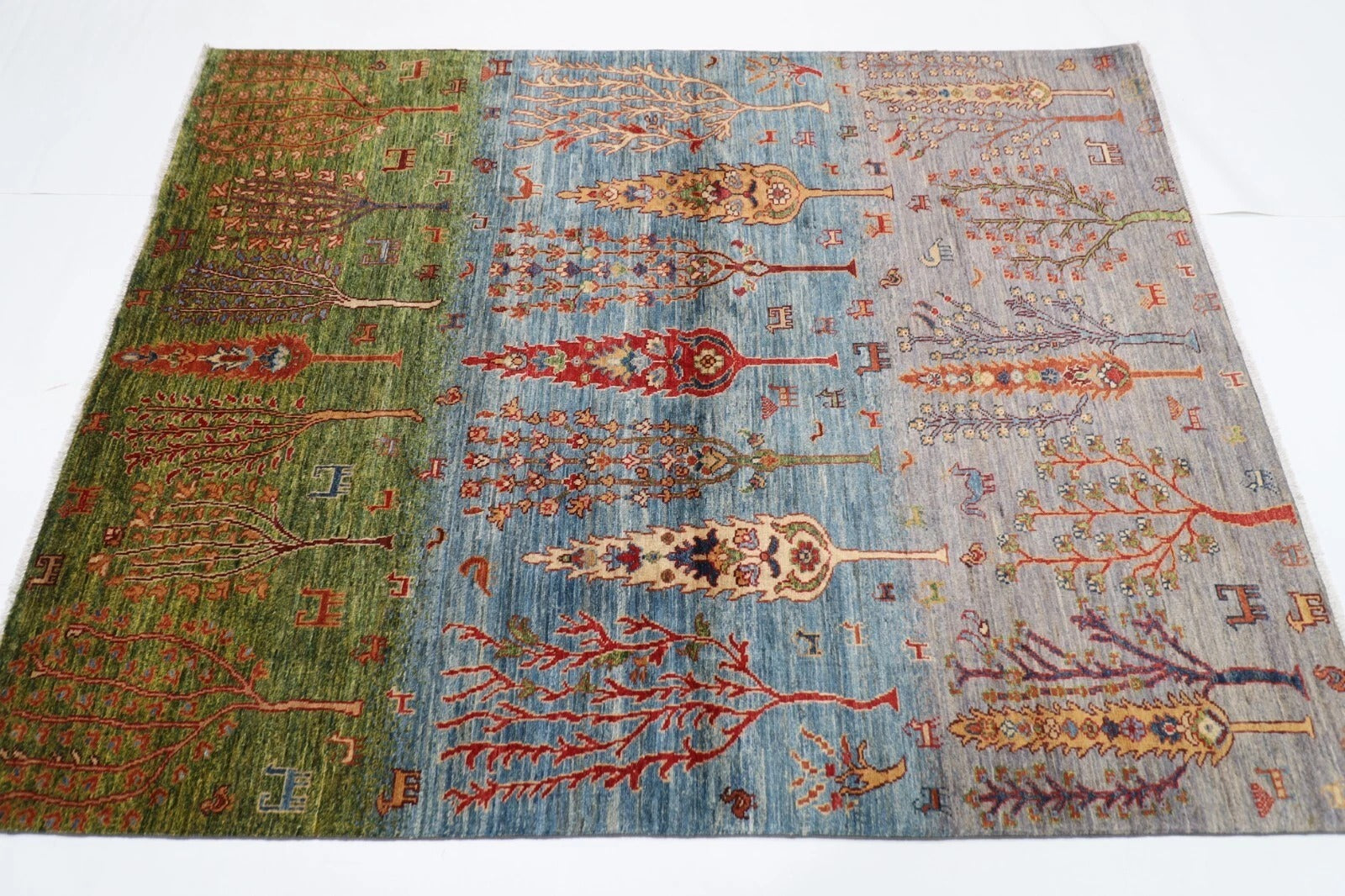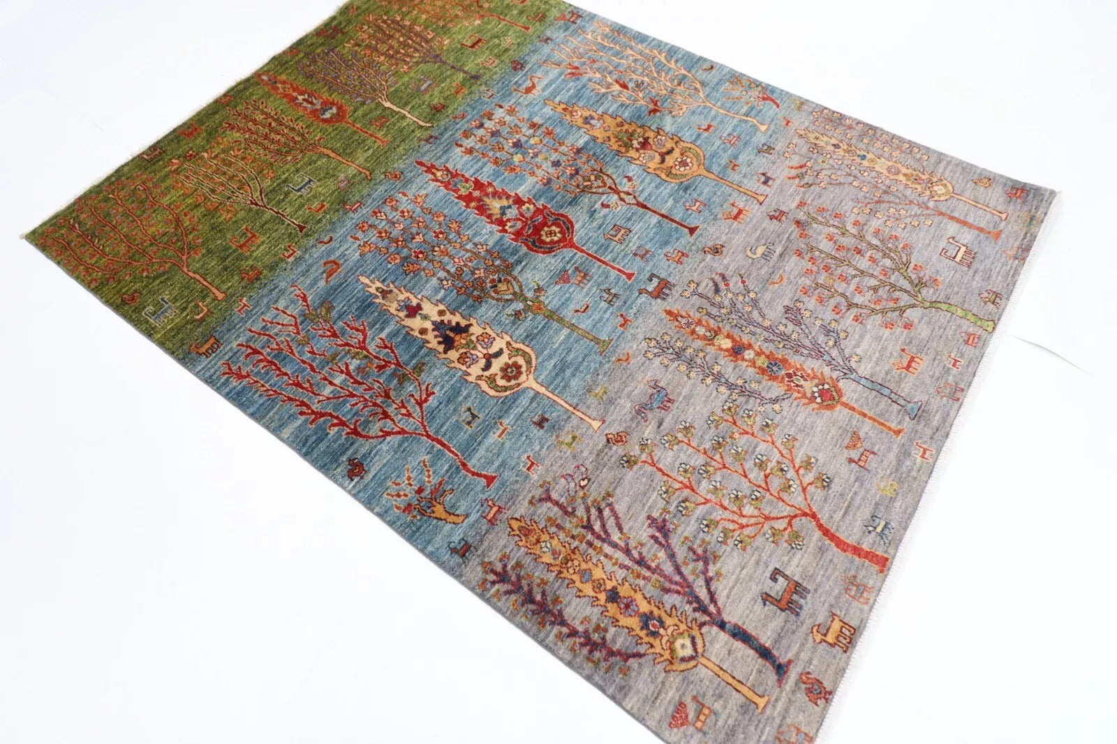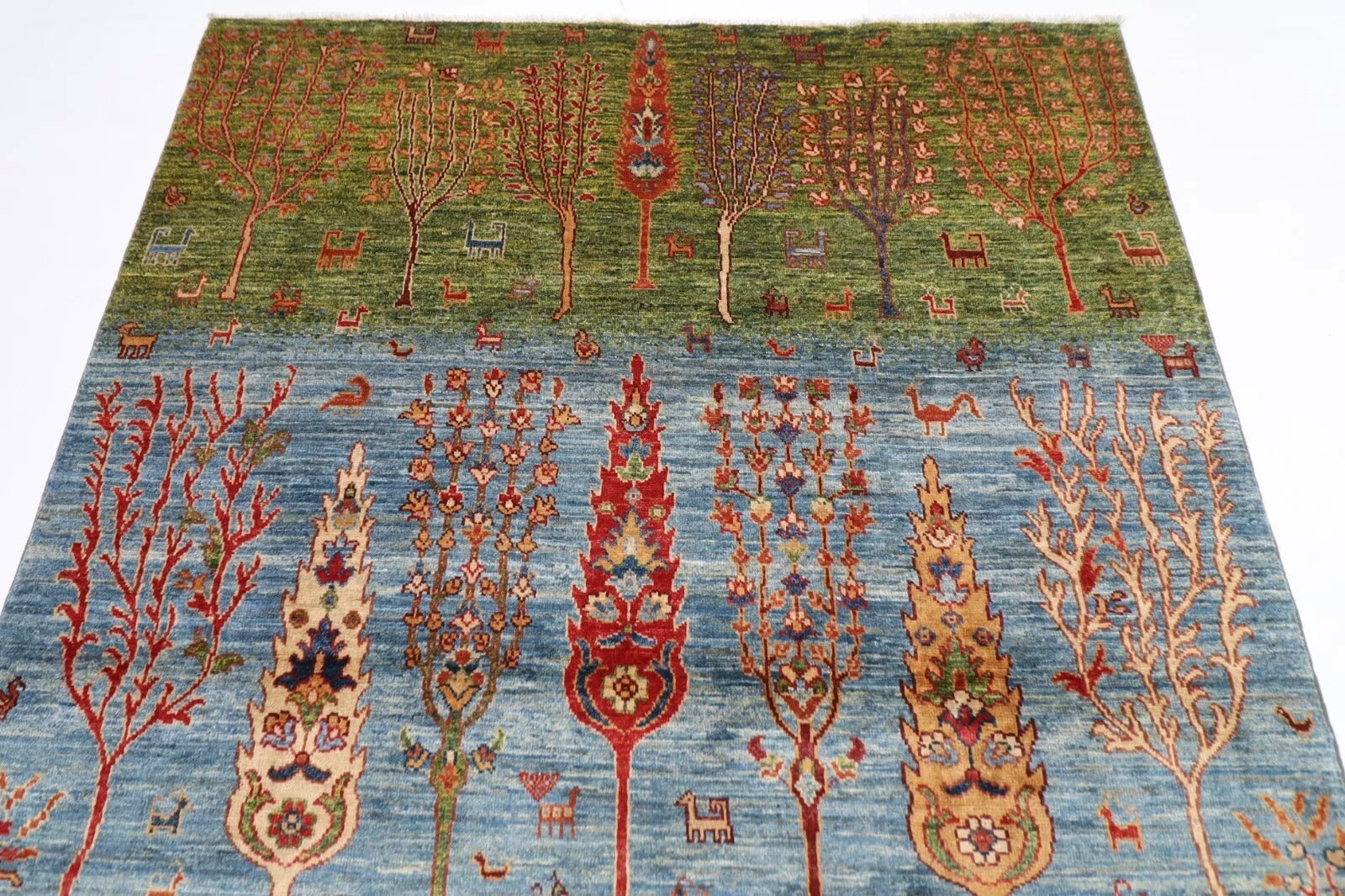 153 x 203 cm | Trees Afghan Tribal Hand Knotted Veg Dye Wool carpet
