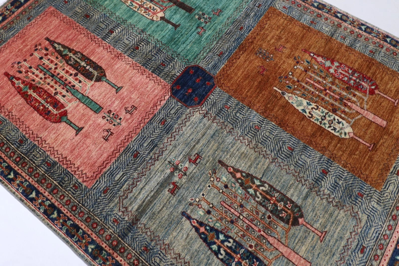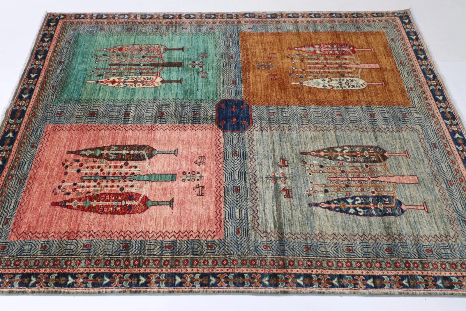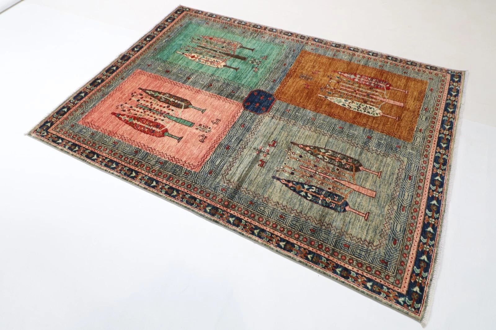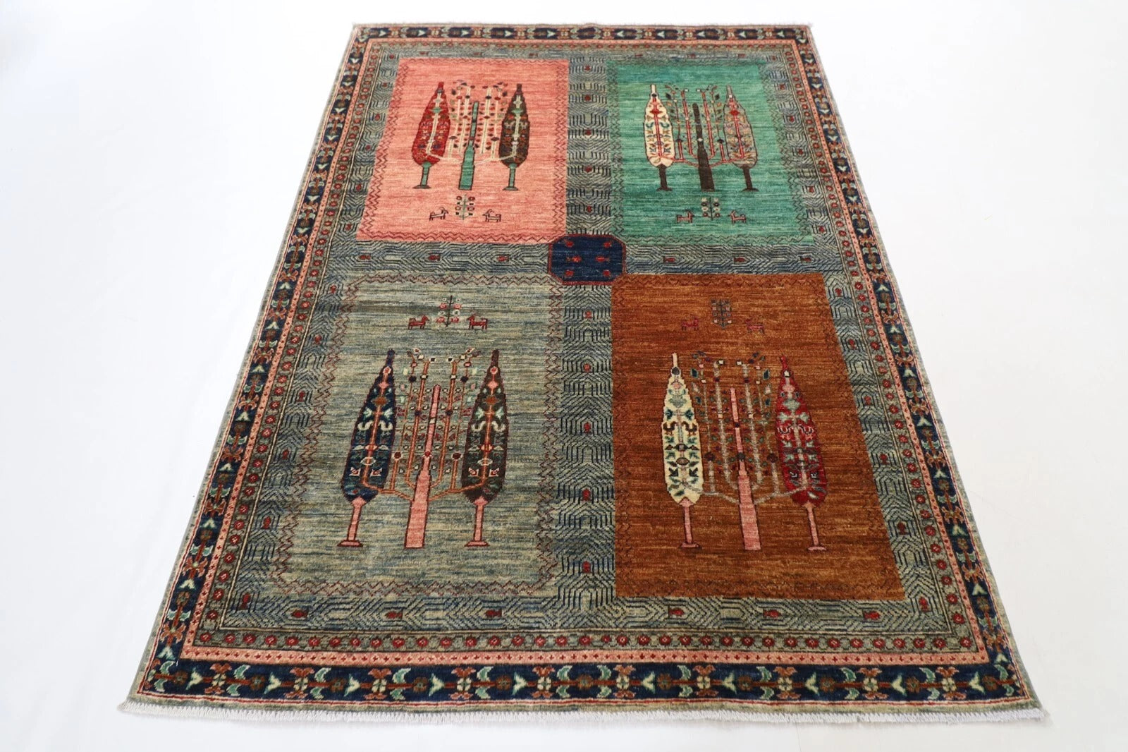 149 x 201 cm | Trees Afghan Tribal Hand Knotted Veg Dye Wool carpet