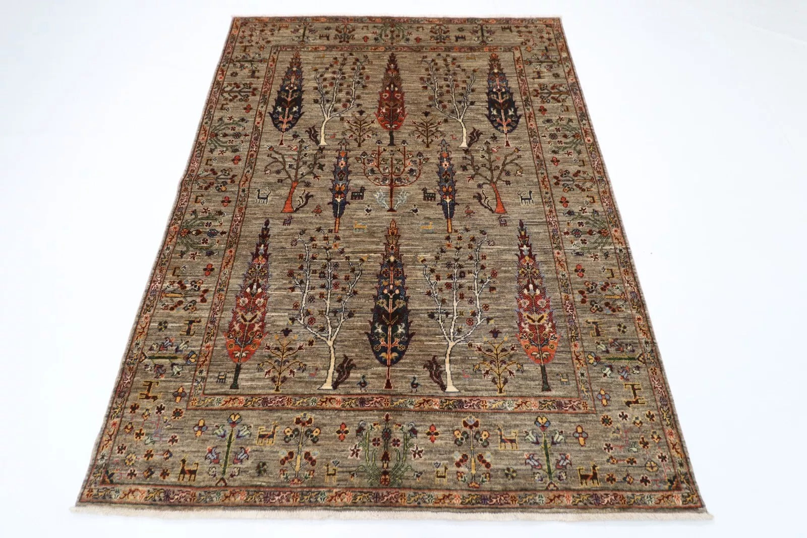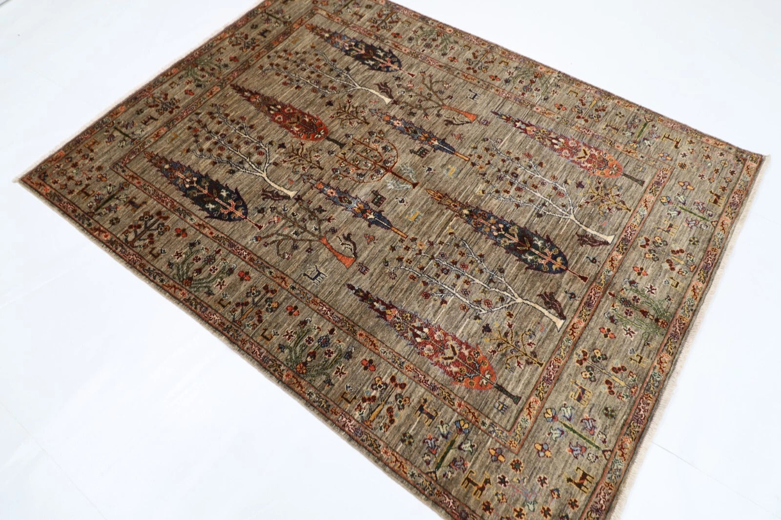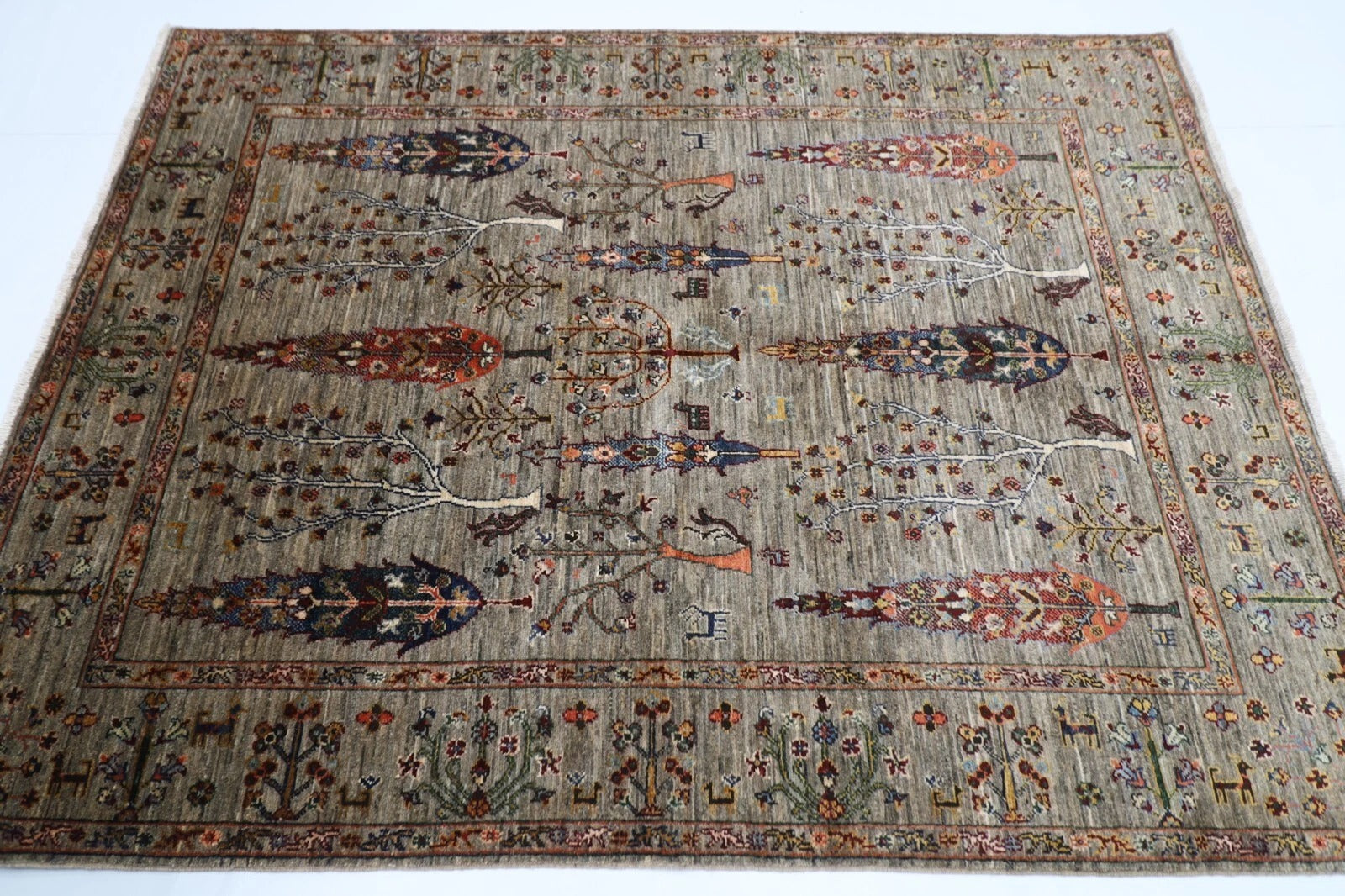 153 x 202 cm | Tree of Life Afghan Tribal Hand Knotted Veg Dye Wool Carpet