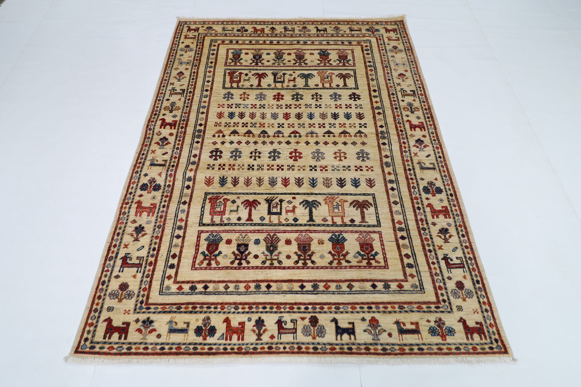 148 x 199 cm | Animal Afghan Tribal Hand Knotted Veg Dye Wool Runner