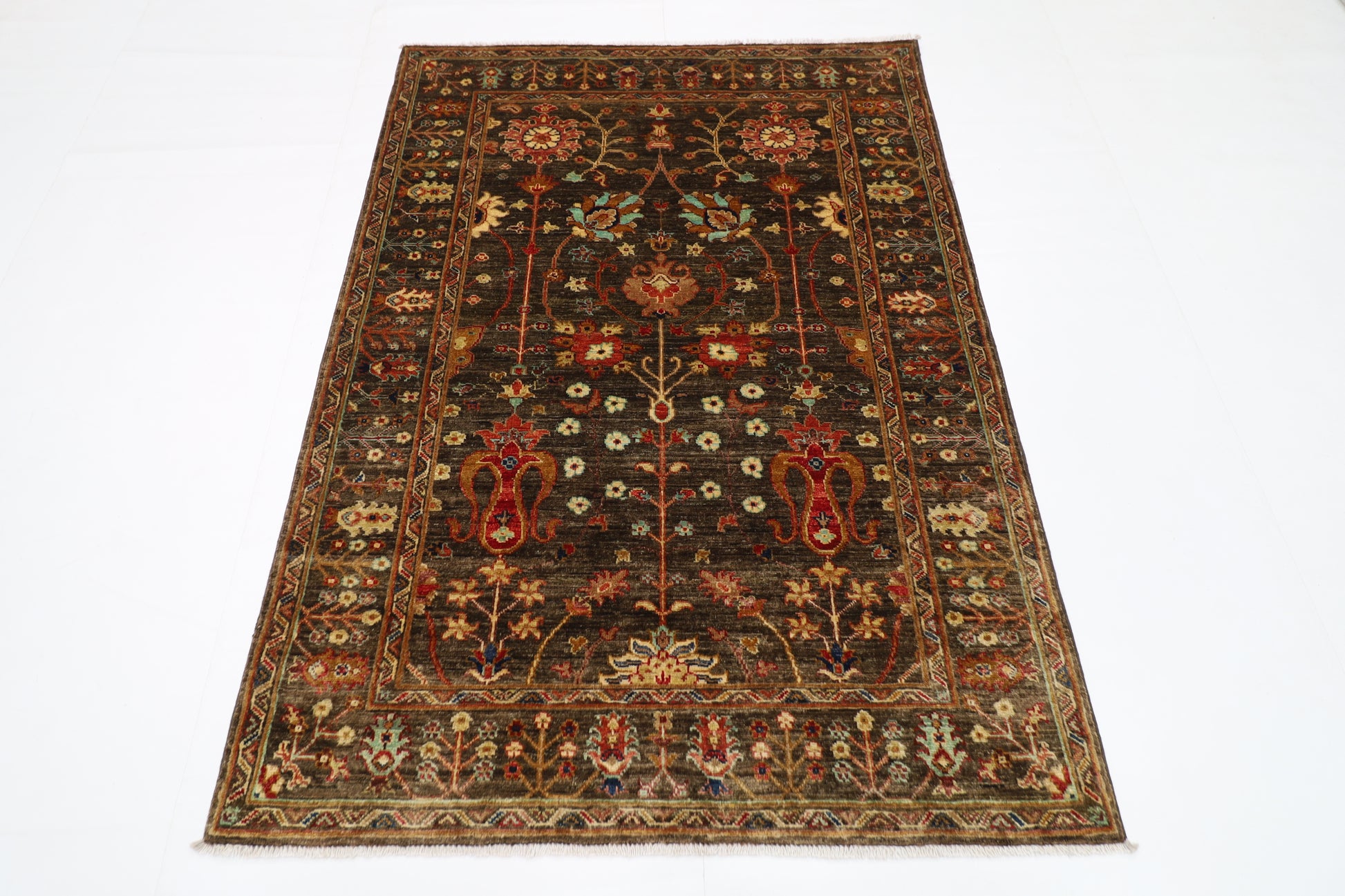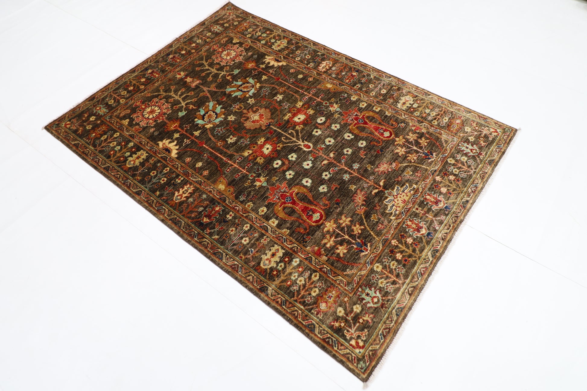128 x 178 cm | Sultani Brown Afghan Hand Knotted Carpet