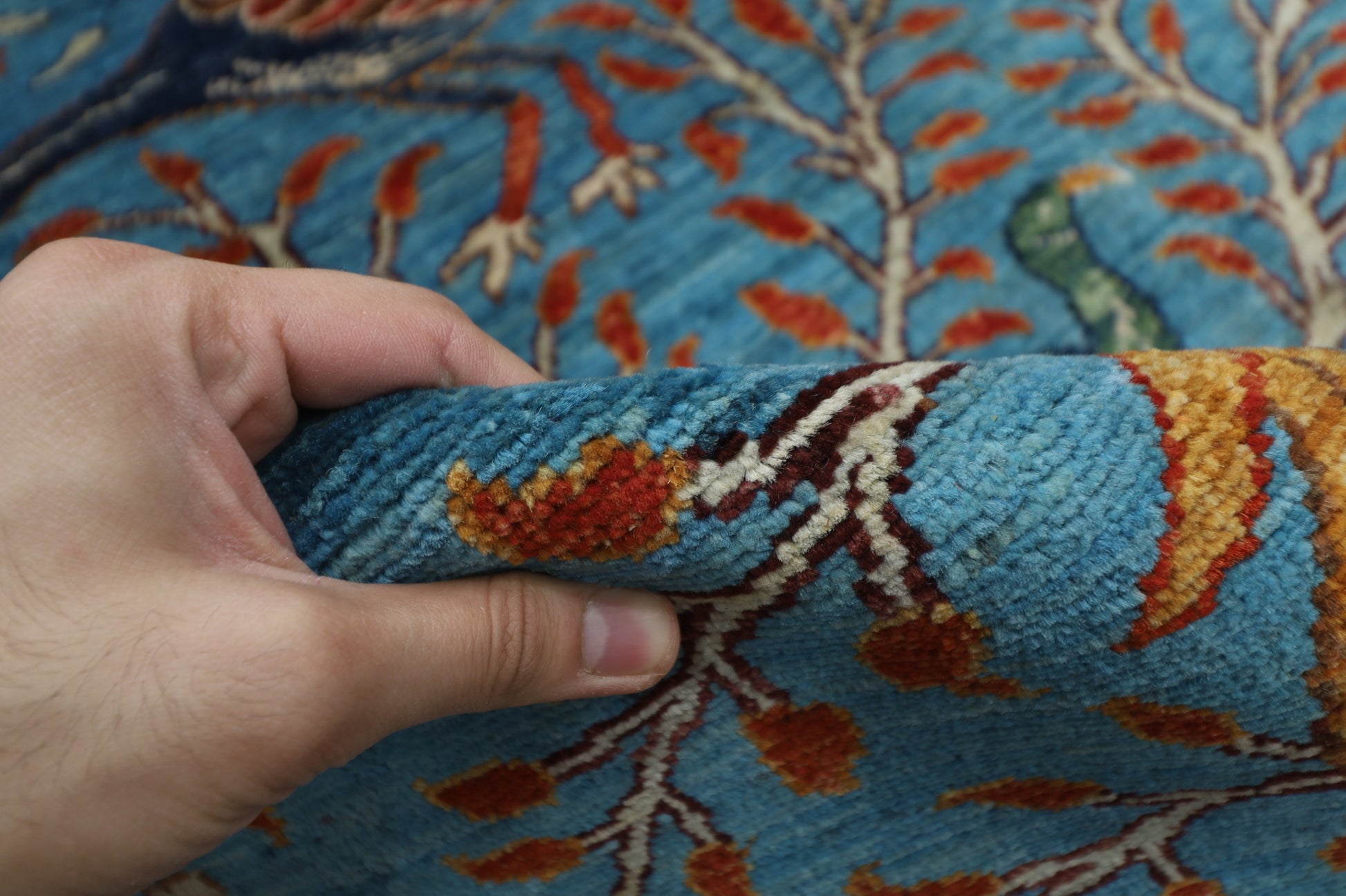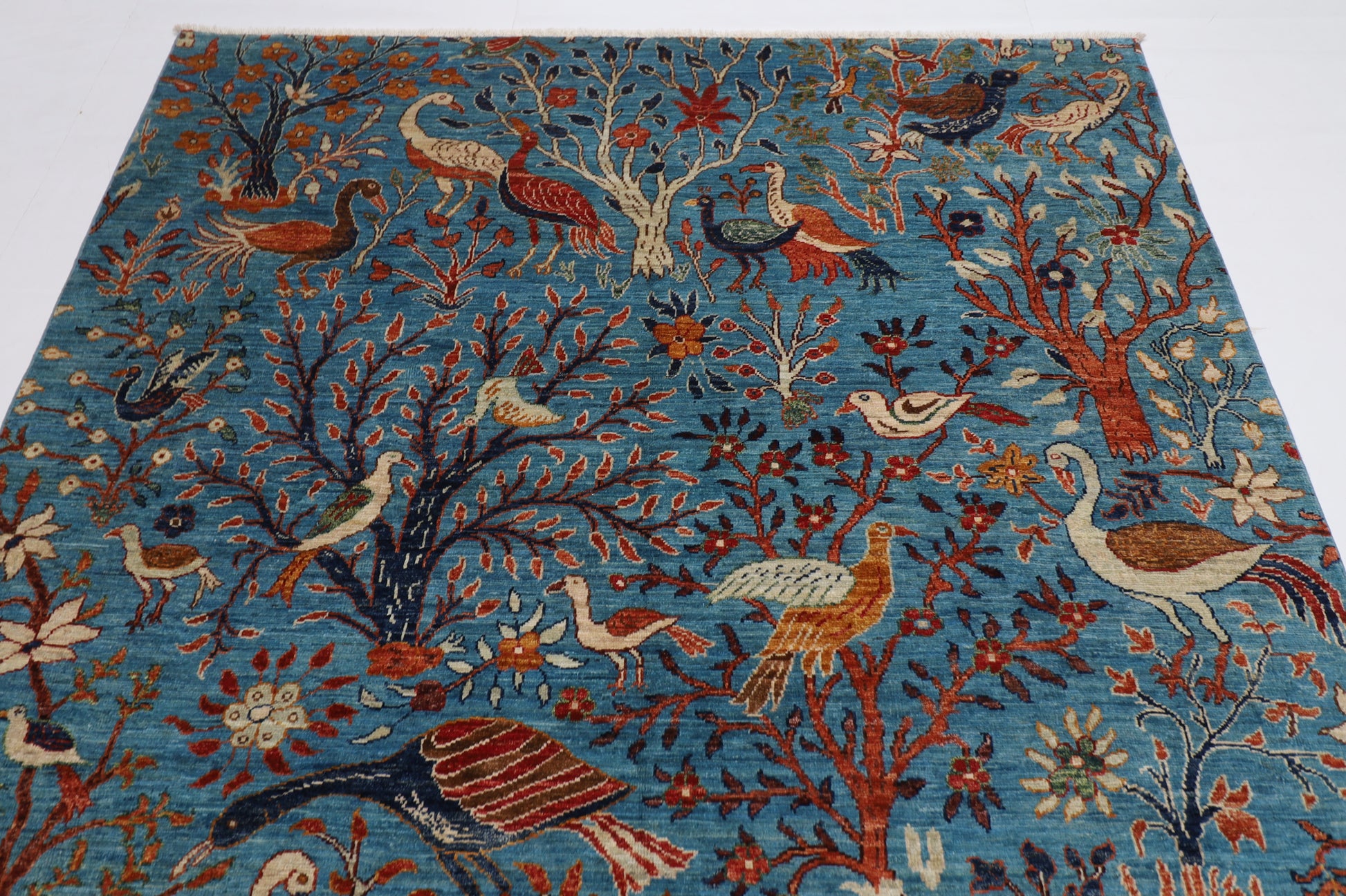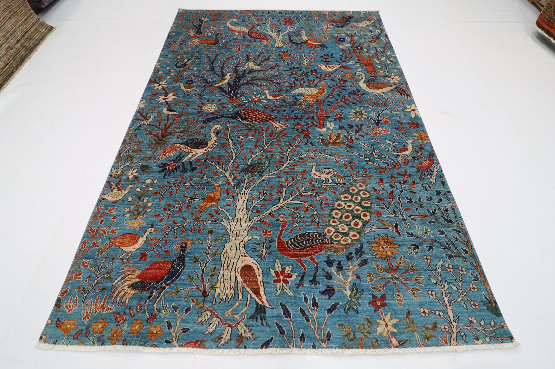 182 x 269 cm | Oriental tree of life Birds blue Afghan Tribal Hand Knotted Wool Carpet