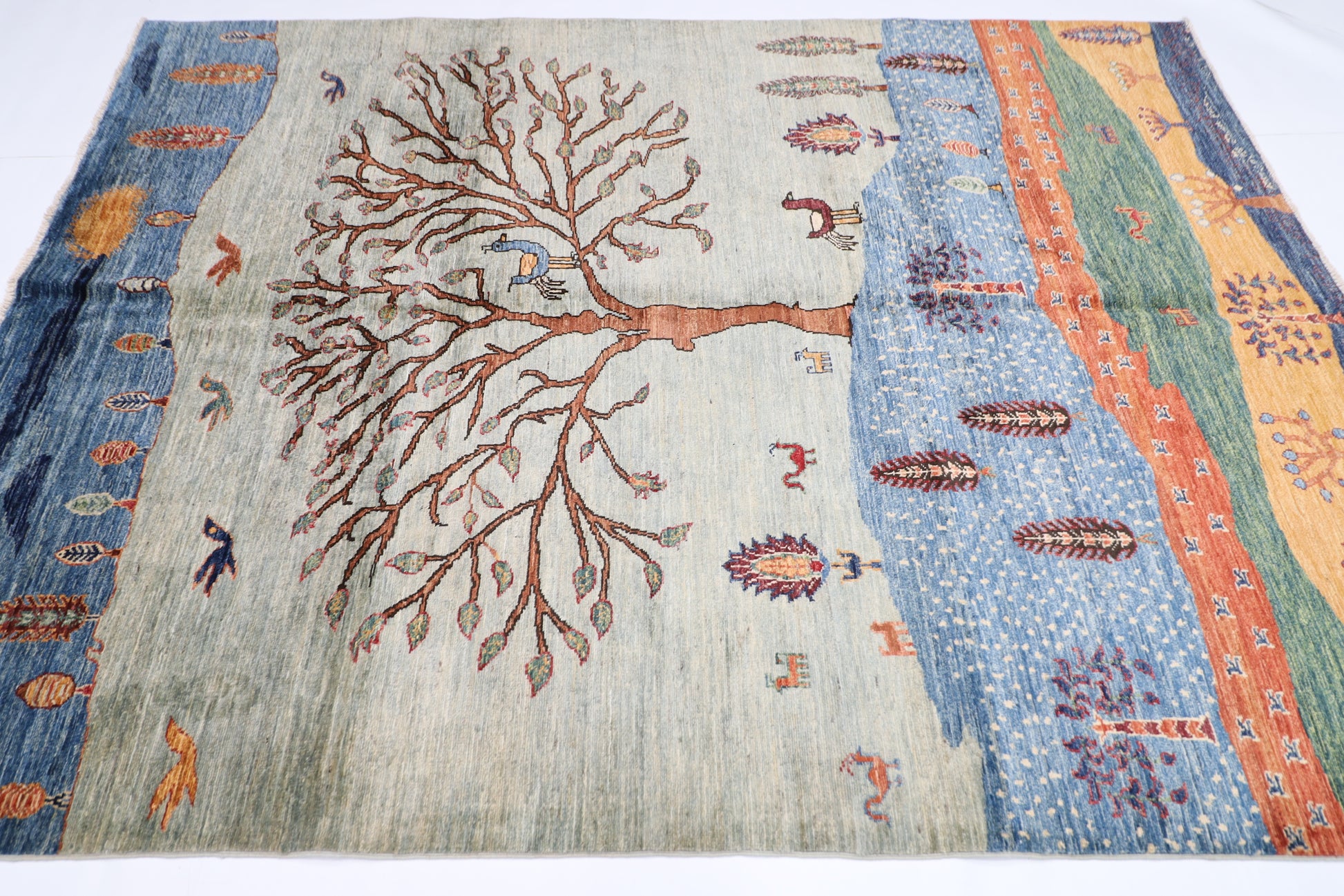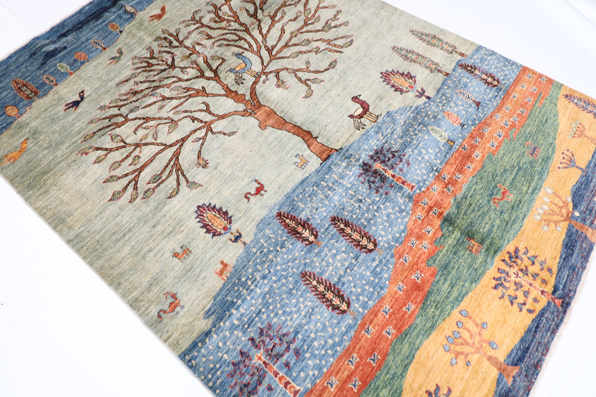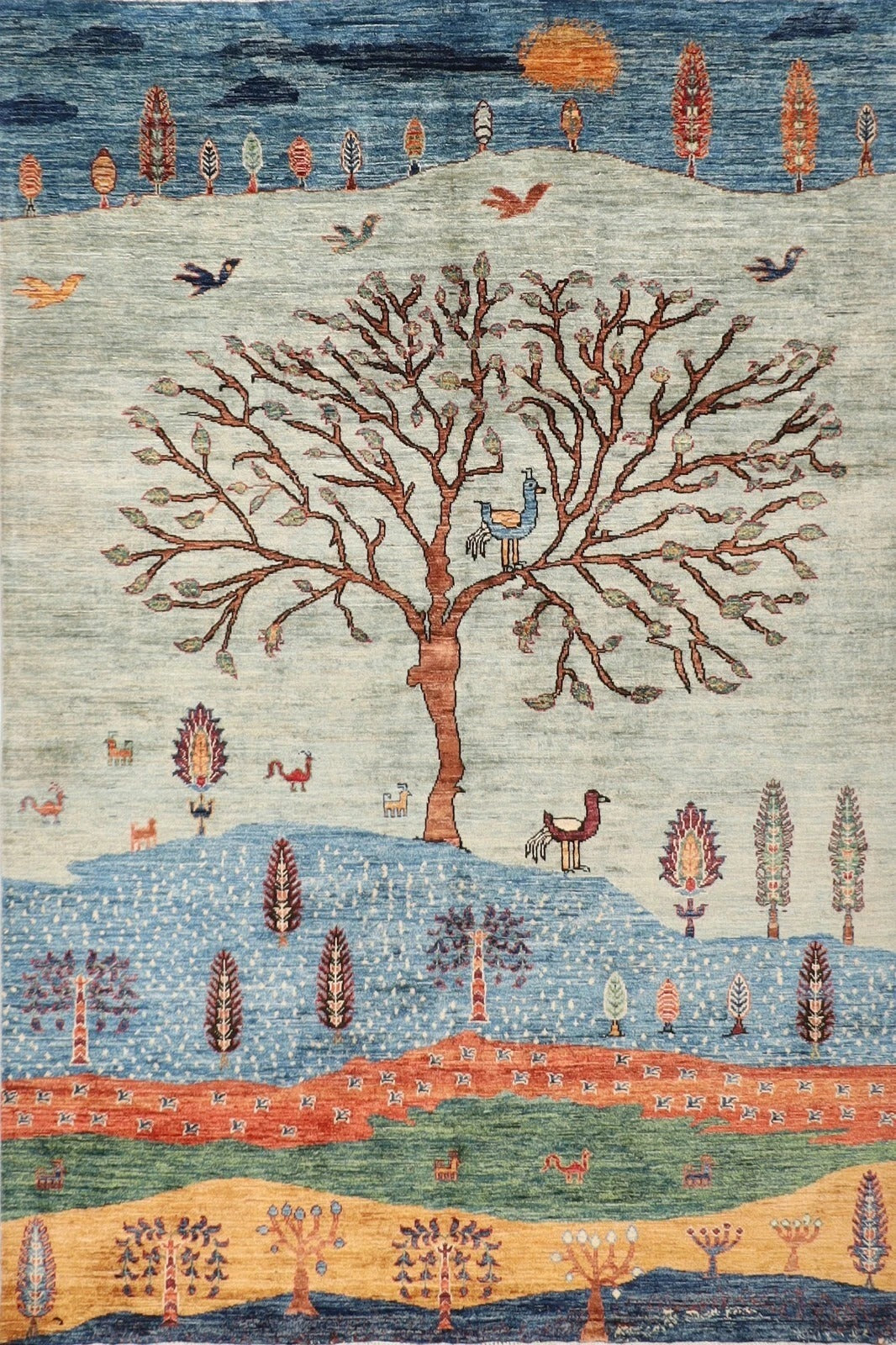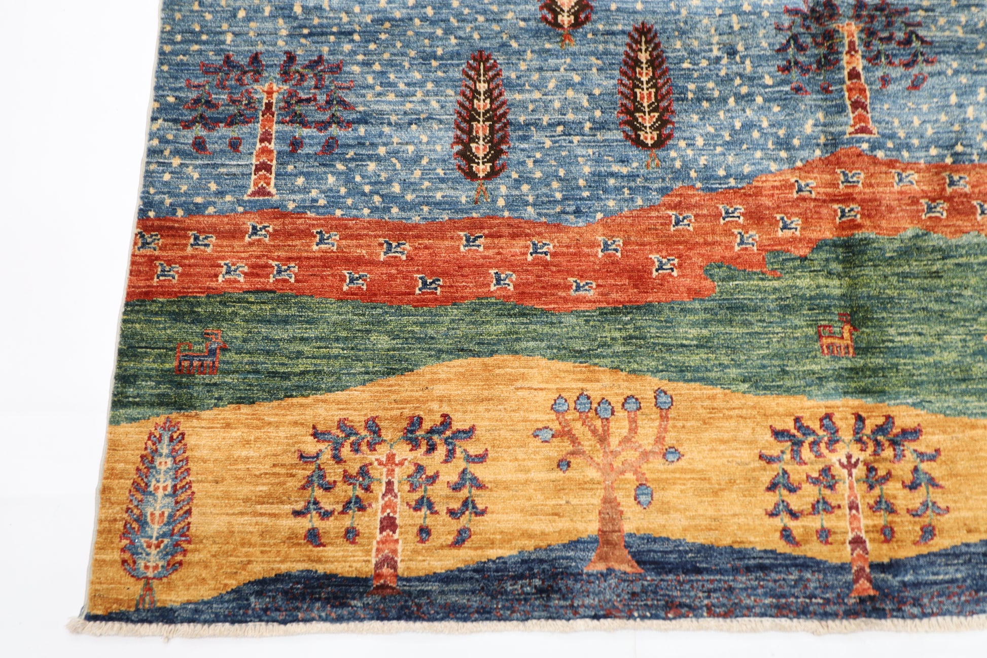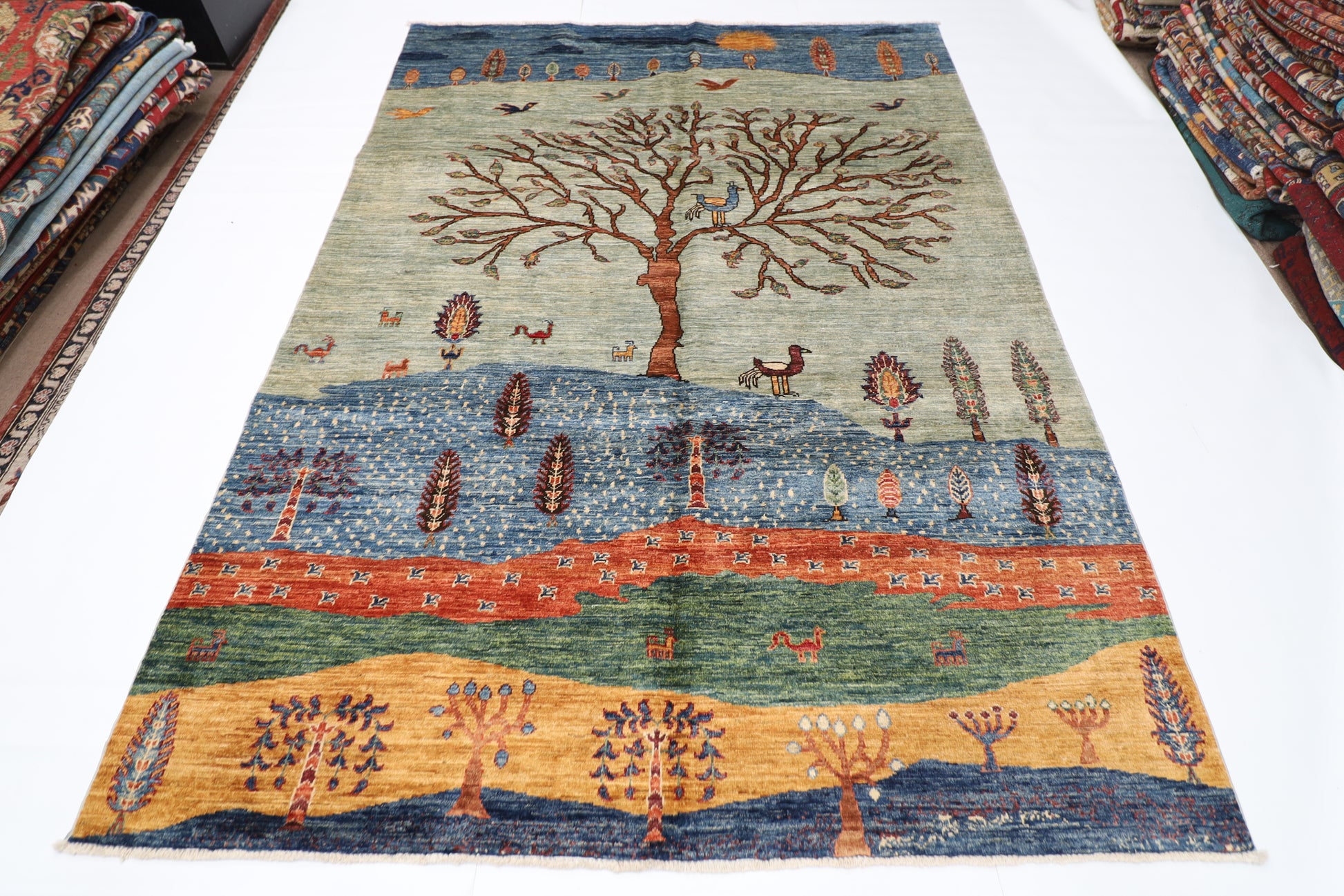 176 x 242 cm | Landscape Afghan Tribal Hand Knotted Veg Dye Wool Carpet