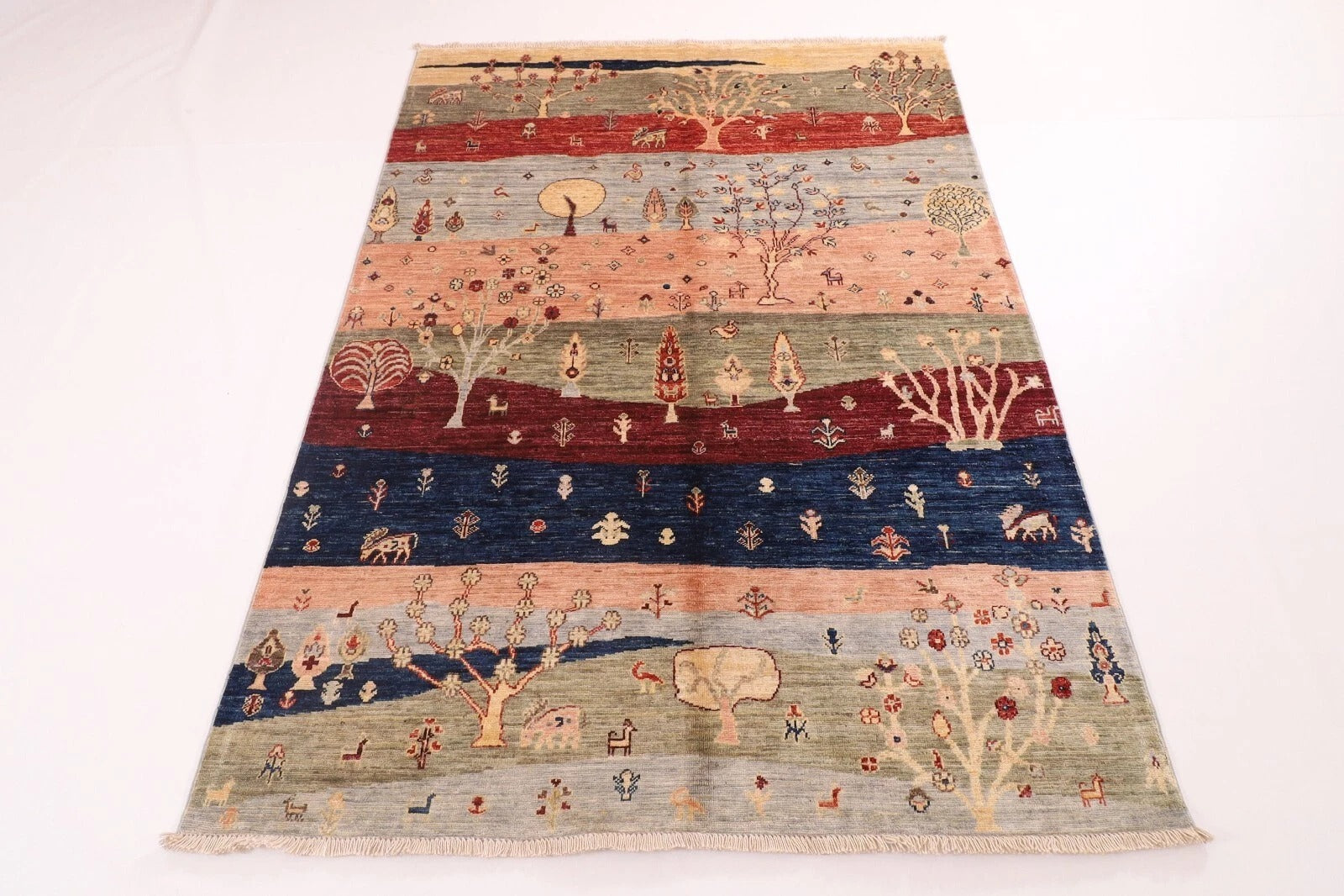 149 x 200 cm | Landscape Afghan Tribal Hand Knotted Veg Dye Wool Carpet