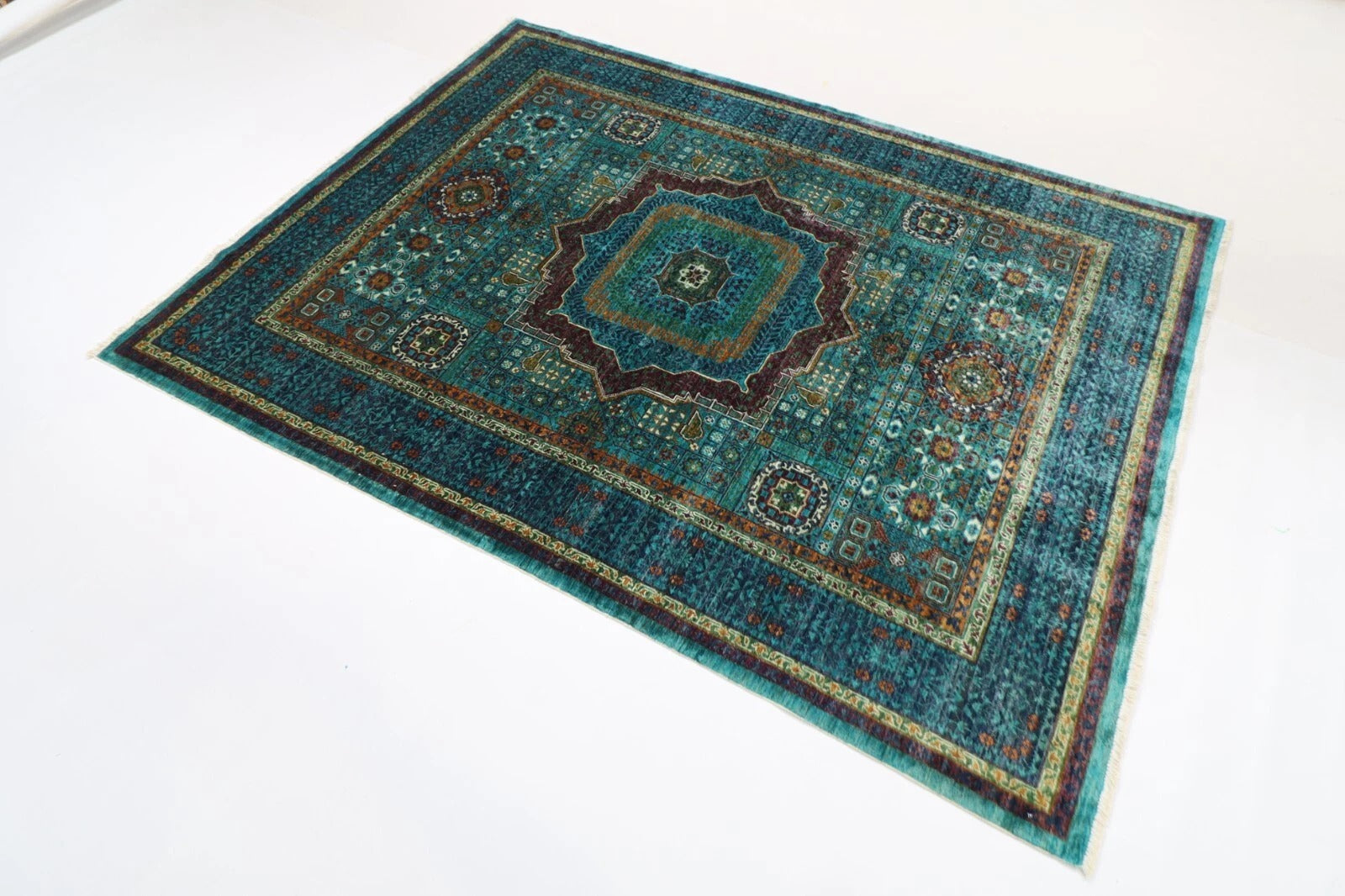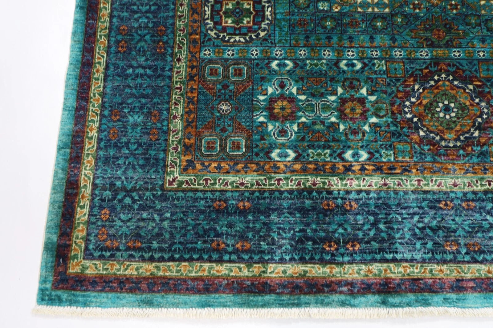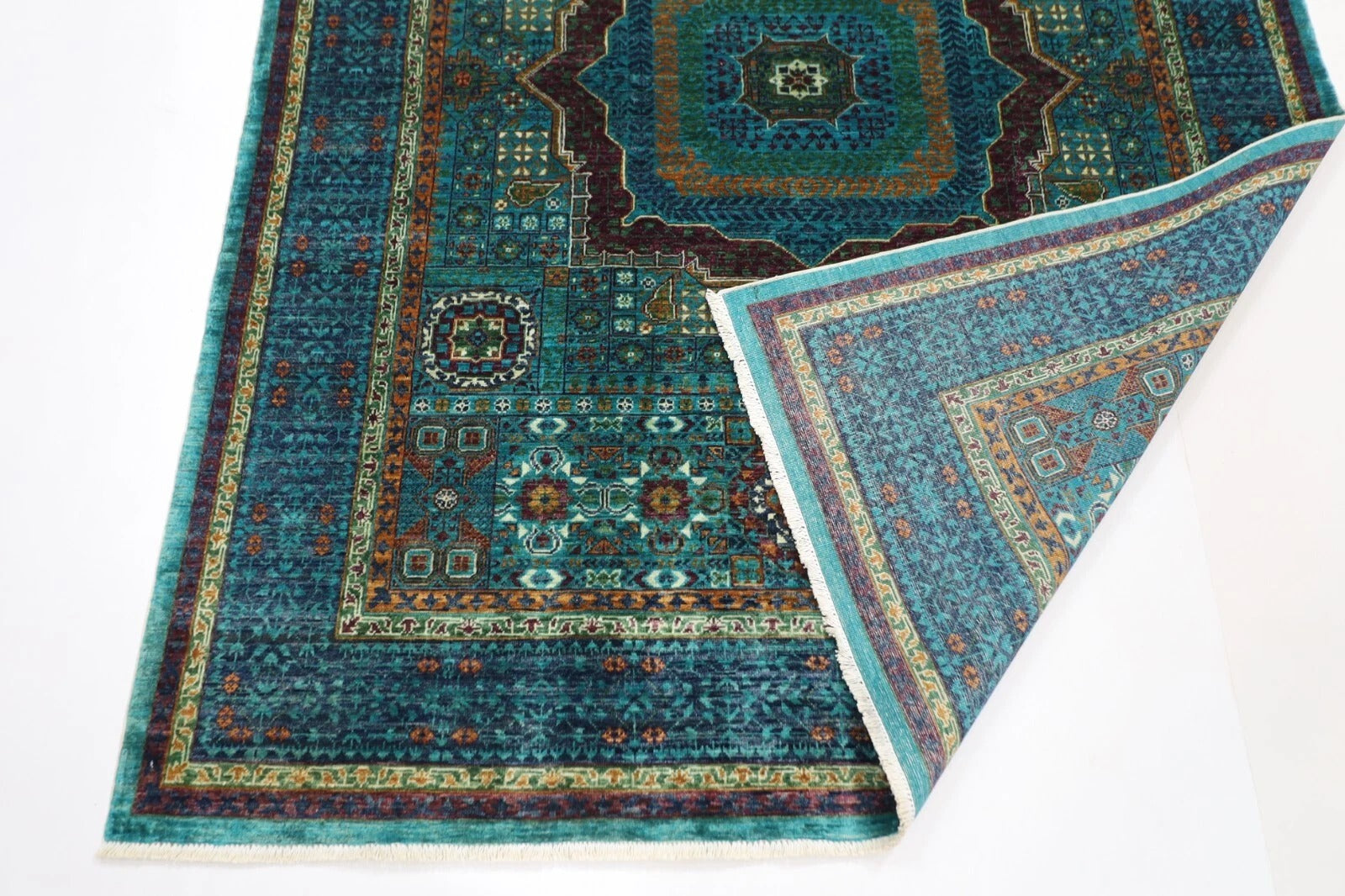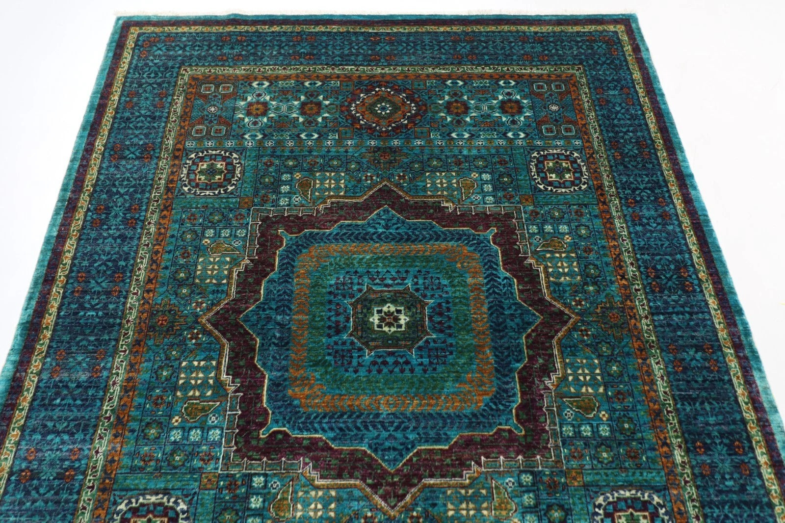 157 x 206 cm | Mamluk Turquoise Afghan Tribal Hand Knotted Veg Dye Wool carpet