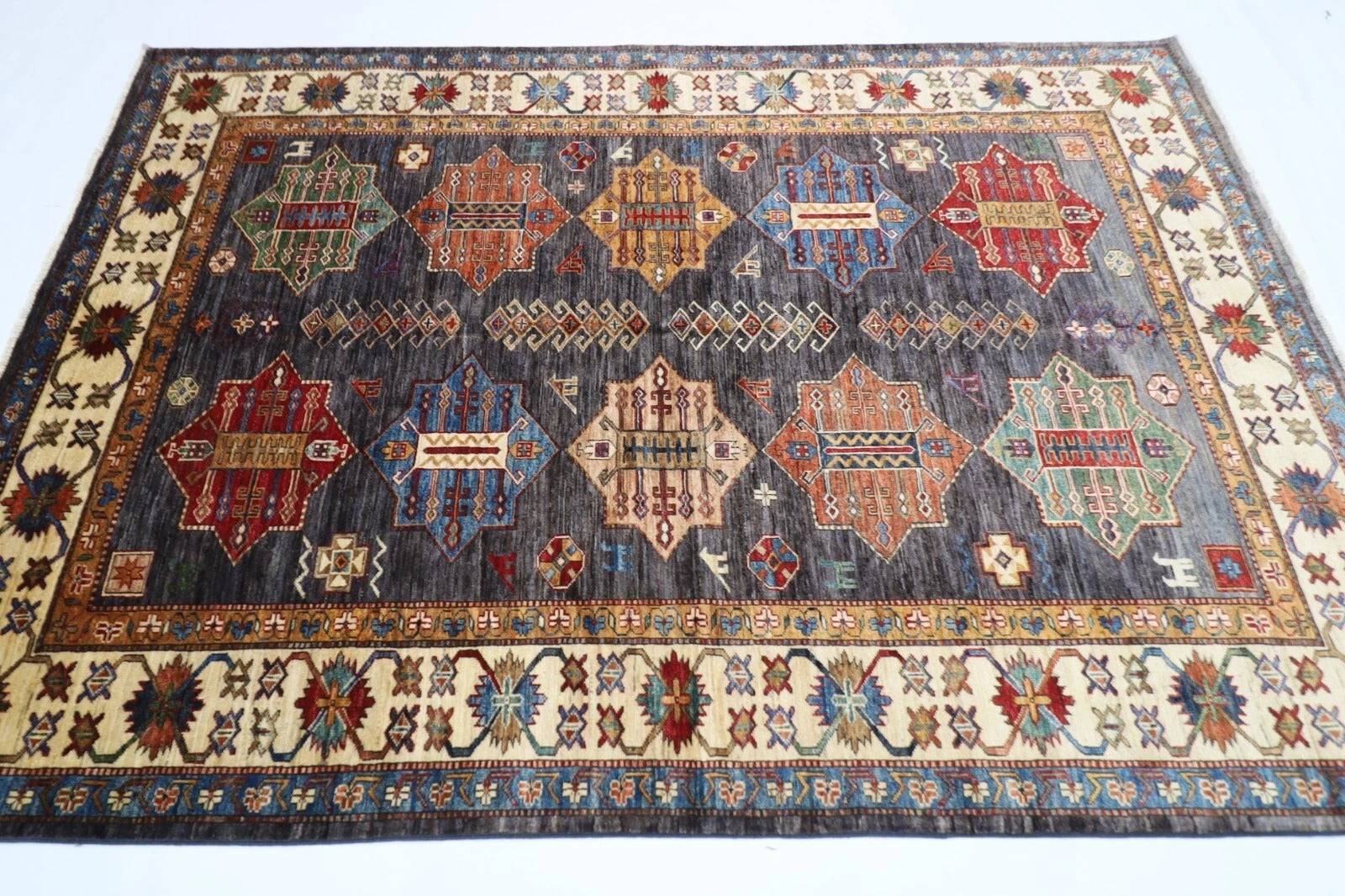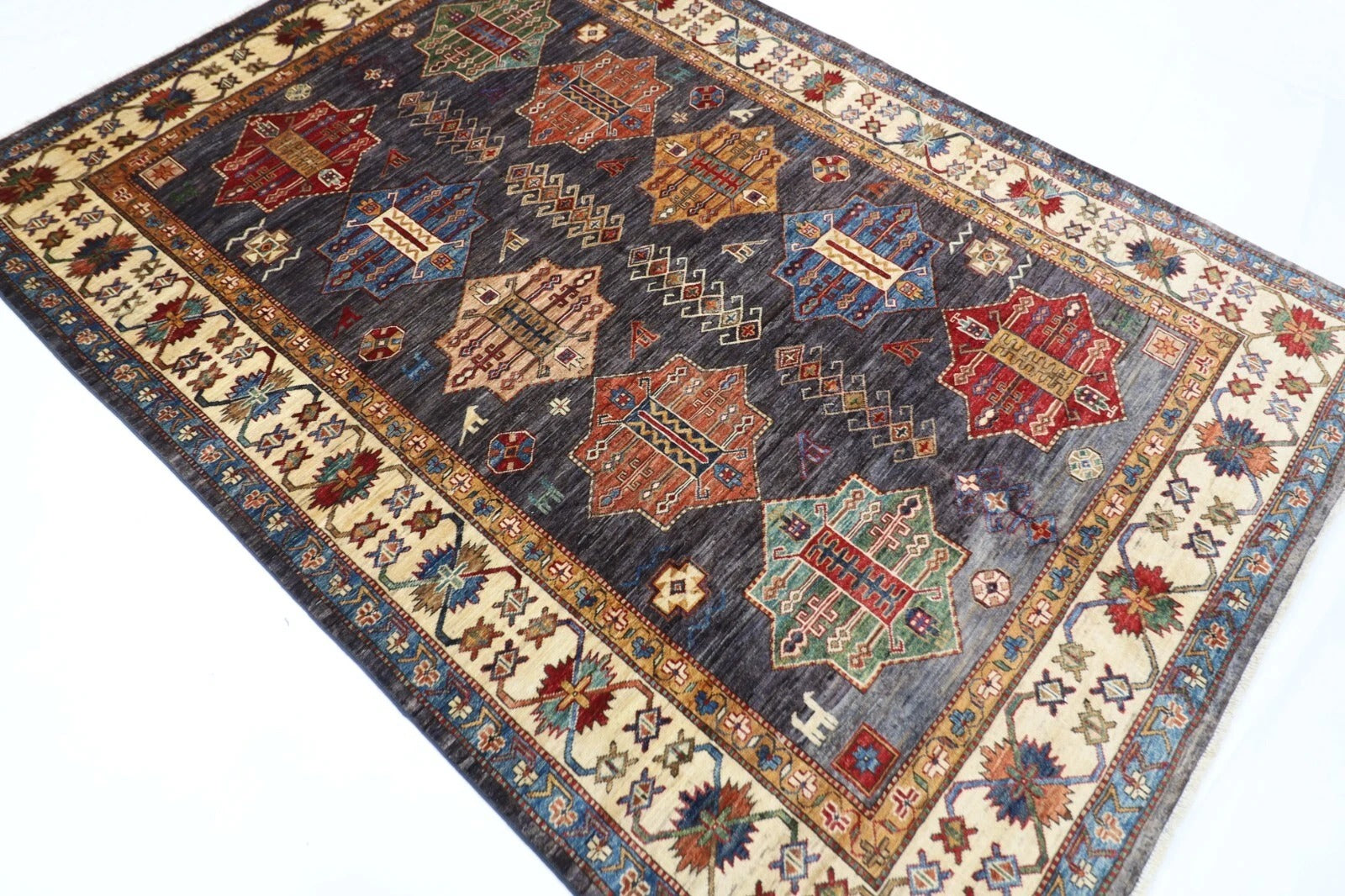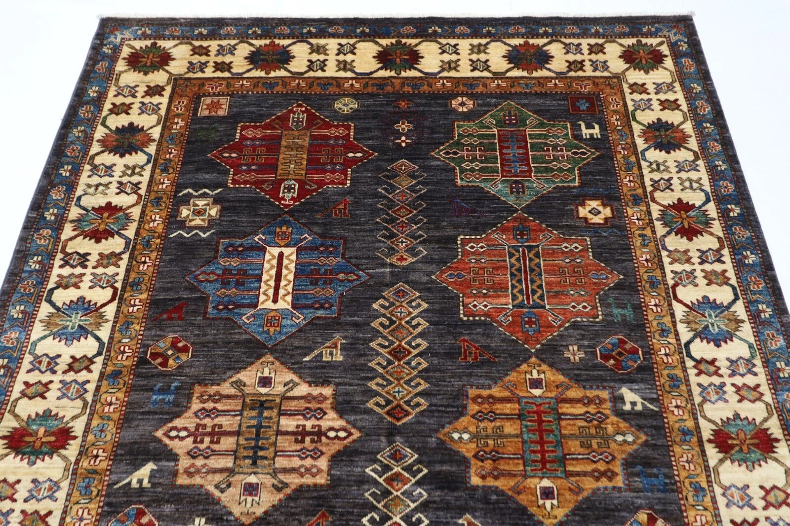168 x 241 cm | Kazak Afghan Tribal Hand Knotted Veg Dye Wool Carpet