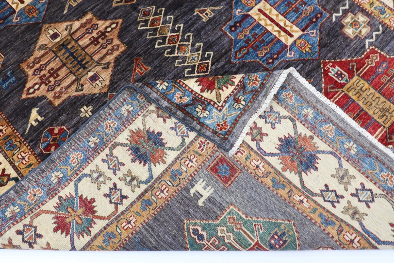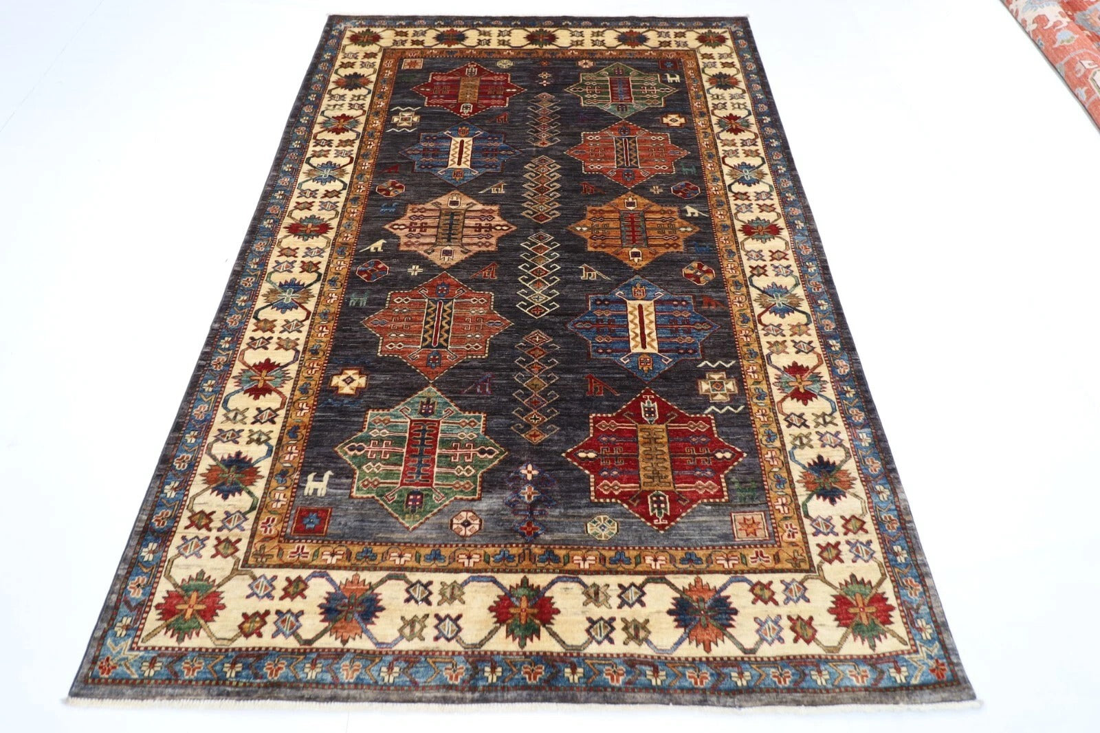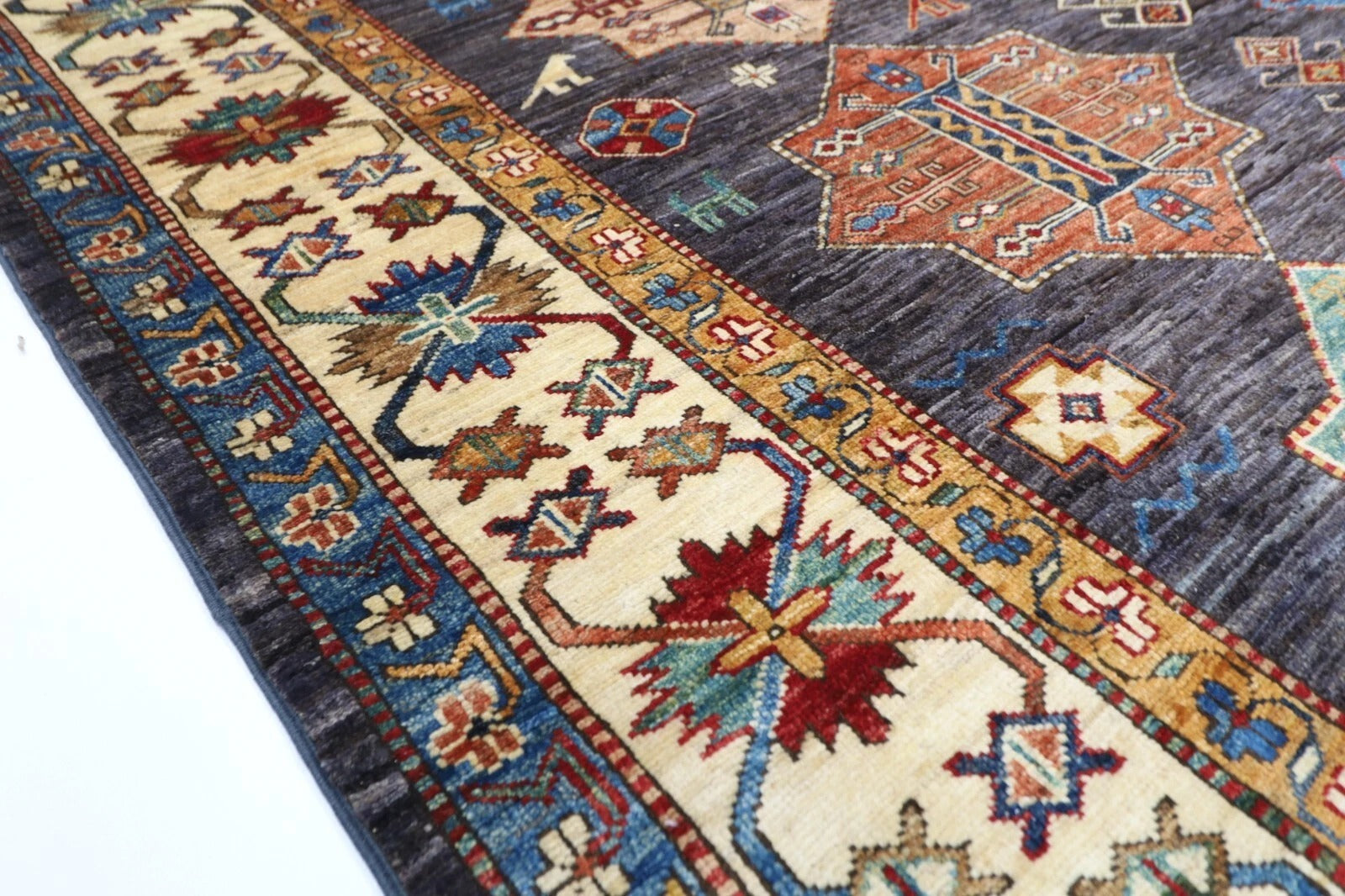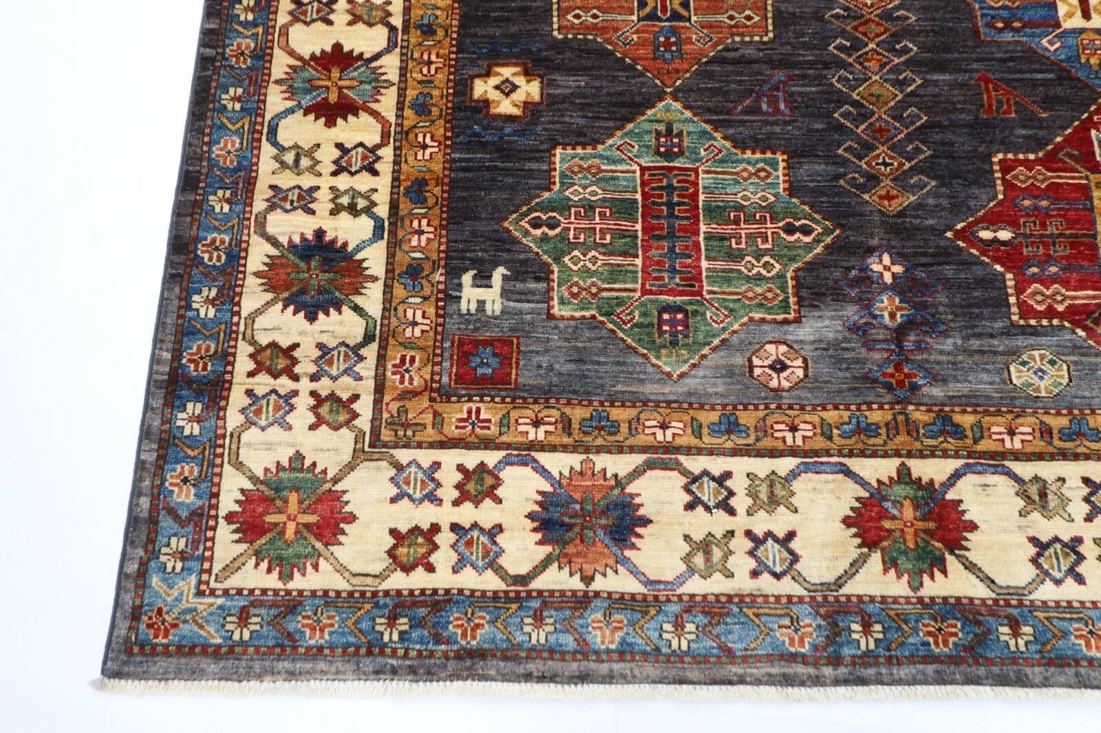 168 x 241 cm | Kazak Afghan Tribal Hand Knotted Veg Dye Wool Carpet