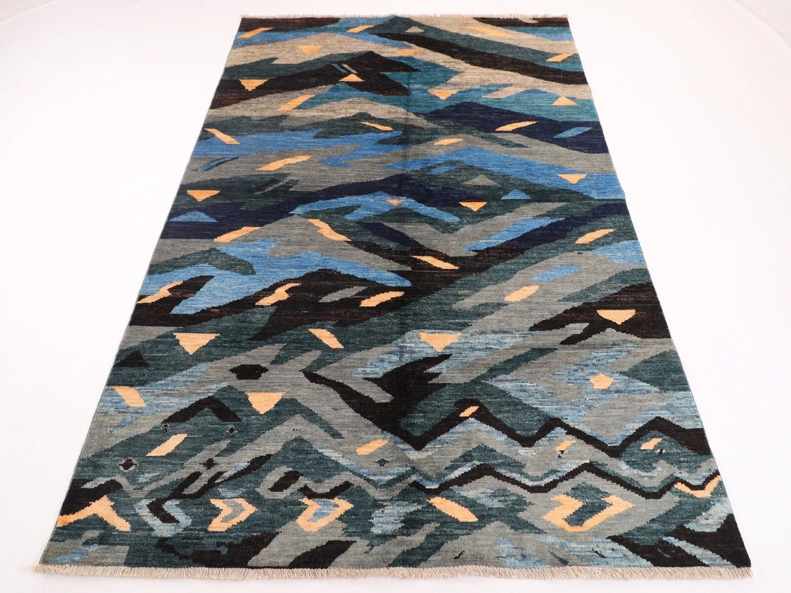 173 x 247 cm | Abstract Afghan Tribal Hand Knotted Veg Dye Wool Carpet