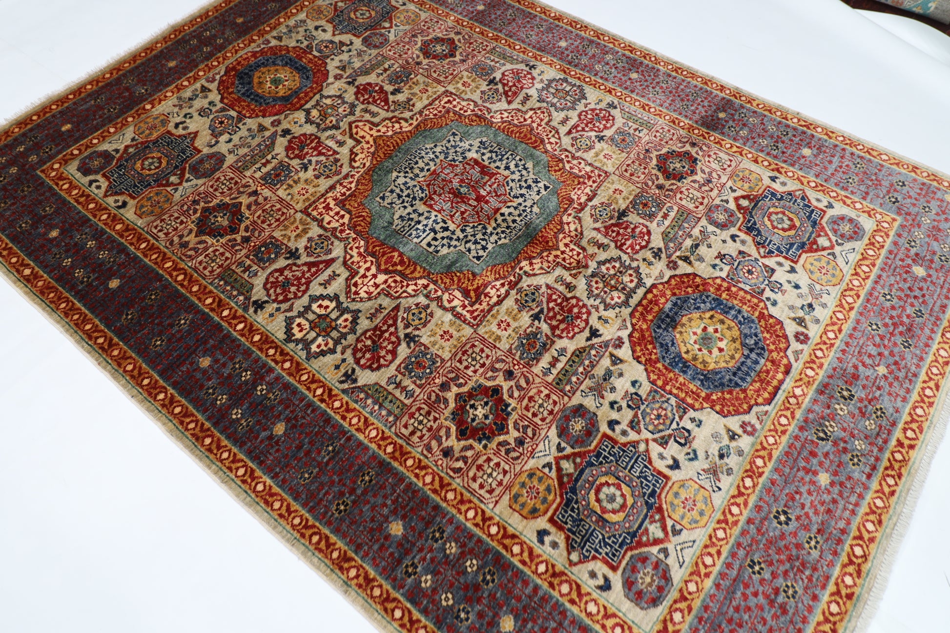 173 x 238 cm | Mamluk Afghan Tribal Hand Knotted Veg Dye Wool Carpet