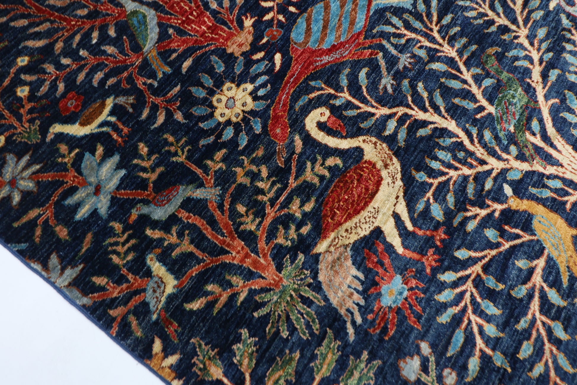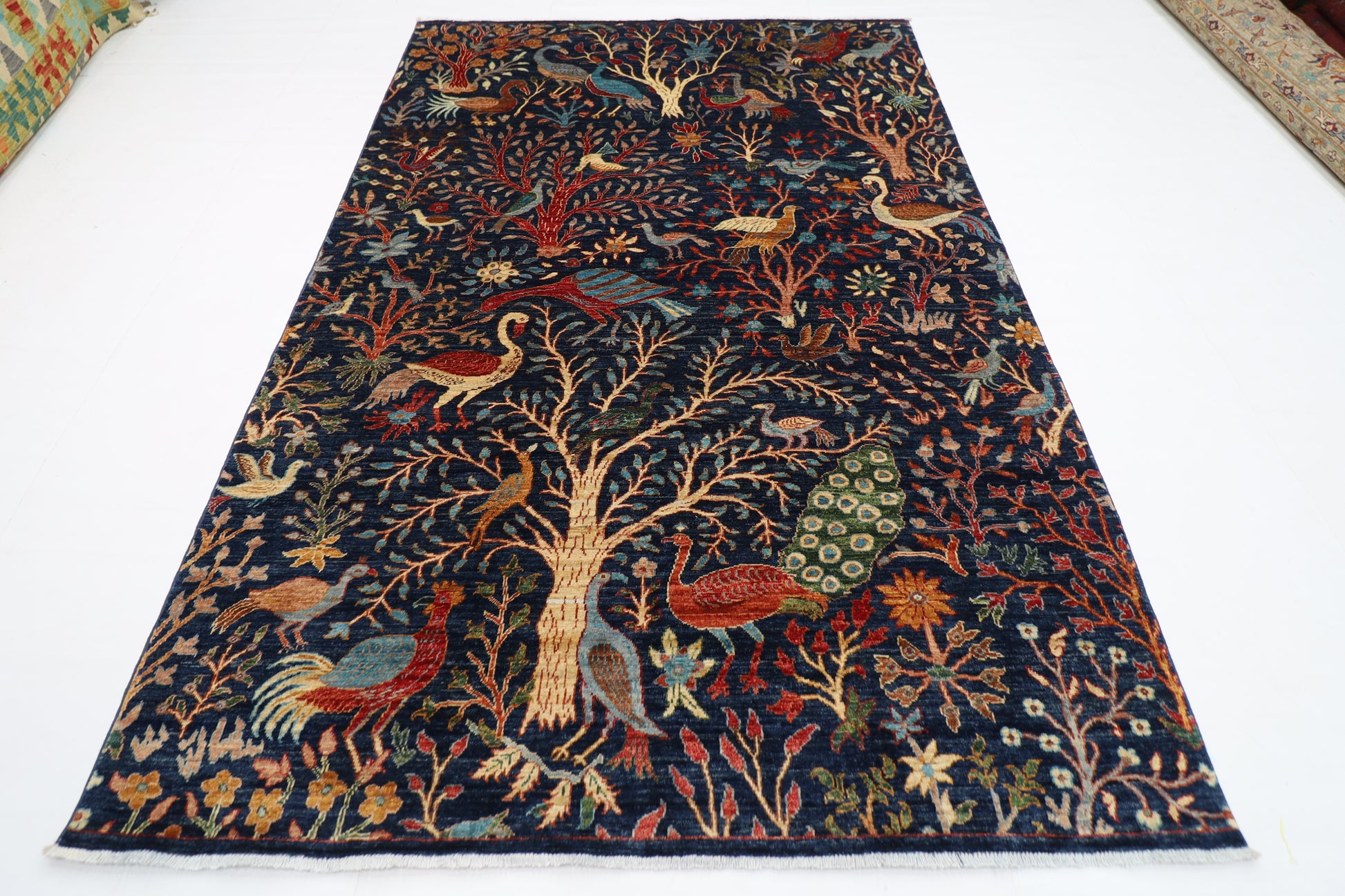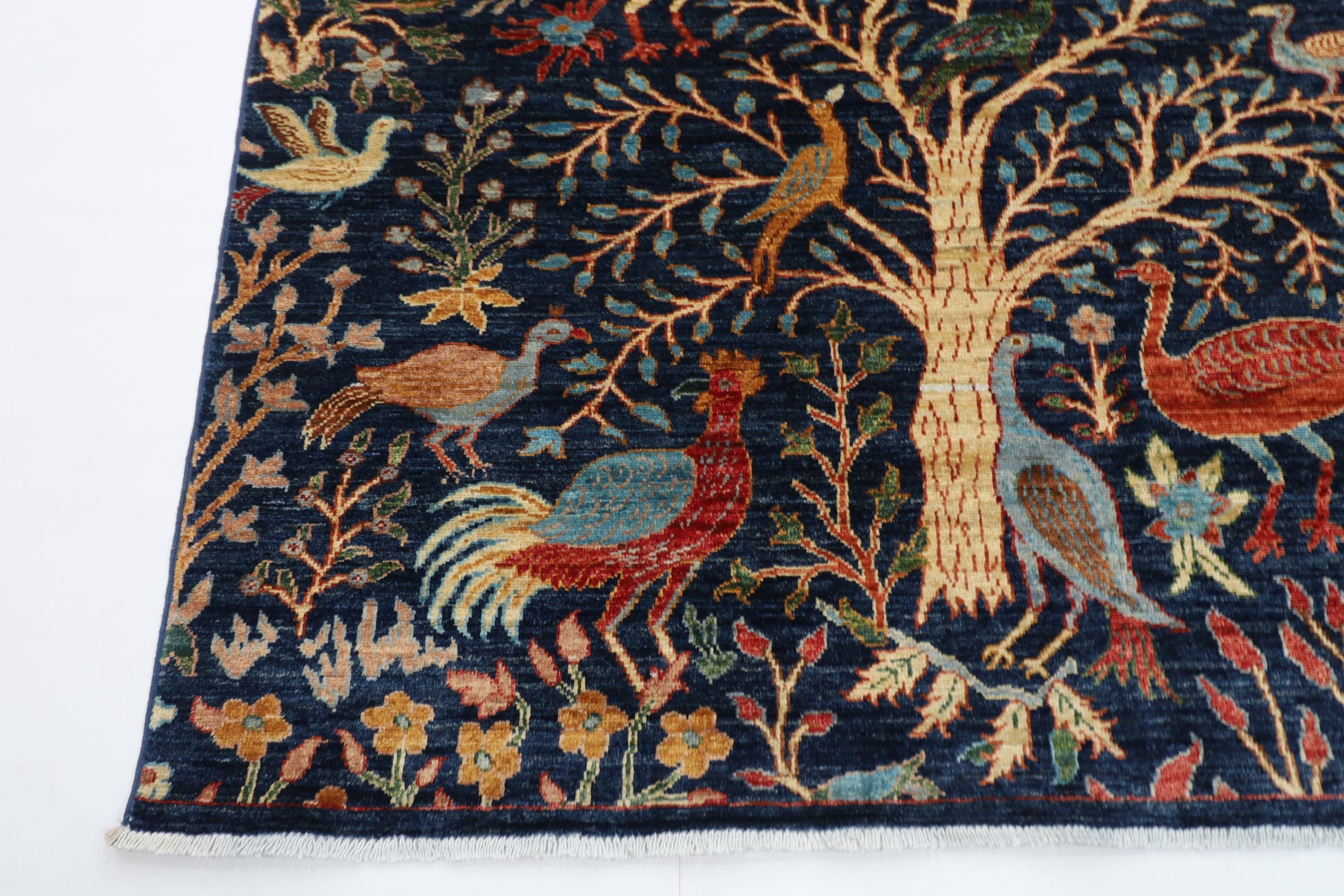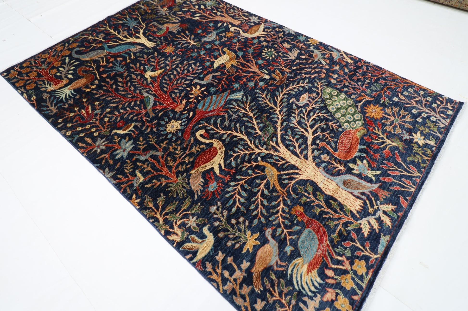 185 x 272 cm | Birds Navy Blue Afghan Hand Knotted Carpet