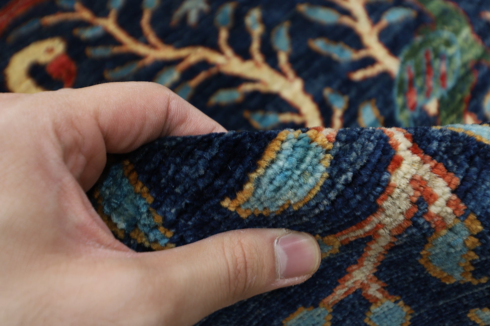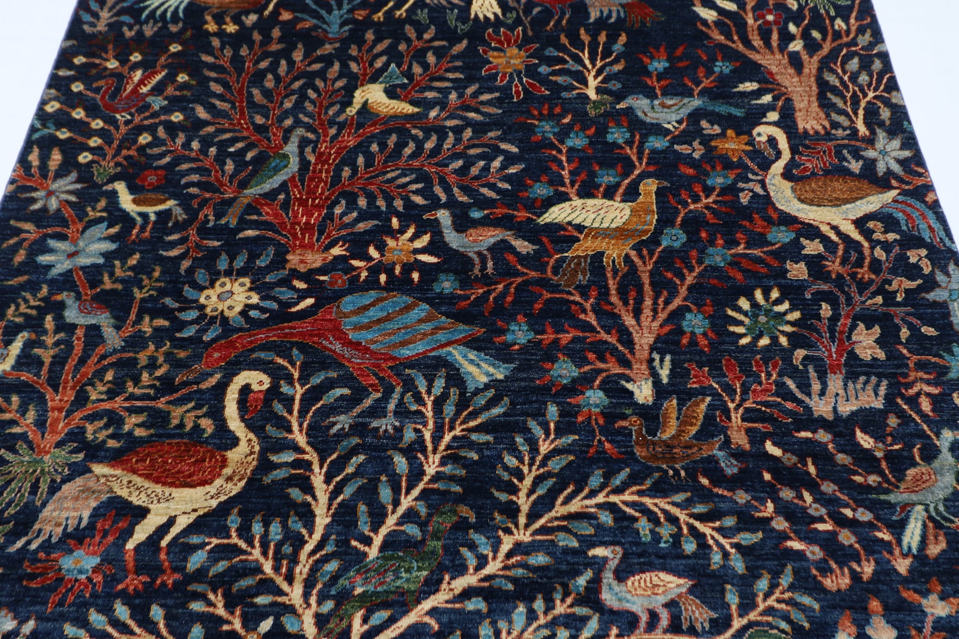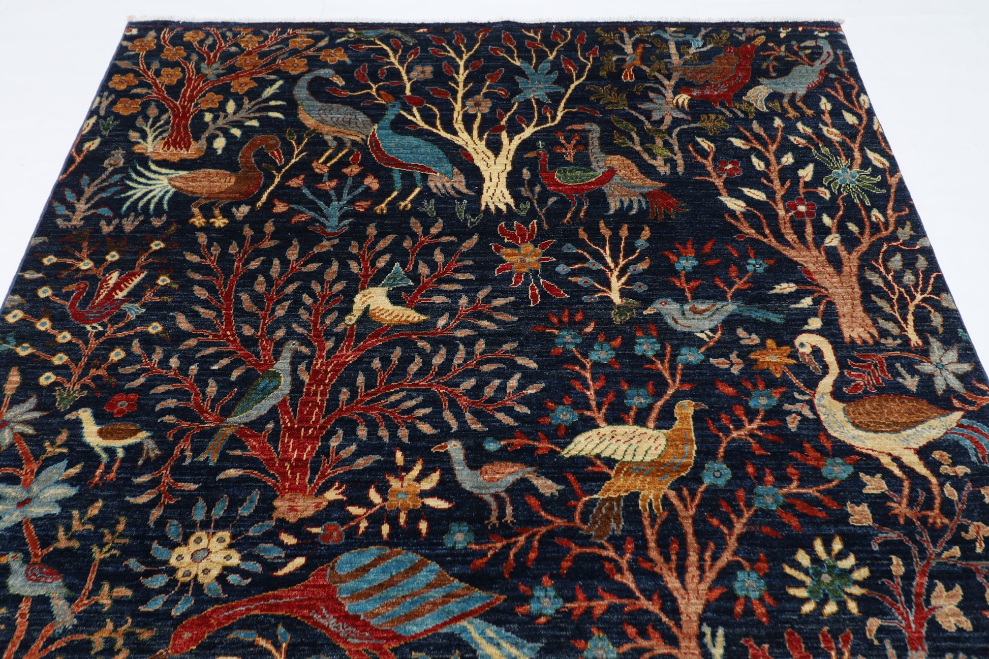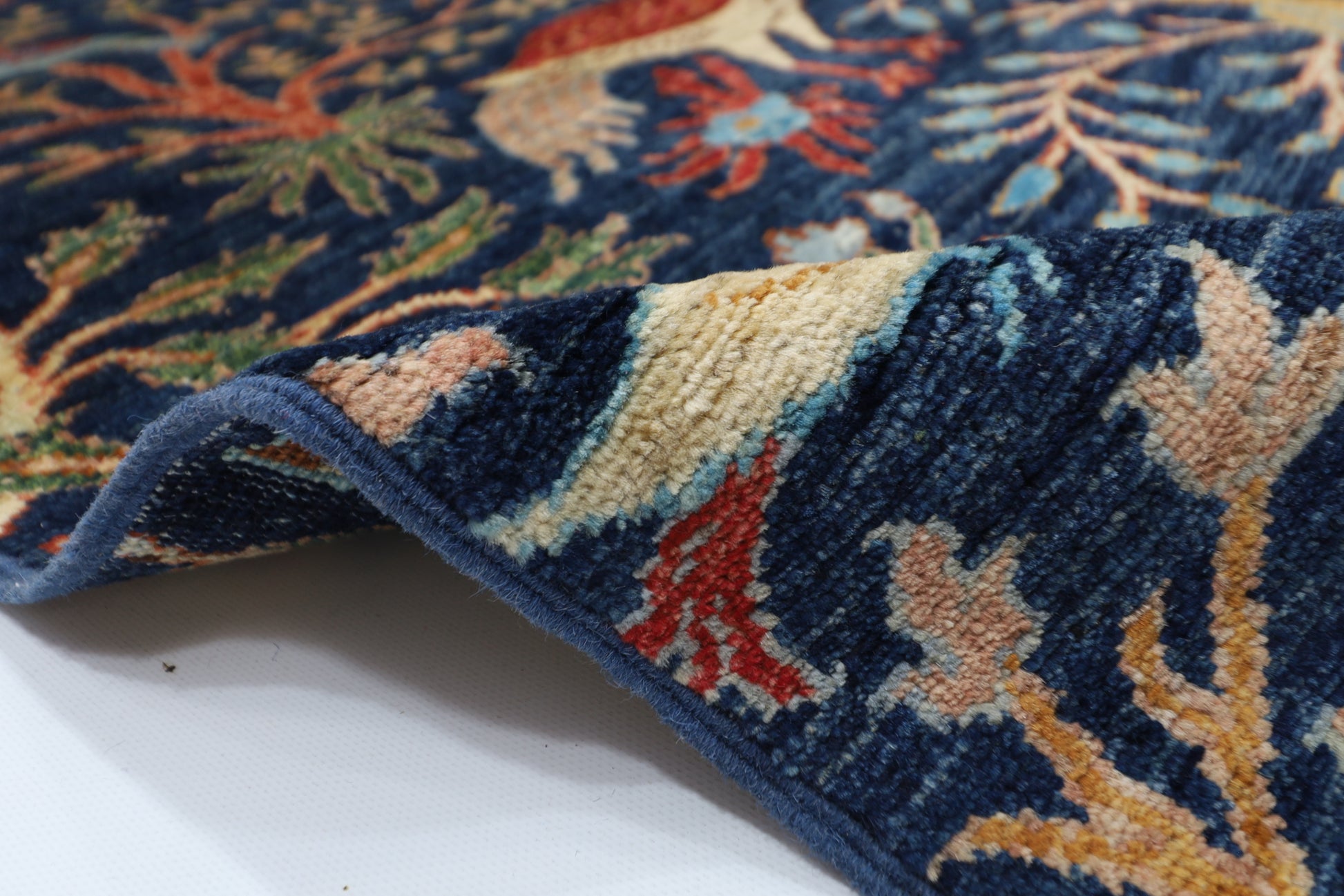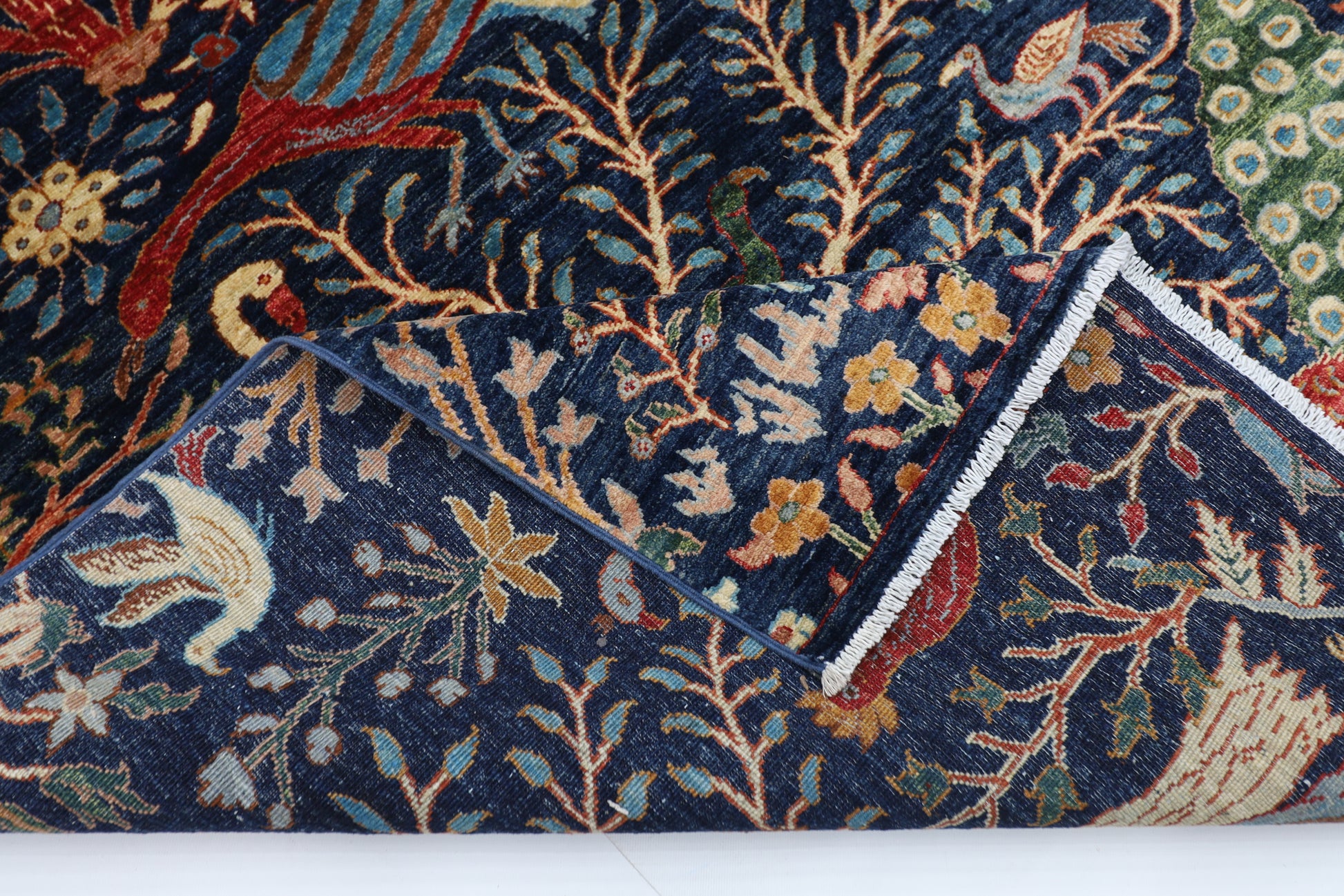 185 x 272 cm | Birds Navy Blue Afghan Hand Knotted Carpet