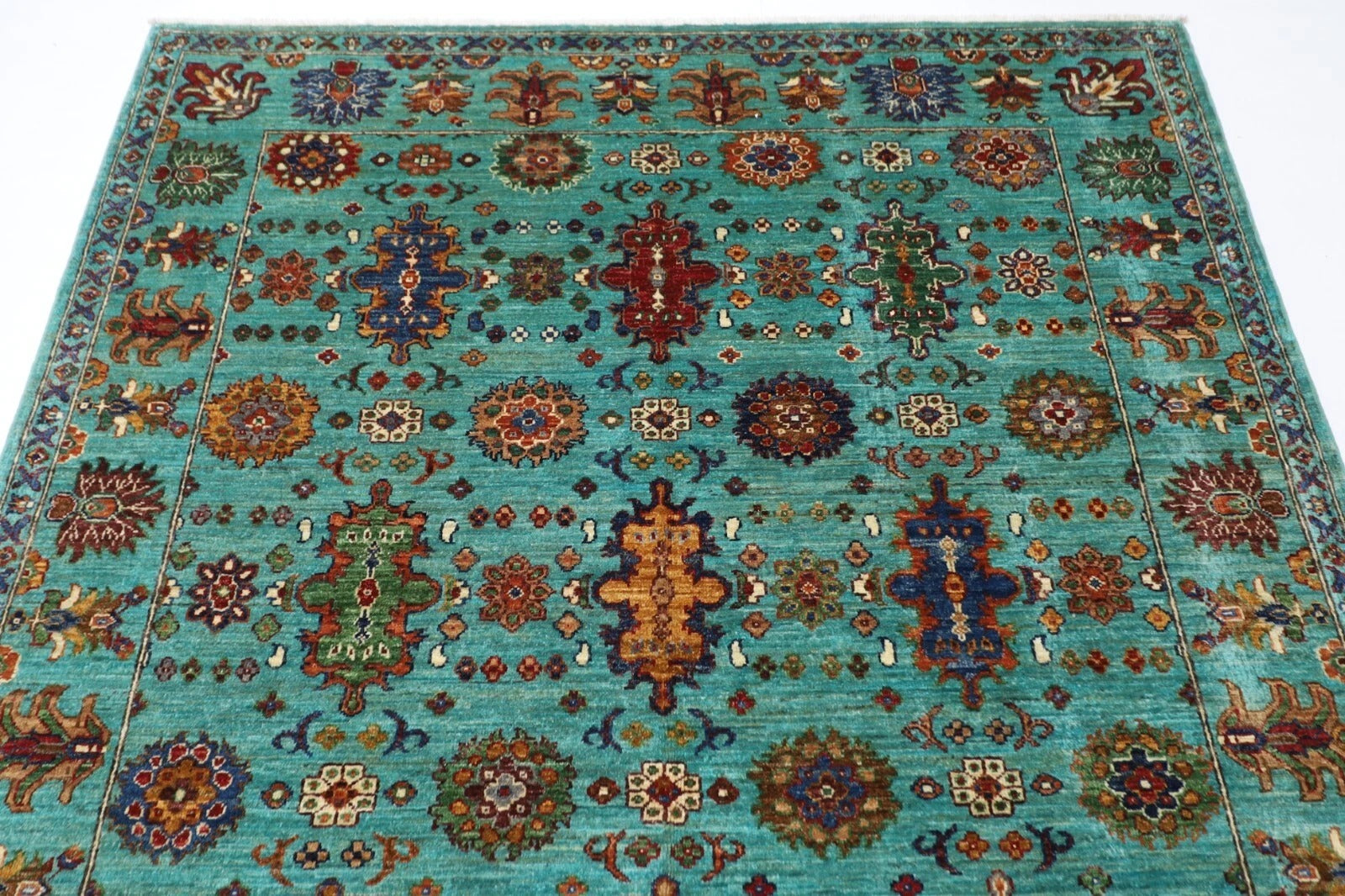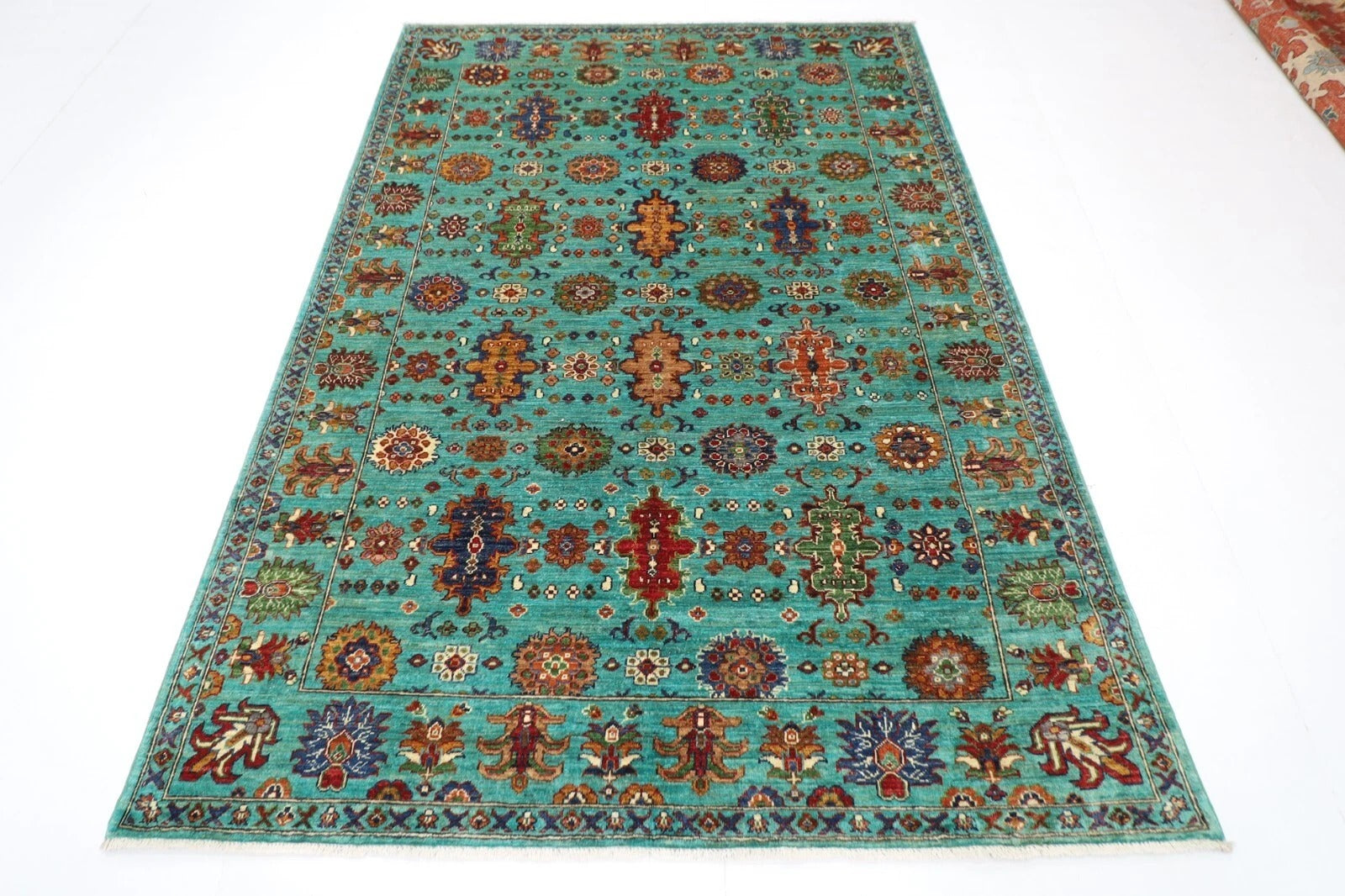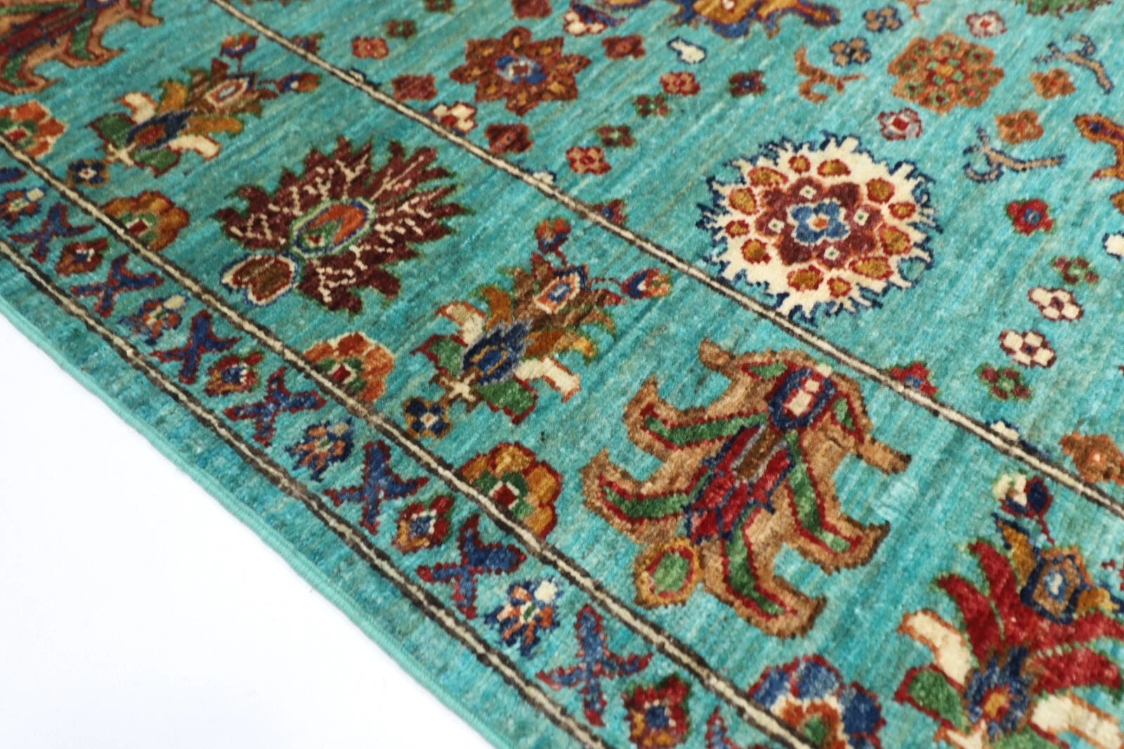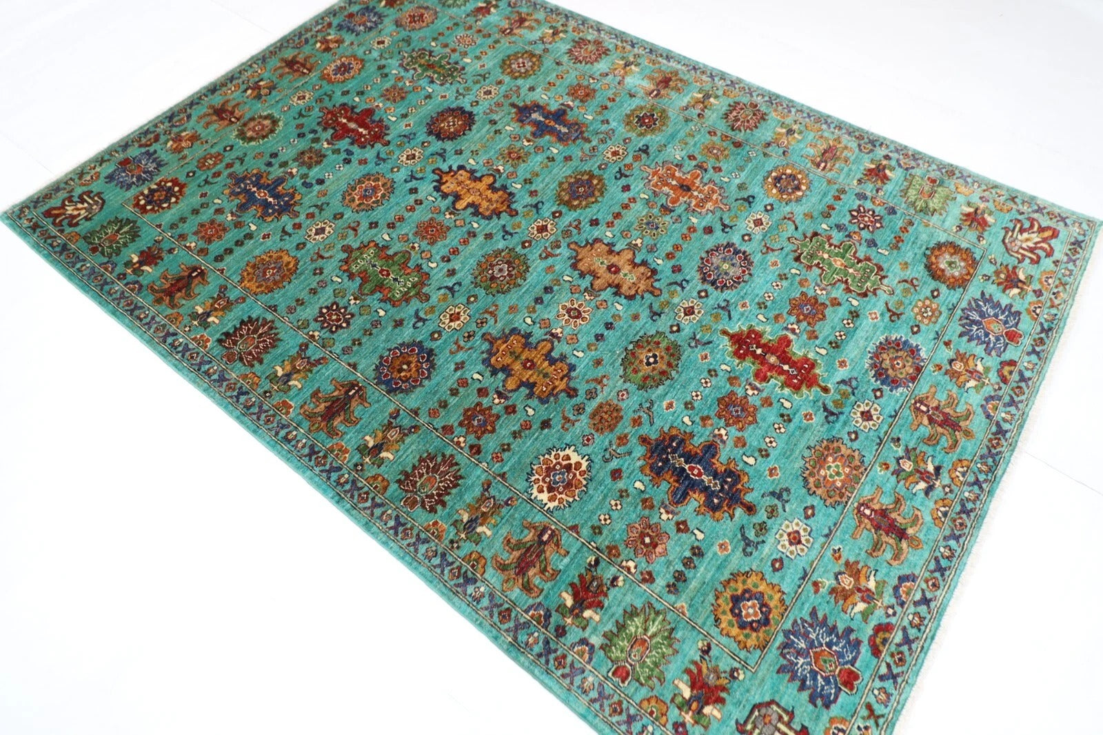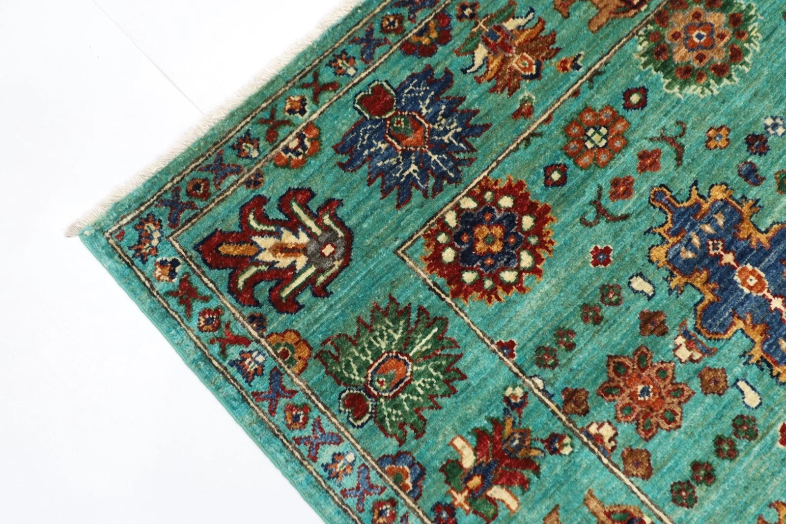 172 x 241 cm | Turquoise Afghan Tribal Hand Knotted Veg Dye Wool Carpet