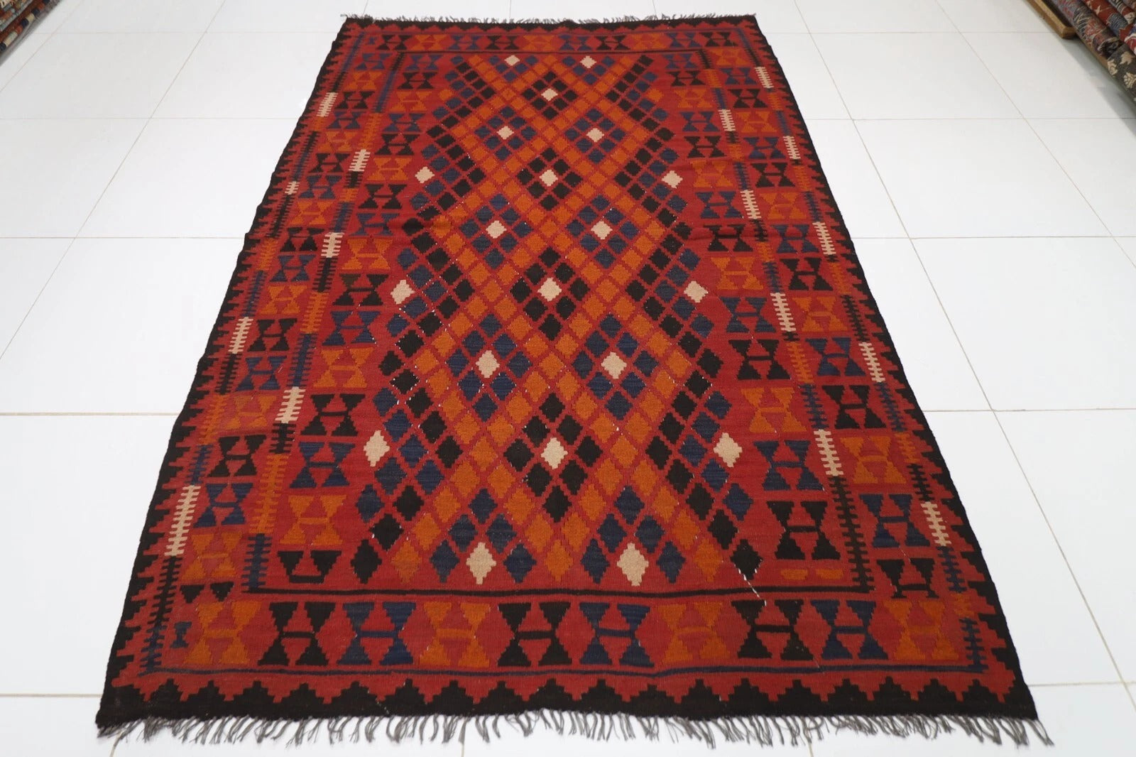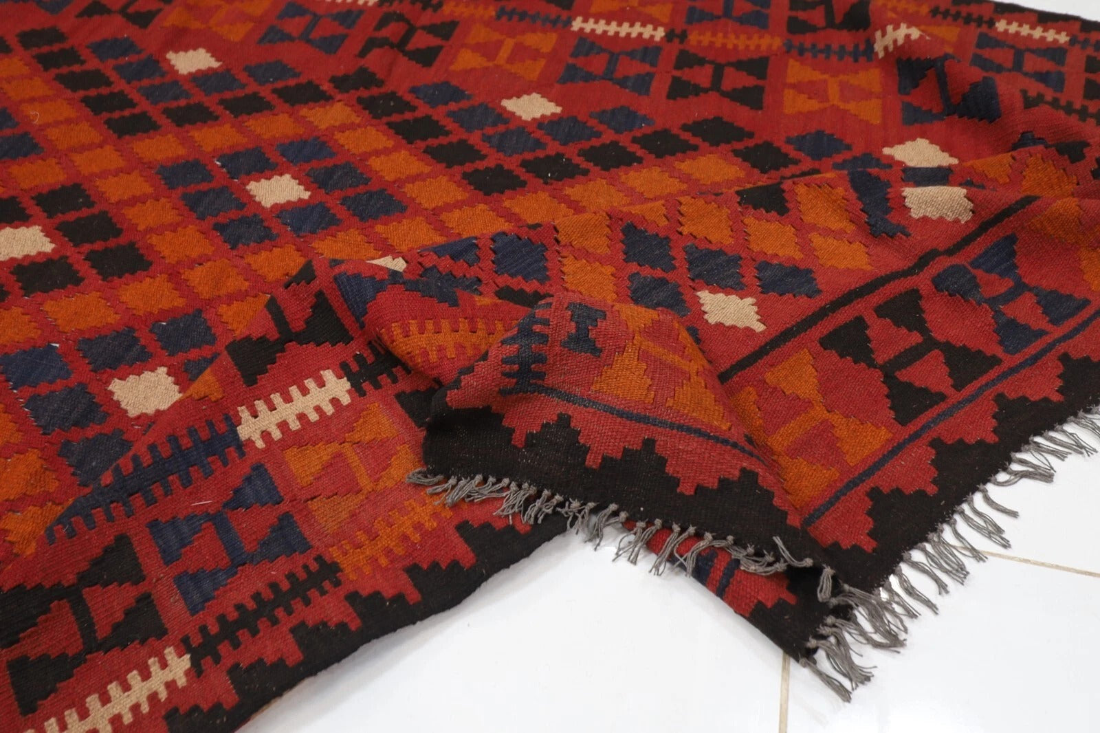 176 x 252 cm | Flat Weaved Afghan Tribal Hand Knotted Veg Dye Wool Carpet