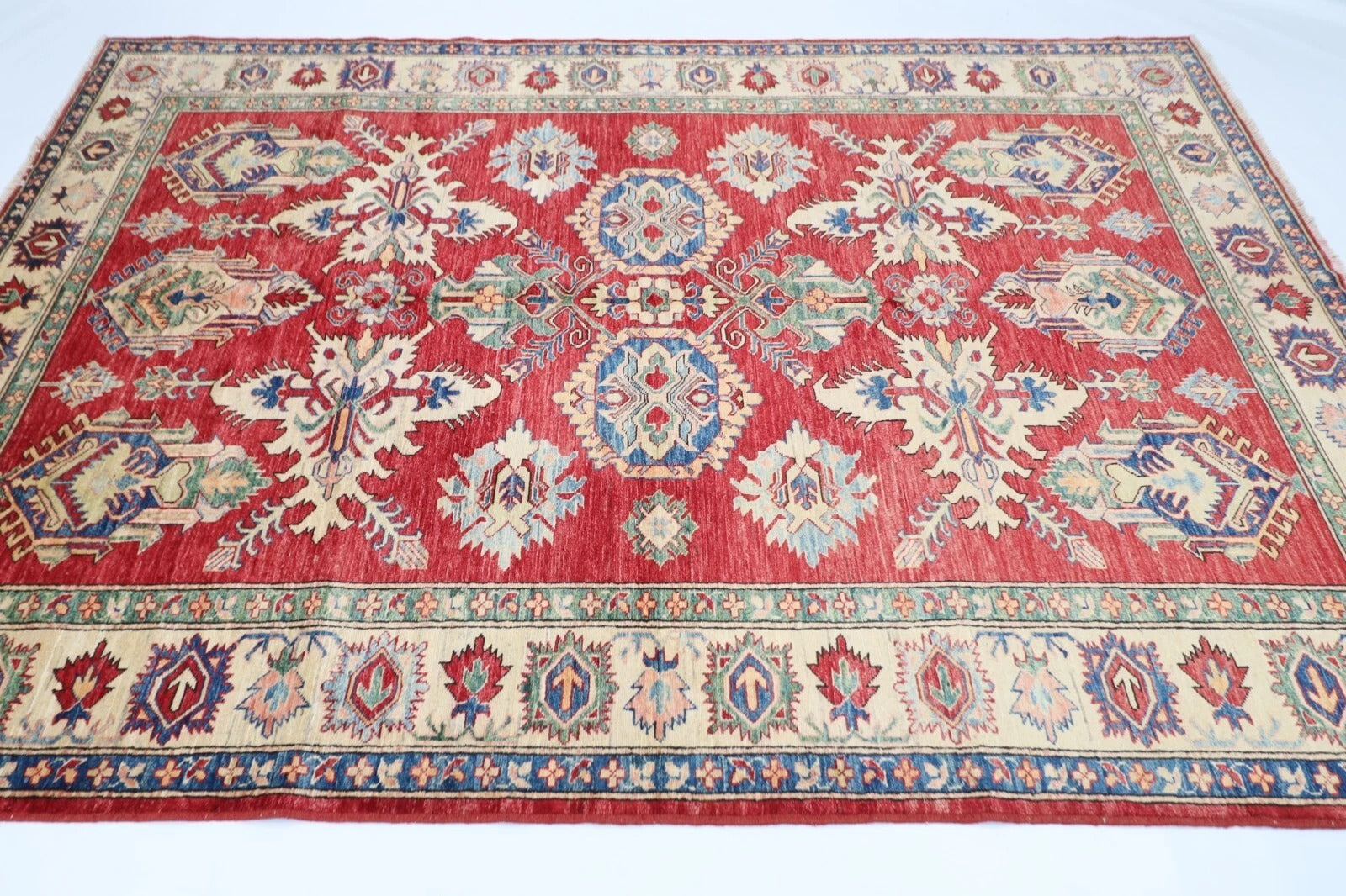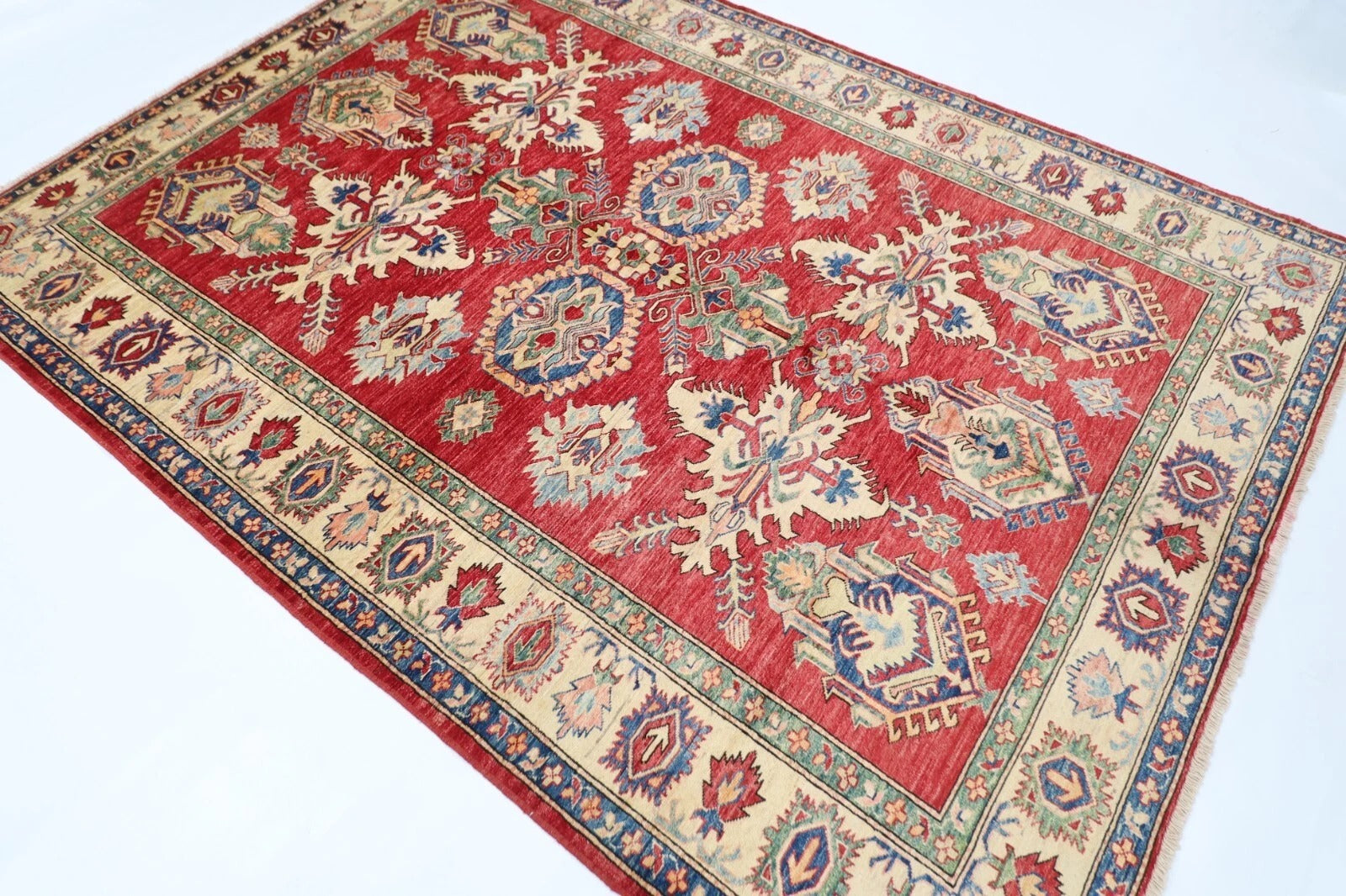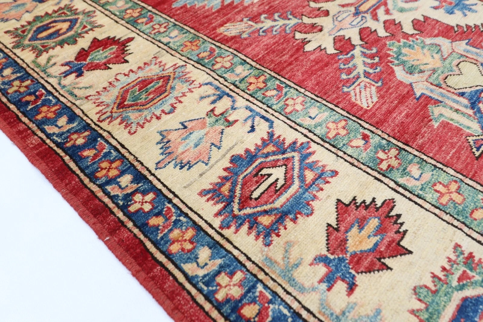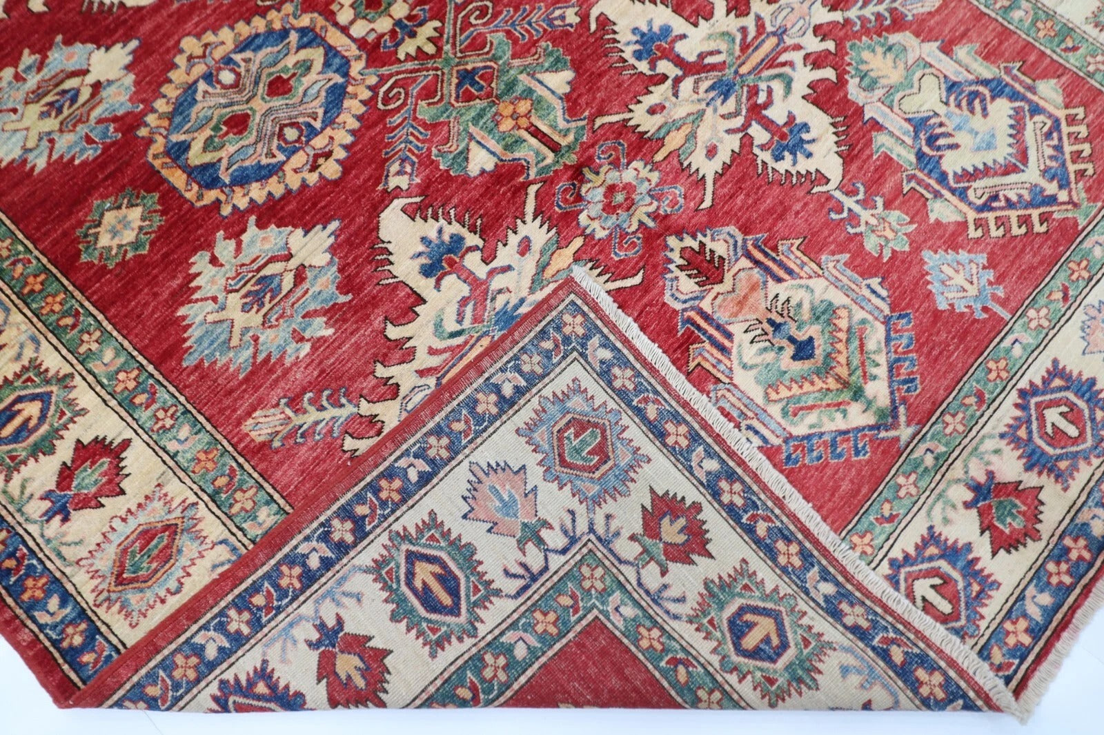 183 x 248 cm | Kazak Afghan Tribal Hand Knotted Veg Dye Wool Carpet