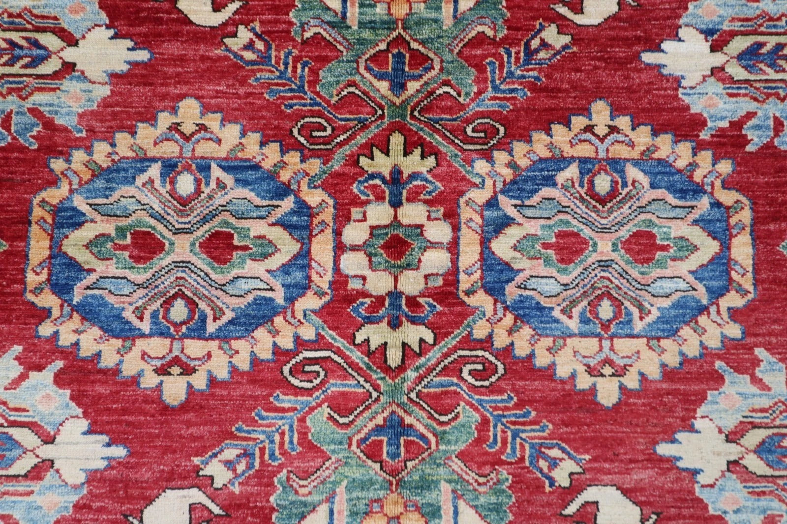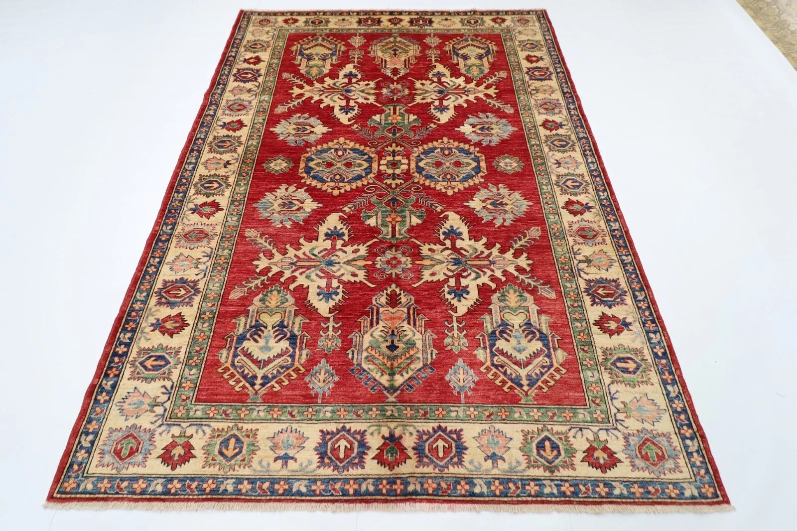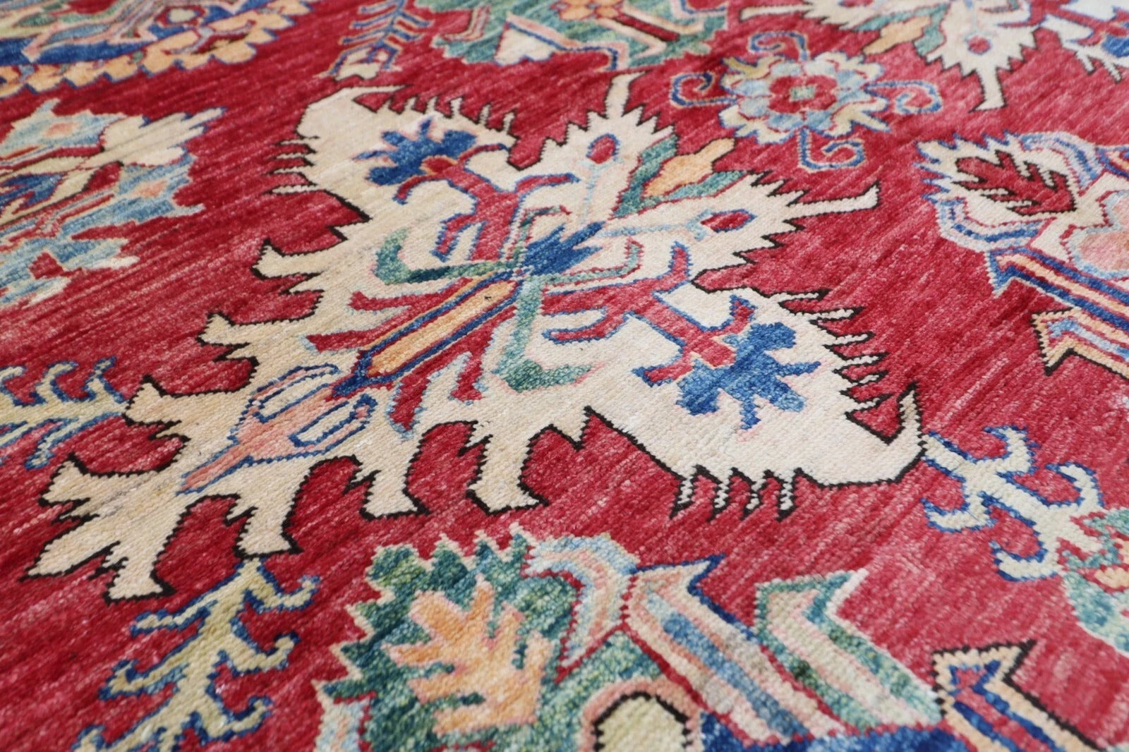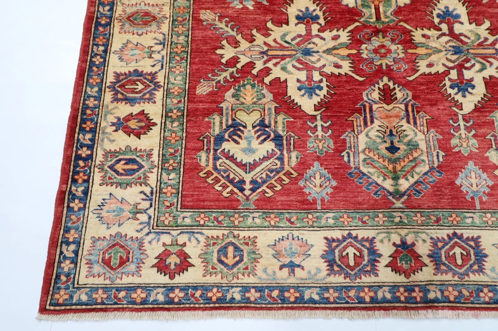 183 x 248 cm | Kazak Afghan Tribal Hand Knotted Veg Dye Wool Carpet