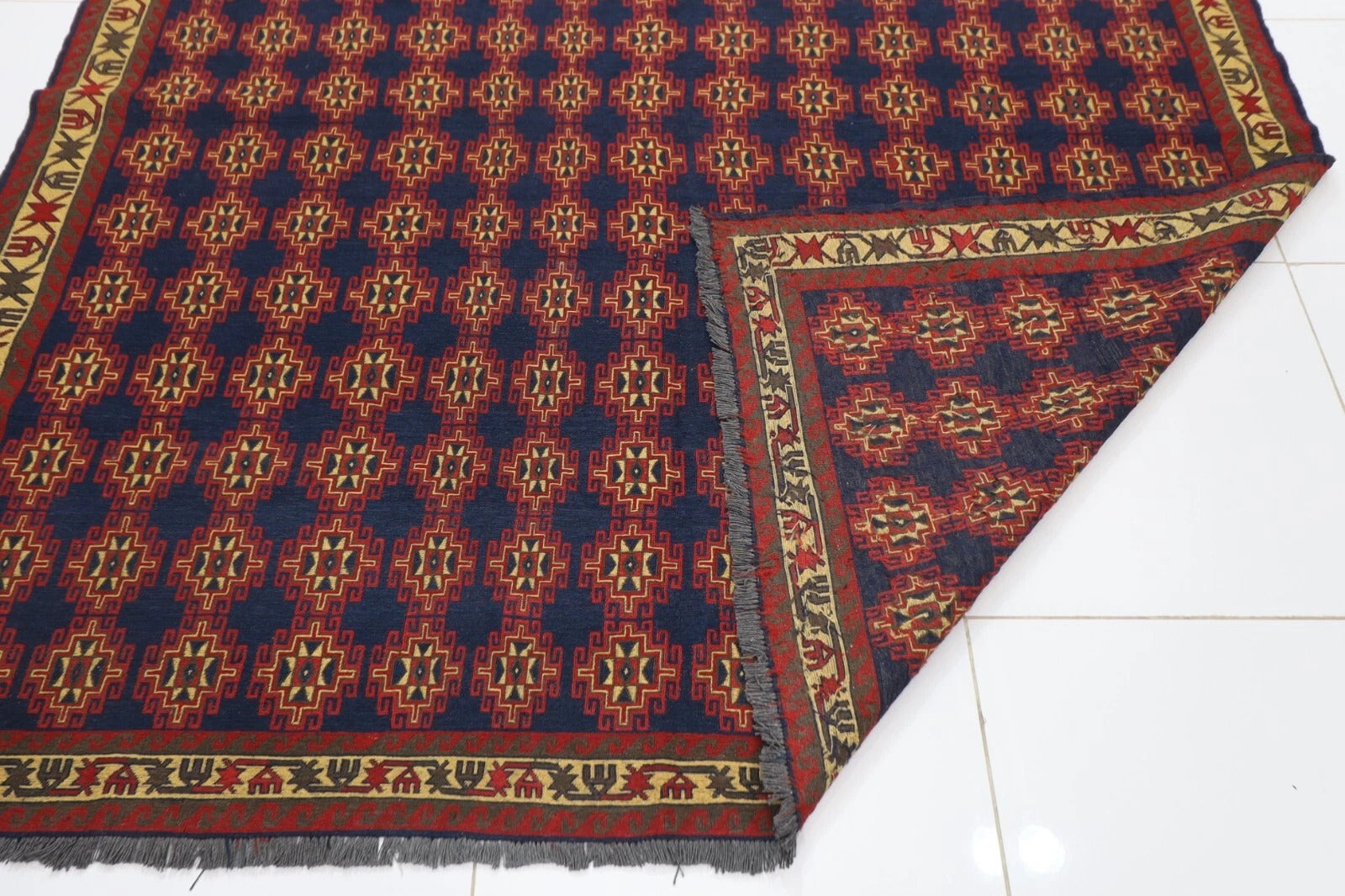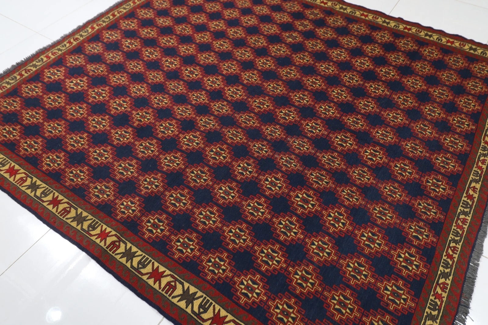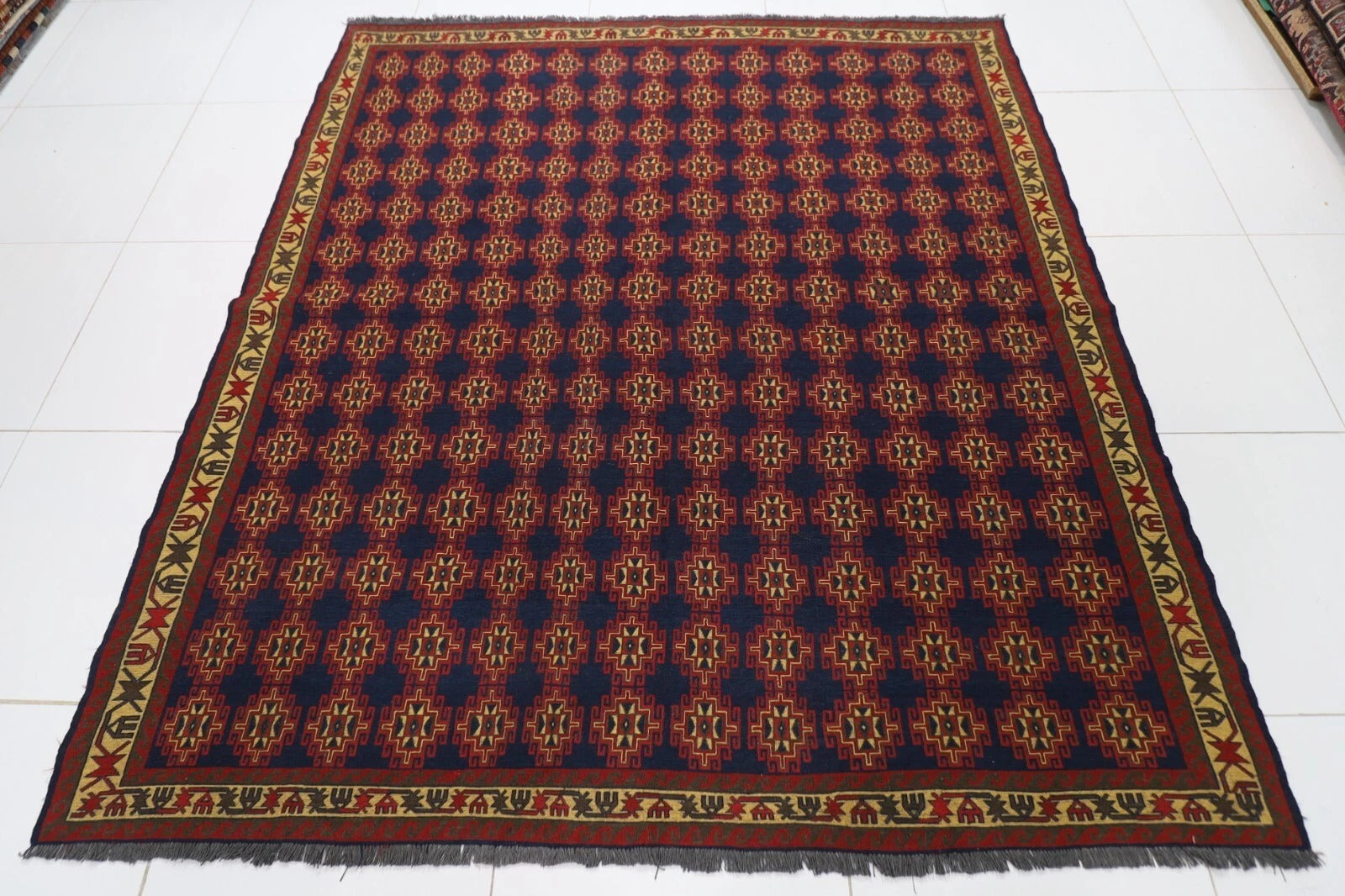 222 x 244 cm | Sumak Flat Weave Afghan Tribal Hand Knotted Veg Dye Wool Carpet