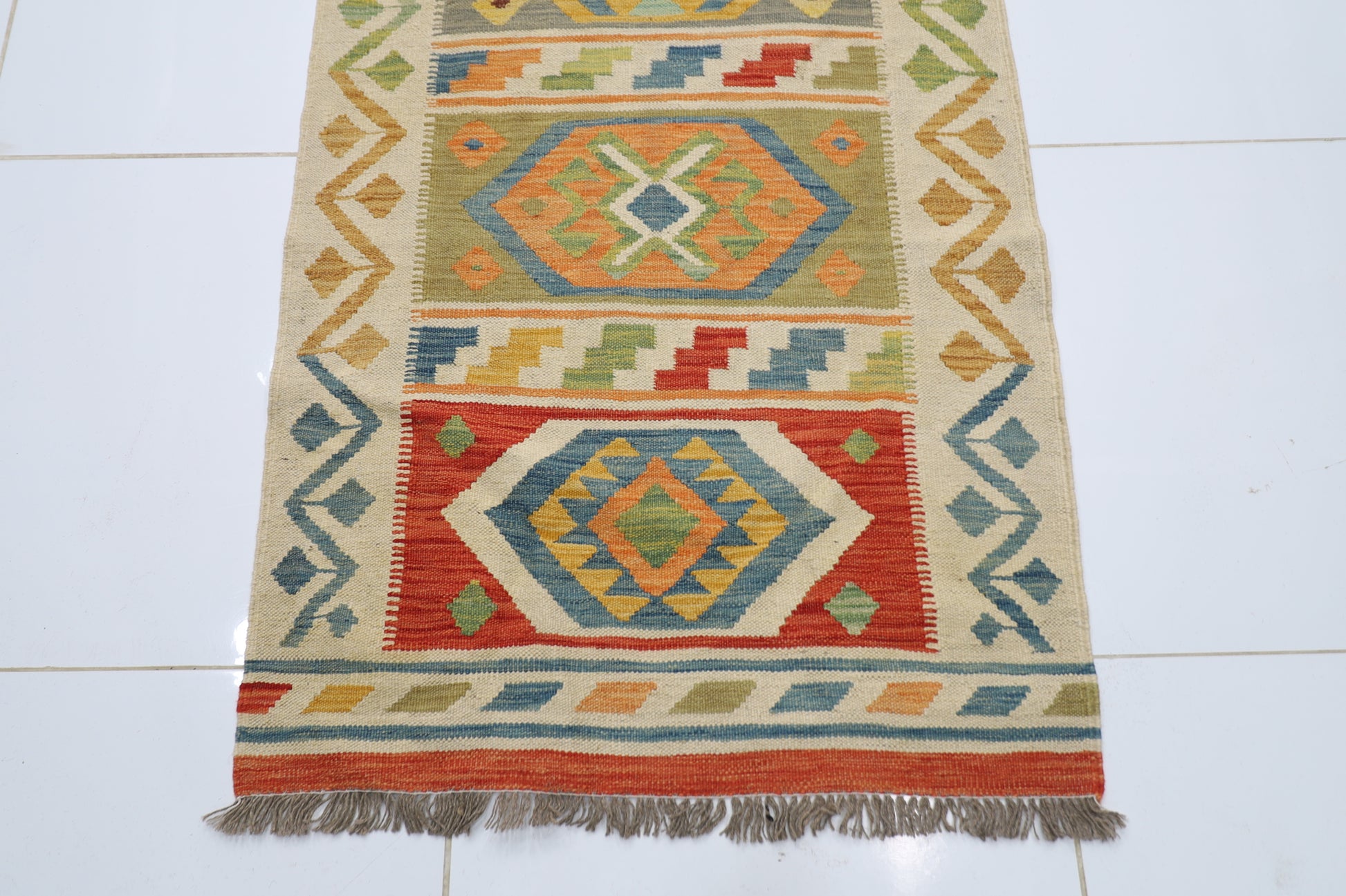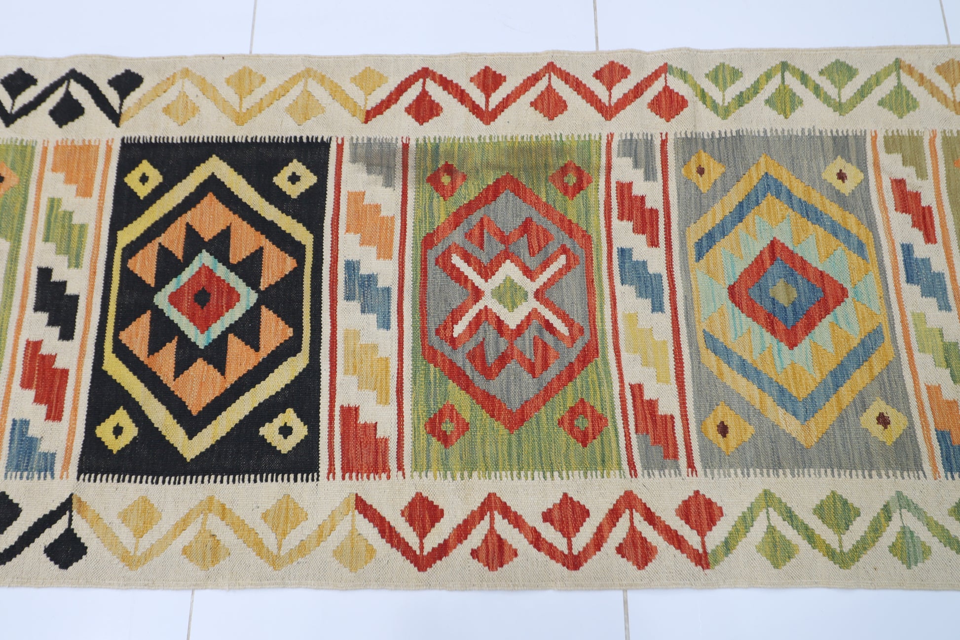 86 x 313 cm | Multicolor Wool Kilim Runner Traditional Hand Woven Oriental Carpet