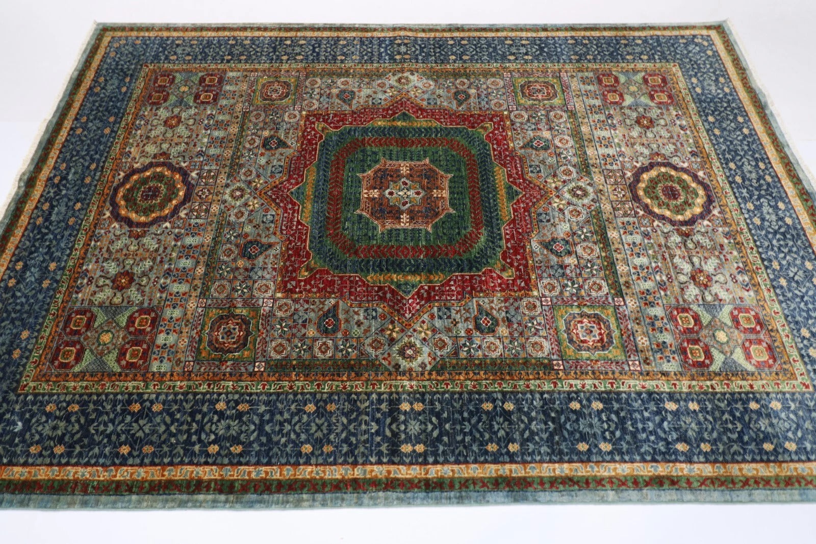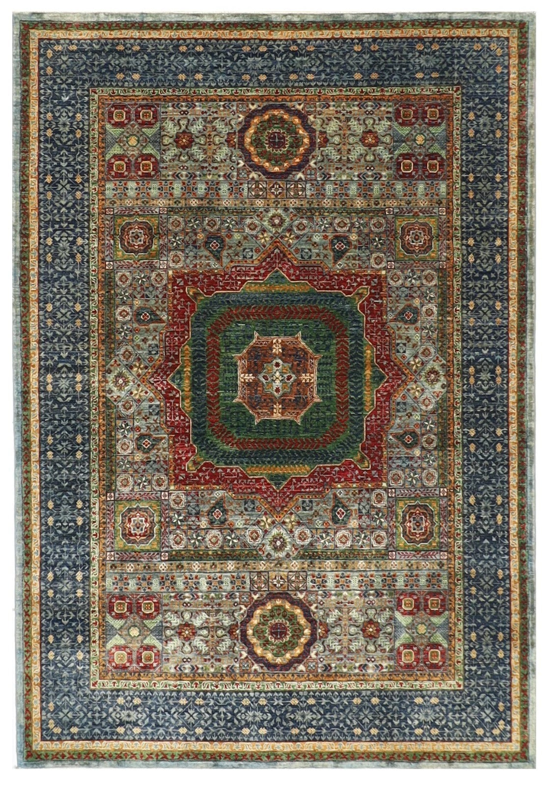174 x 246 cm | Mamluk Afghan Tribal Hand Knotted Veg Dye Wool Carpet