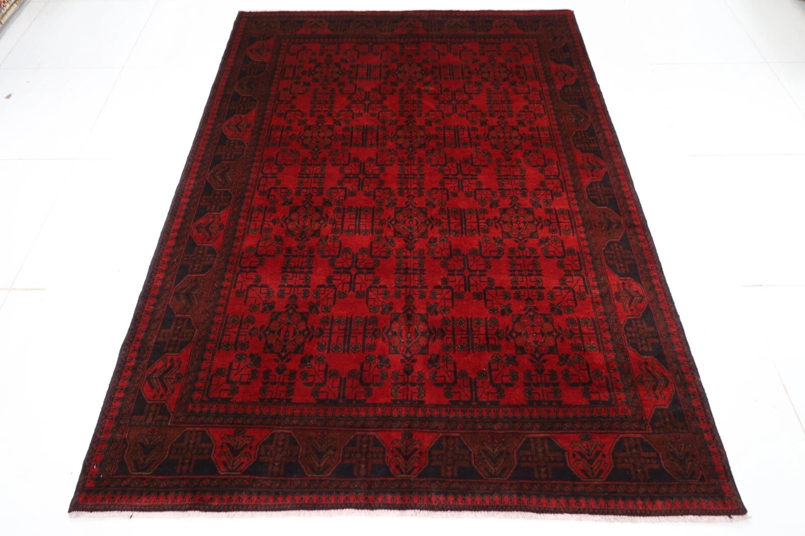 174 x 233 cm | Bokhara Afghan Tribal Hand Knotted Veg Dye Wool Carpet