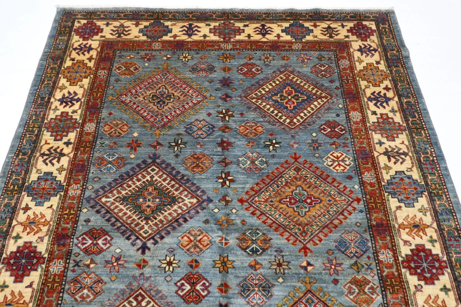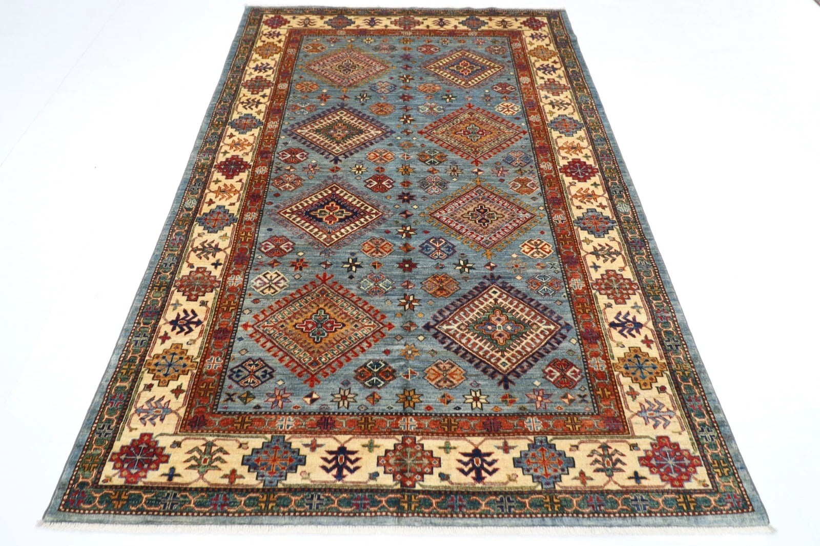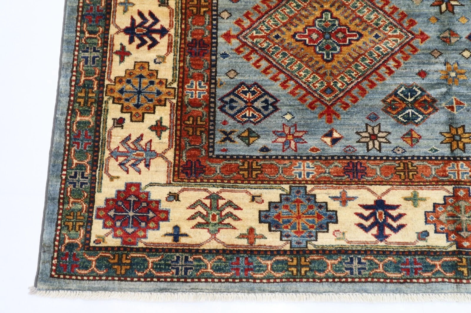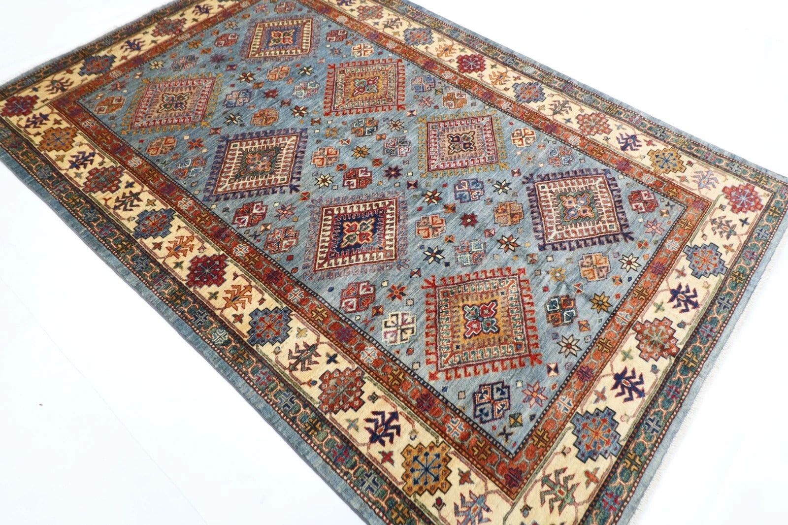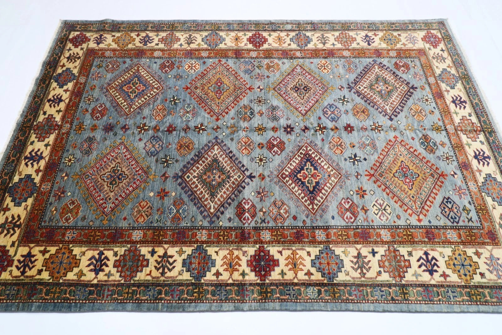 168 x 248 cm | Kazak Afghan Tribal Hand Knotted Veg Dye Wool Carpet