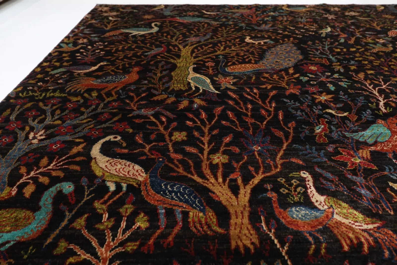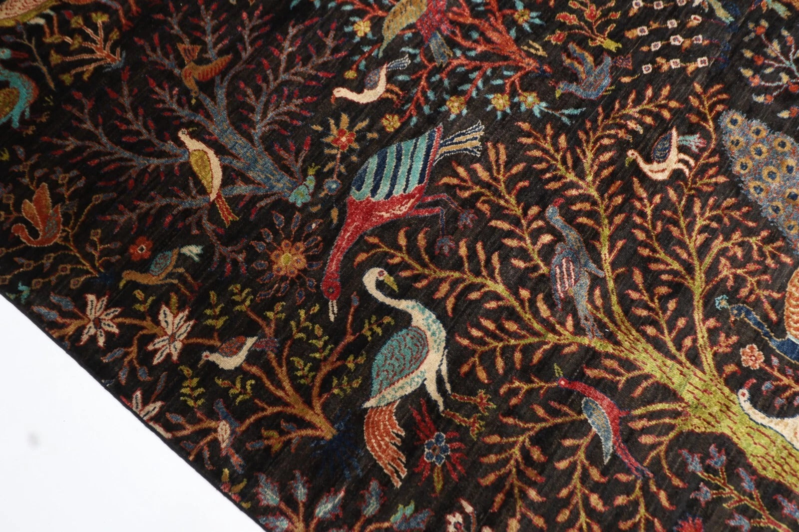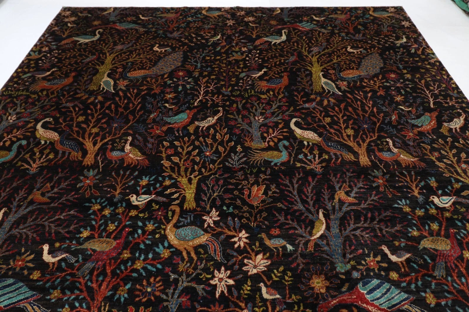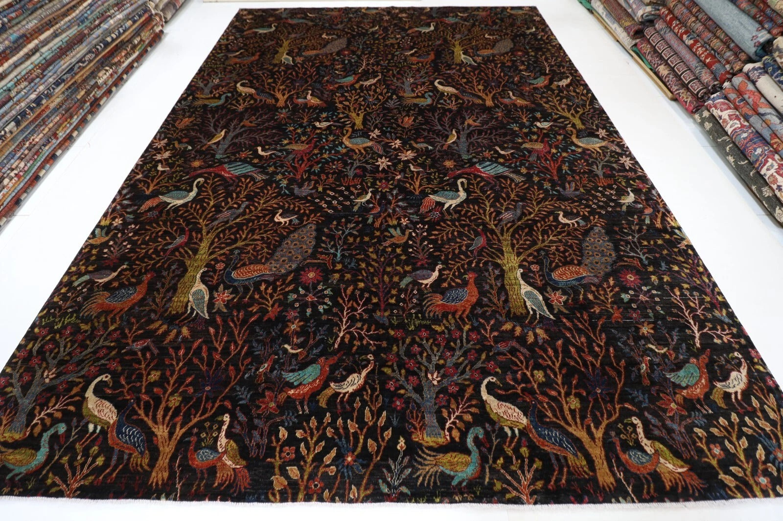 306 x 421 cm | Birds Black Afghan Hand Knotted Carpet