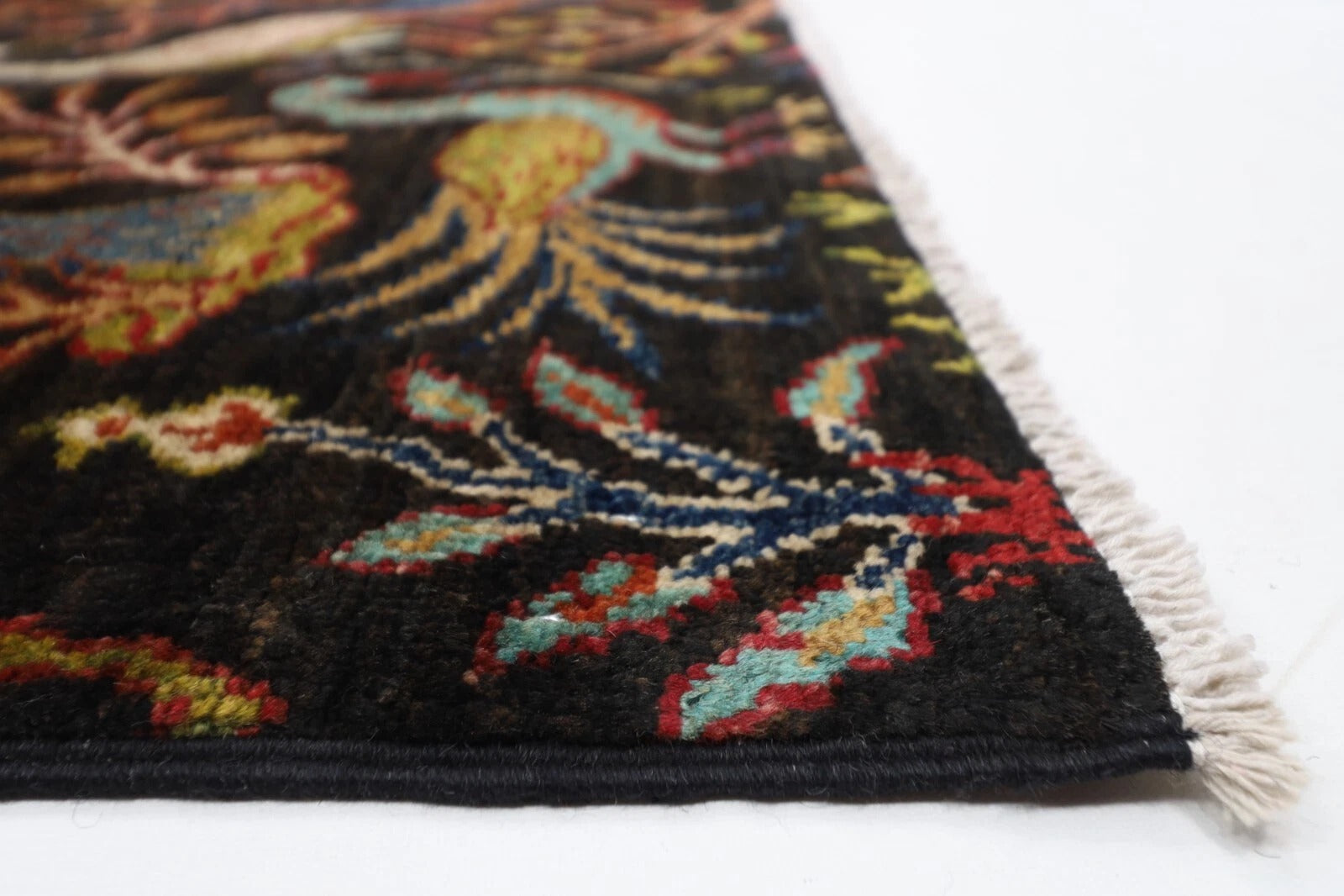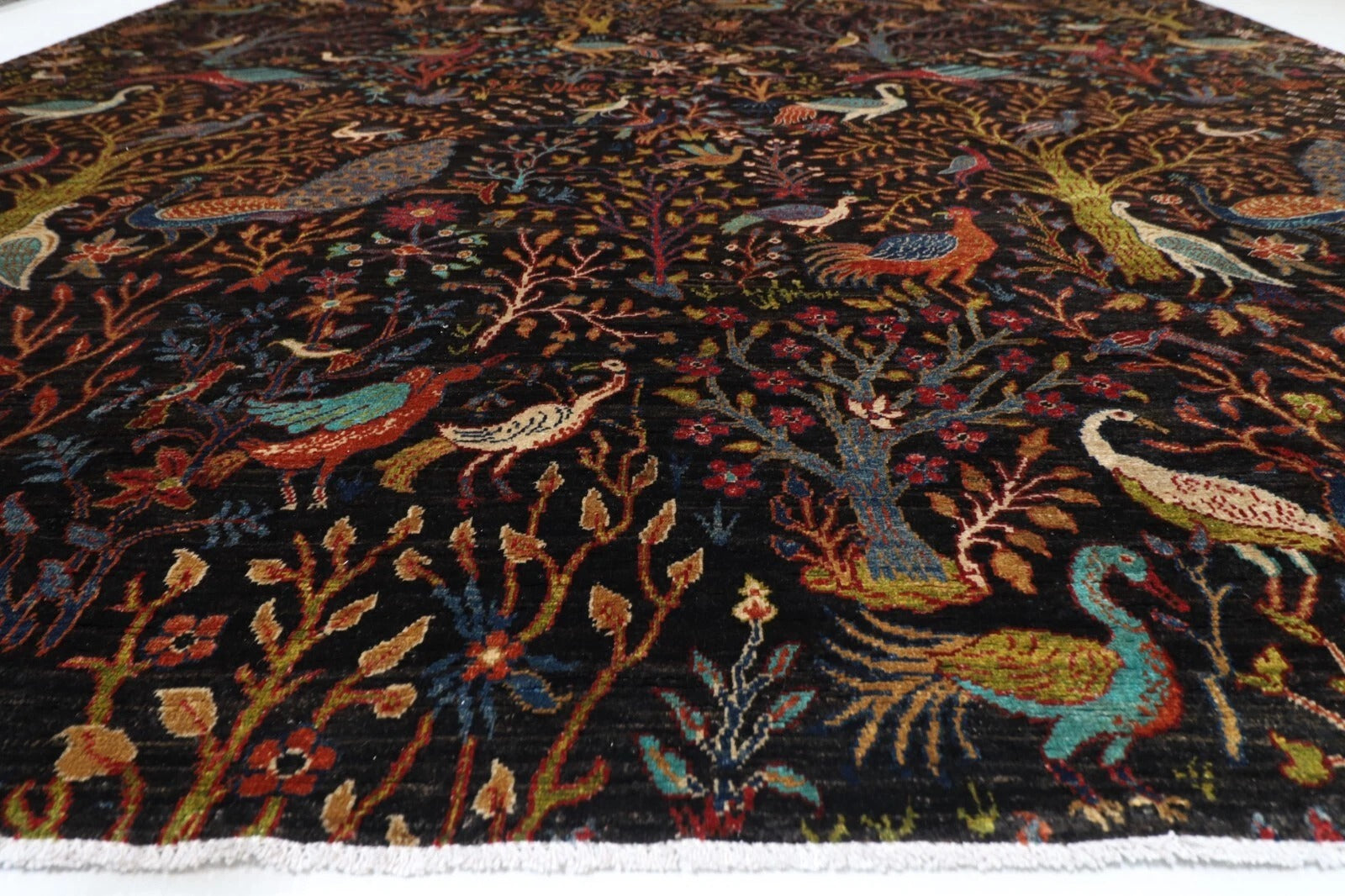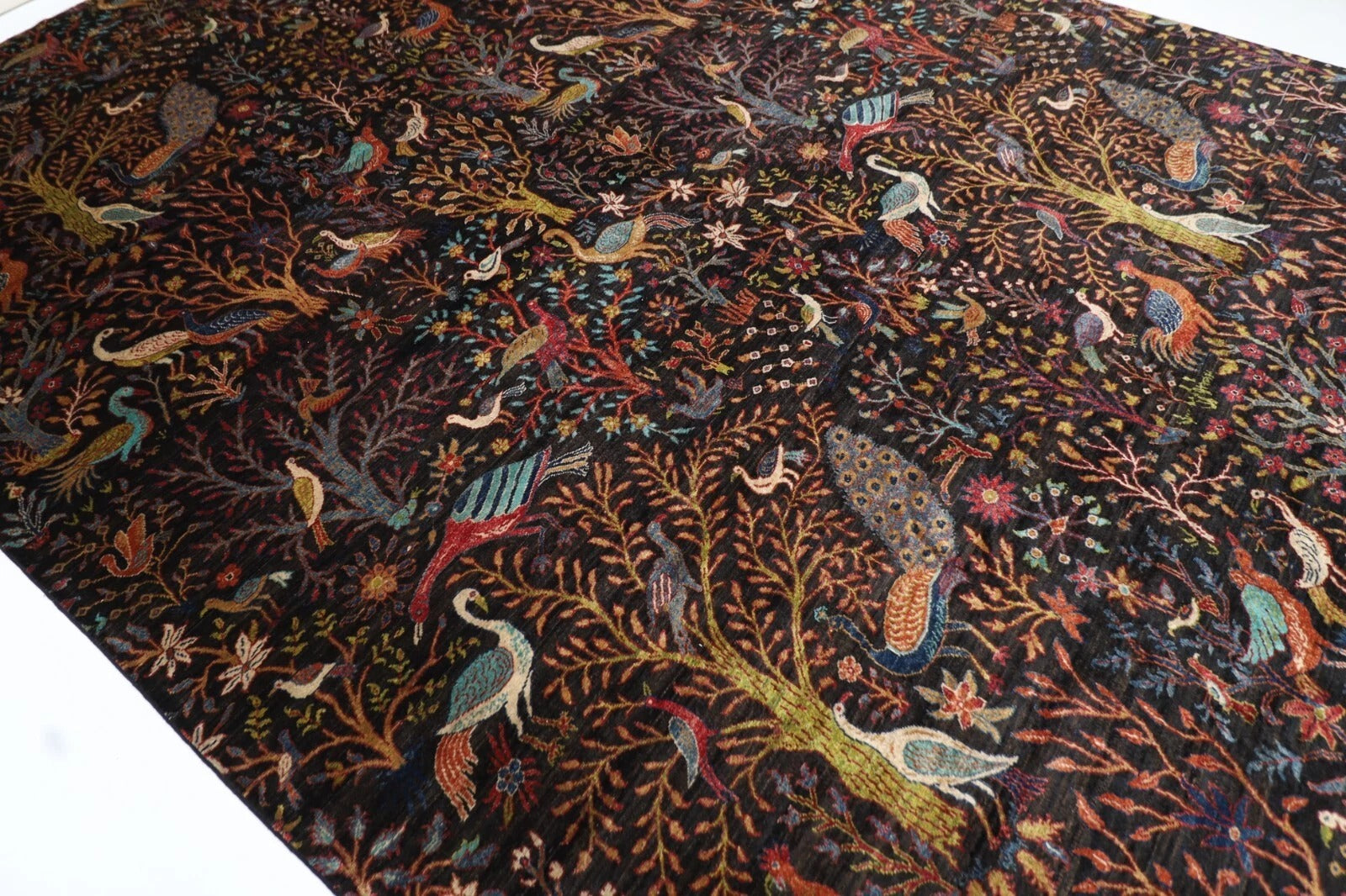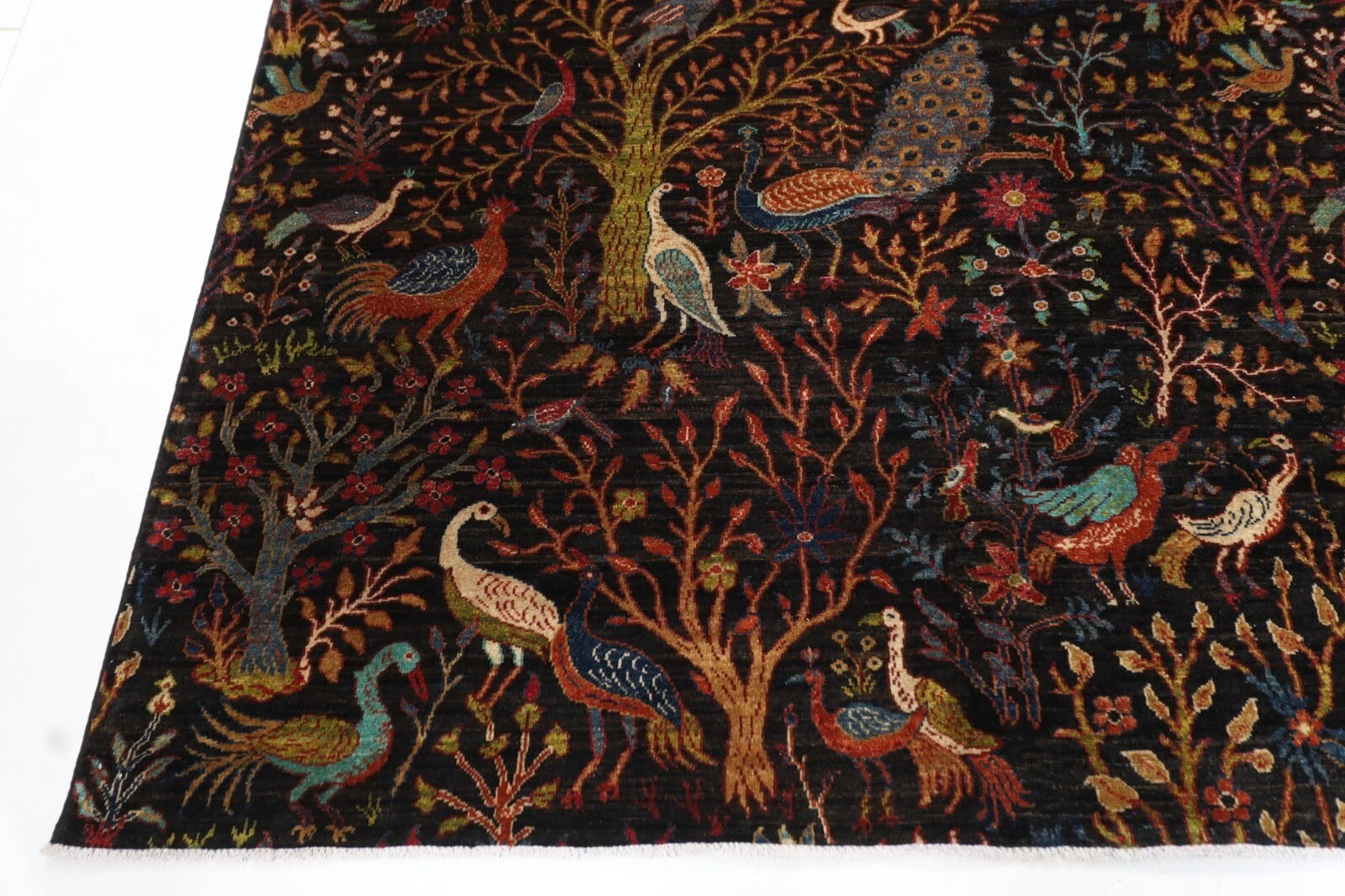 306 x 421 cm | Birds Black Afghan Hand Knotted Carpet