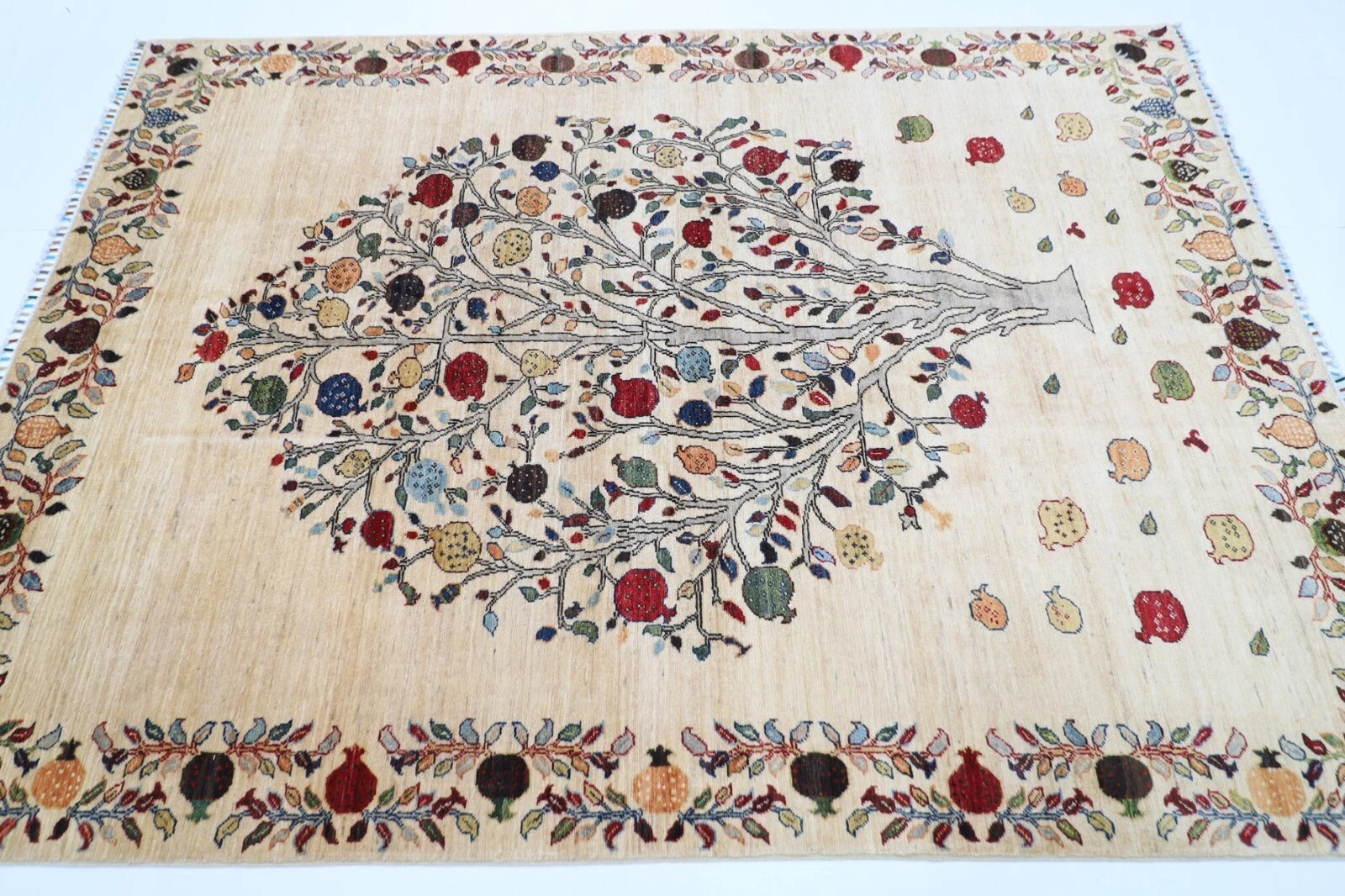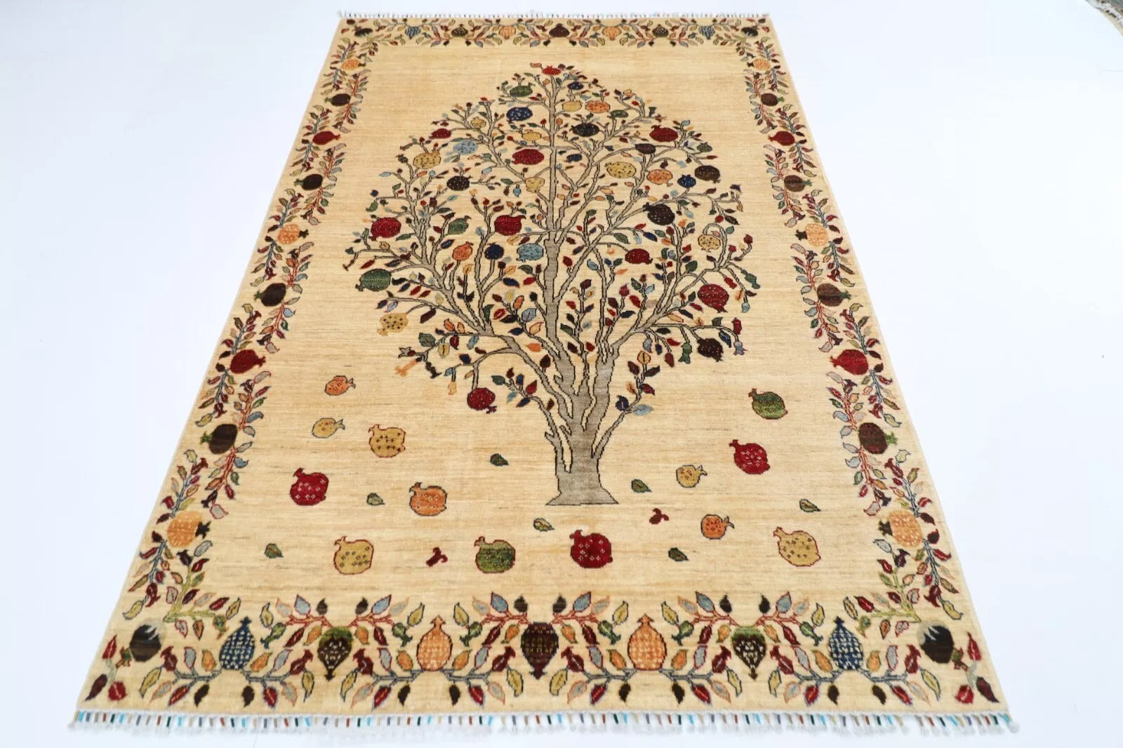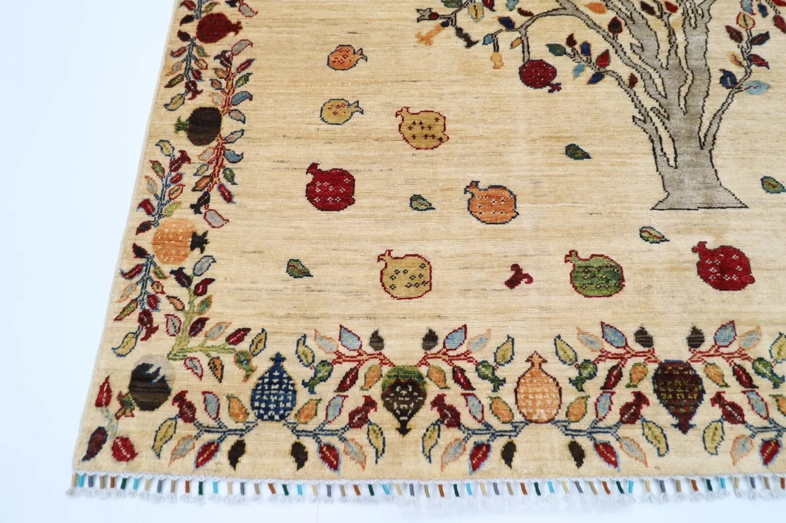 176 x 245 cm | Beige Afghan Tribal Hand Knotted Veg Dye Wool Carpet